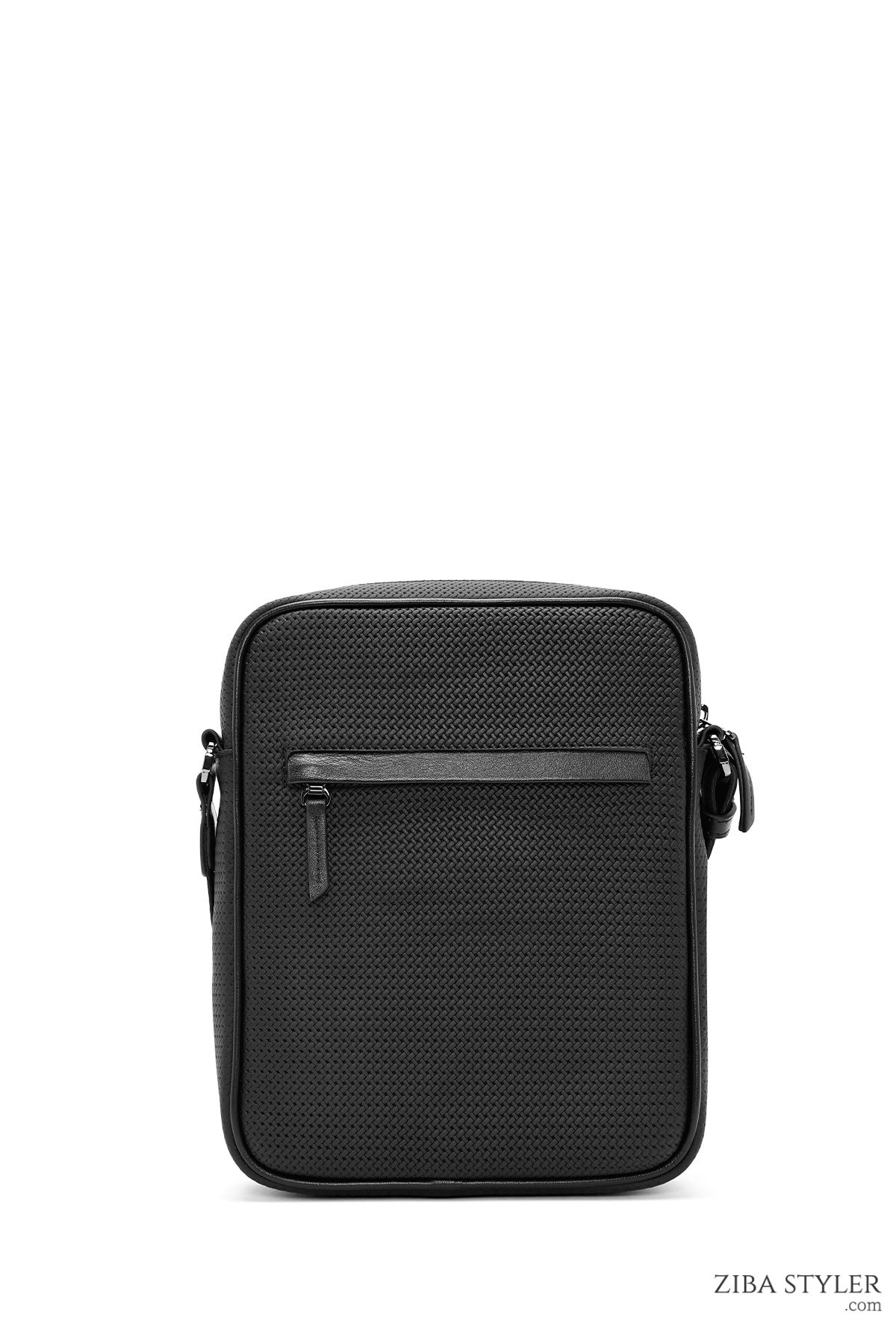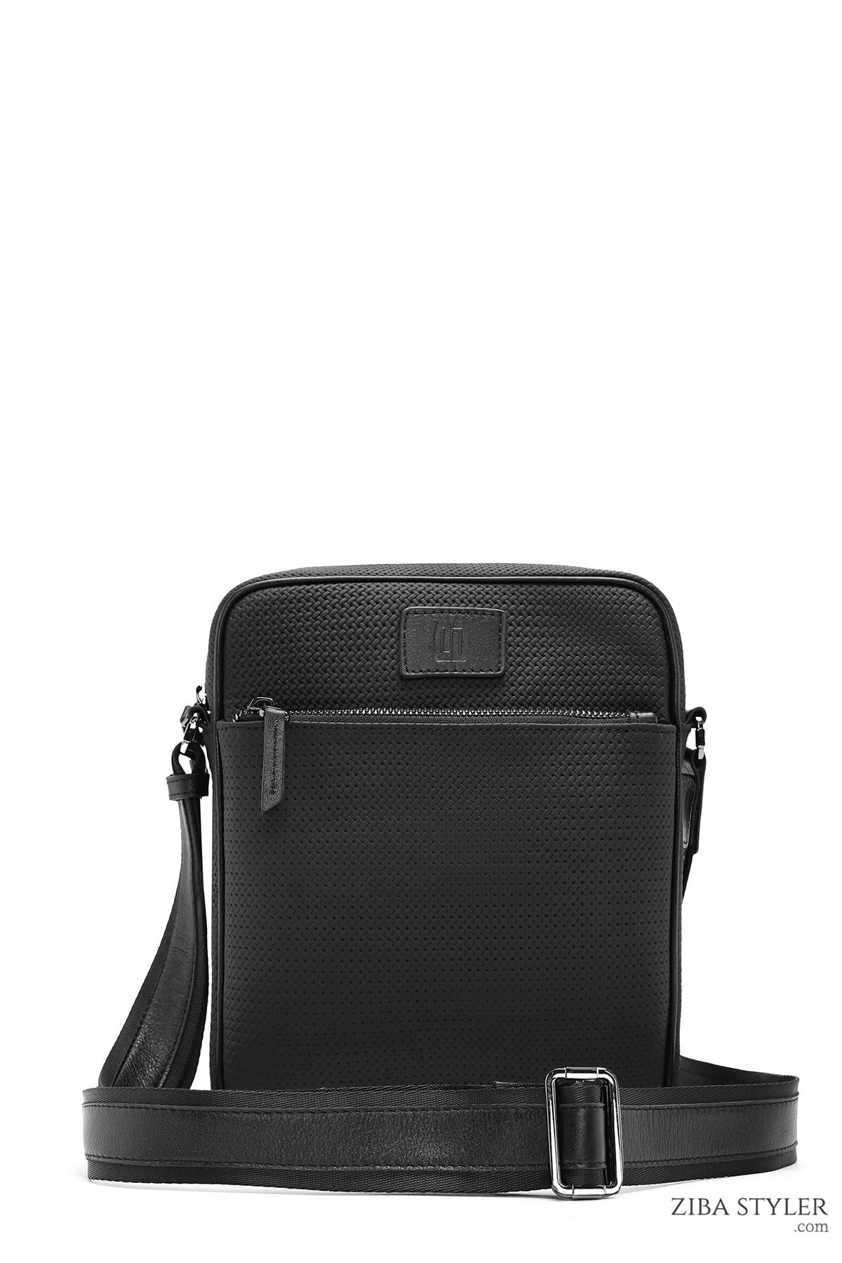 Erkek Siyah Baskılı Deri Postacı Çantası