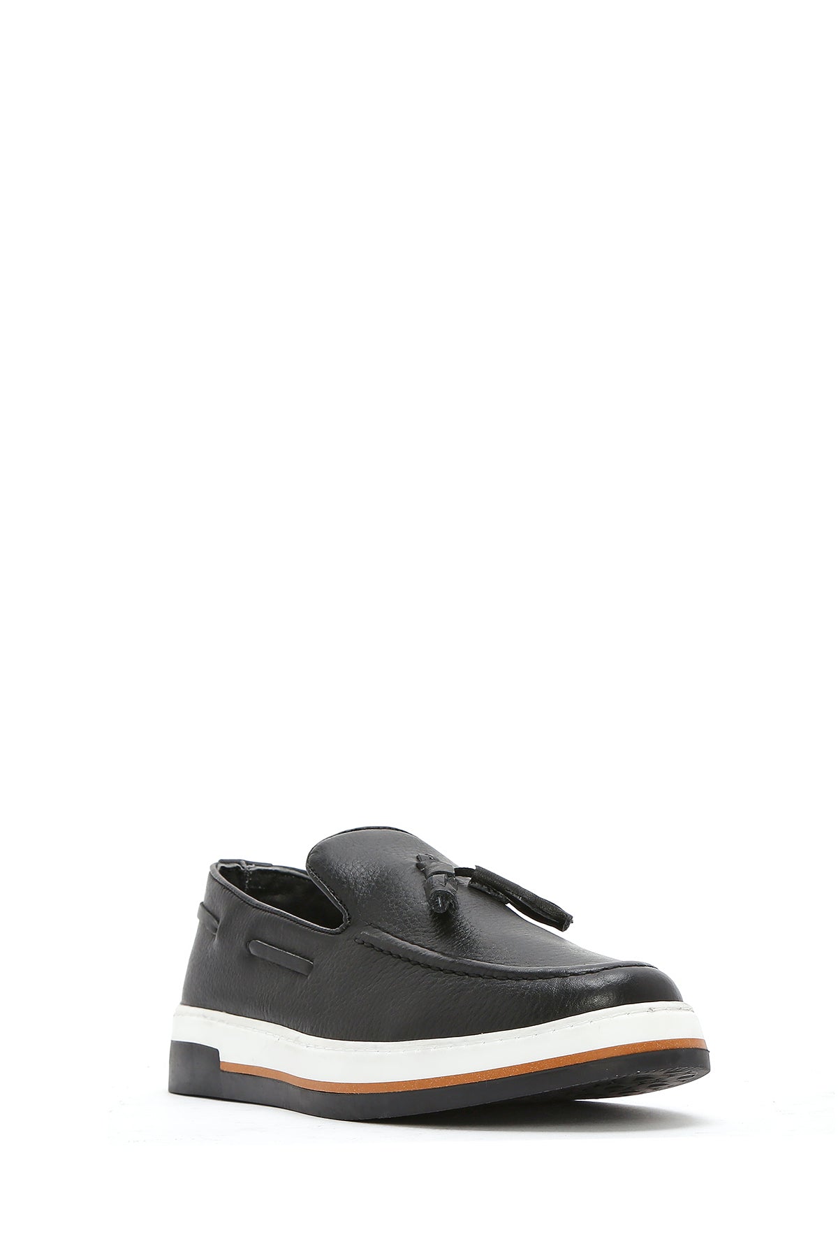 Erkek Siyah Püsküllü Deri Casual Loafer