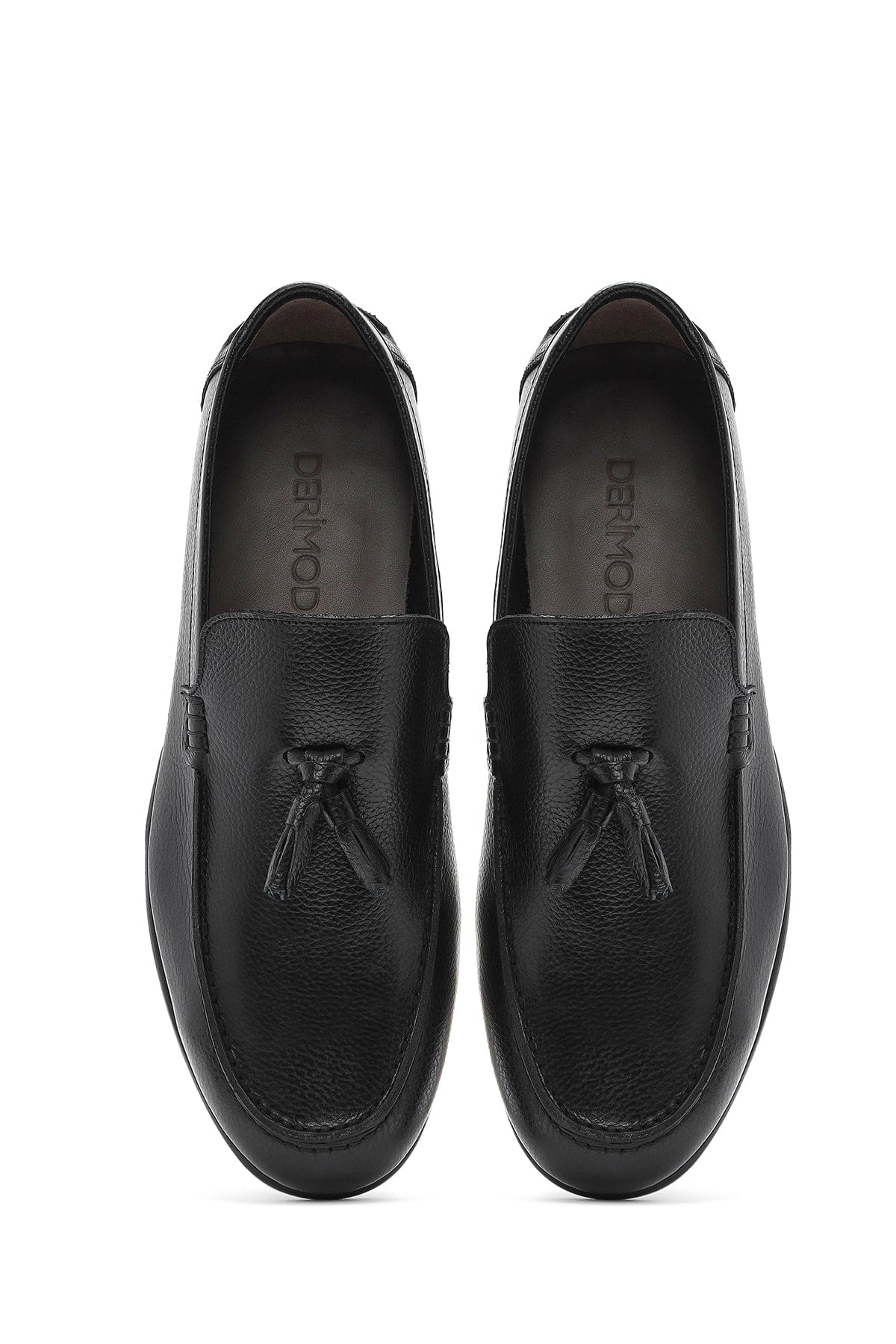 Erkek Siyah Püsküllü Deri Casual Loafer