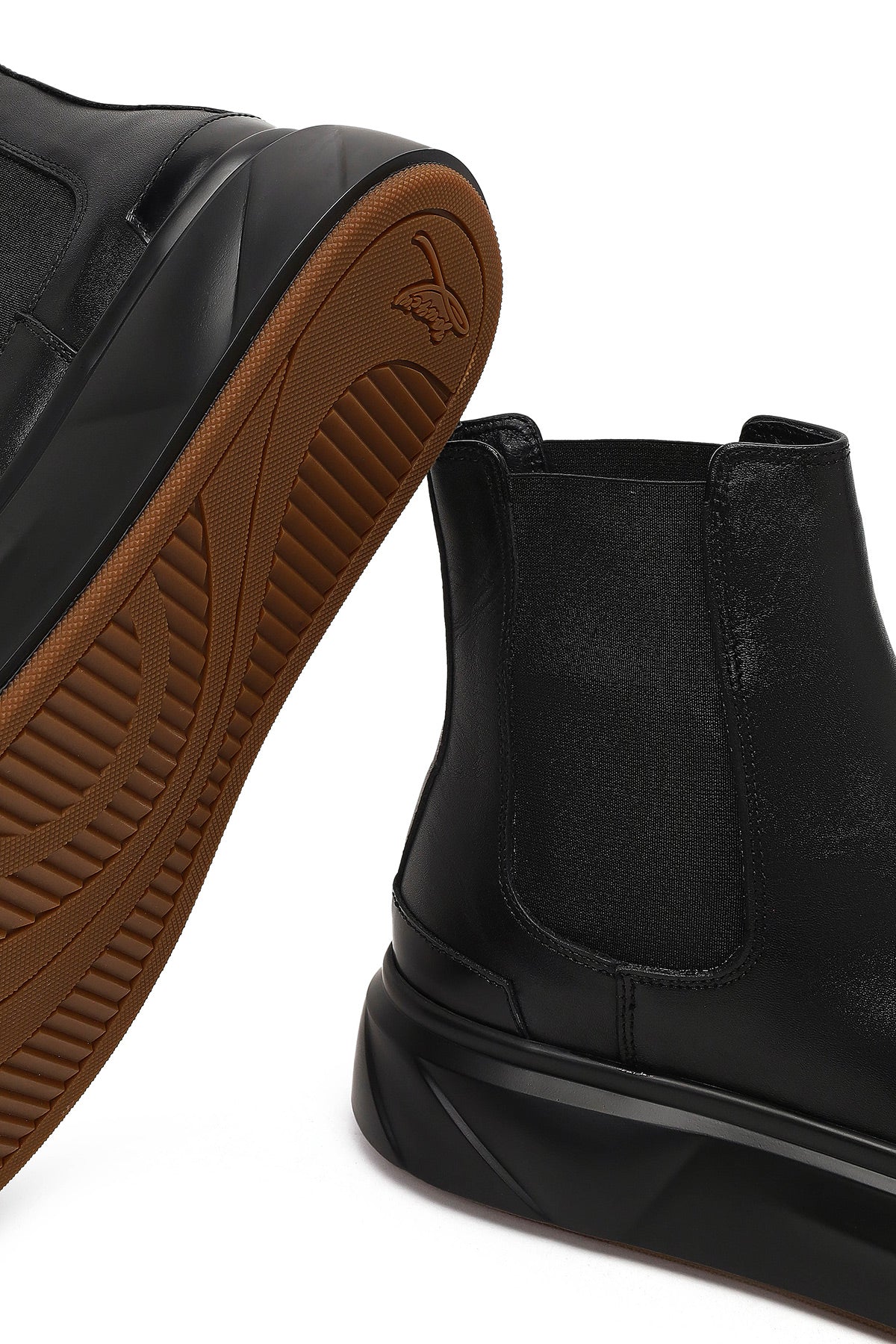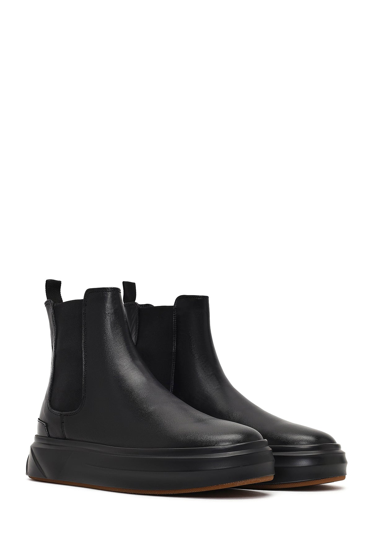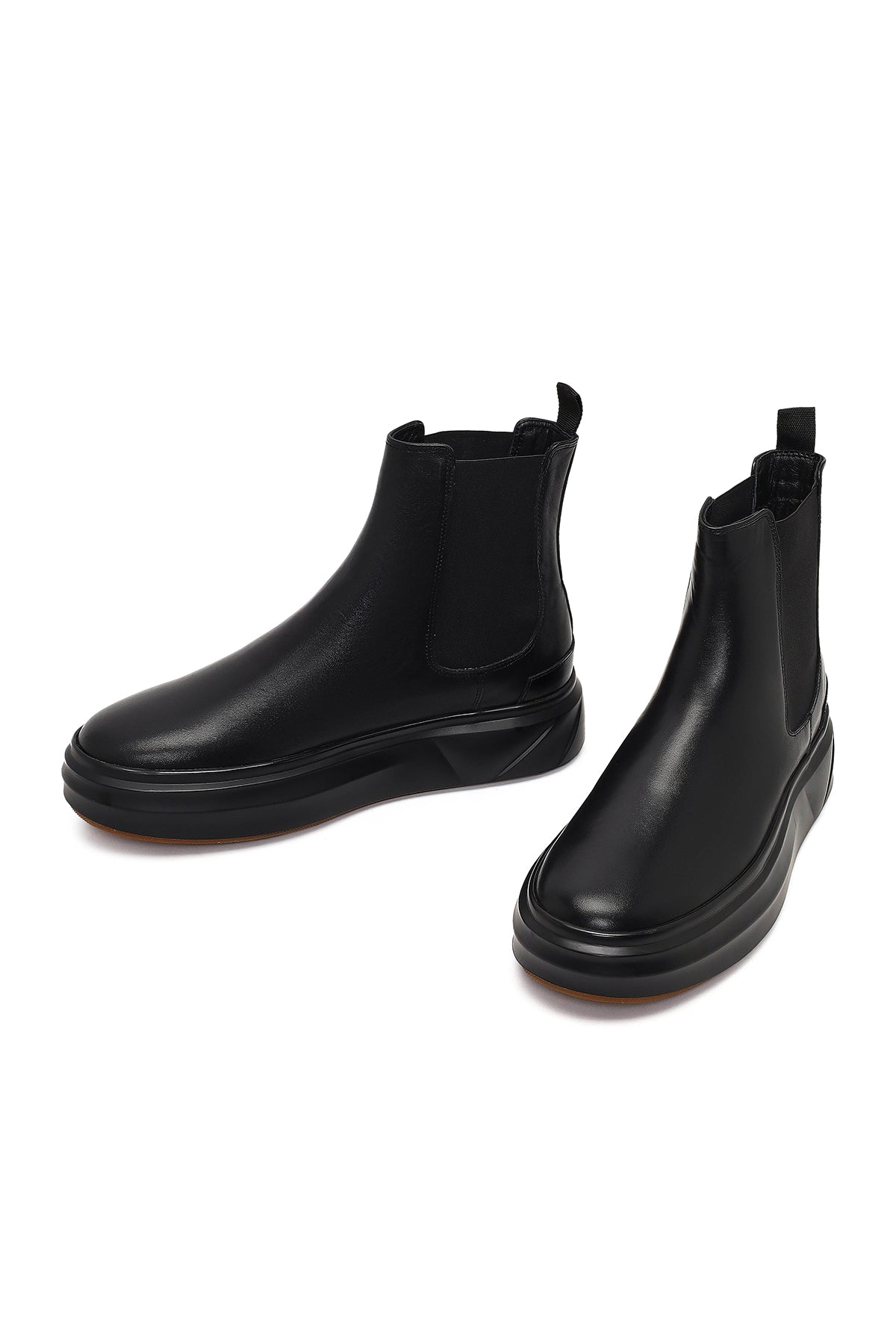 Erkek Siyah Kalın Tabanlı Deri Chelsea Bot