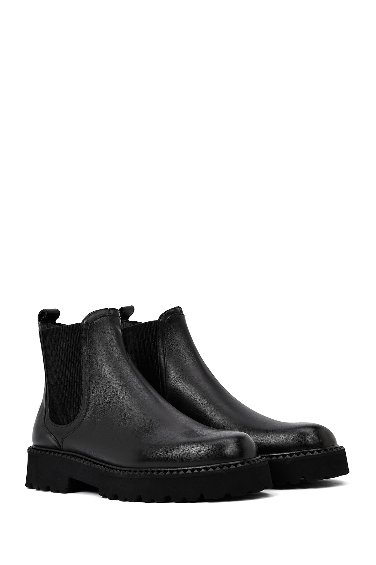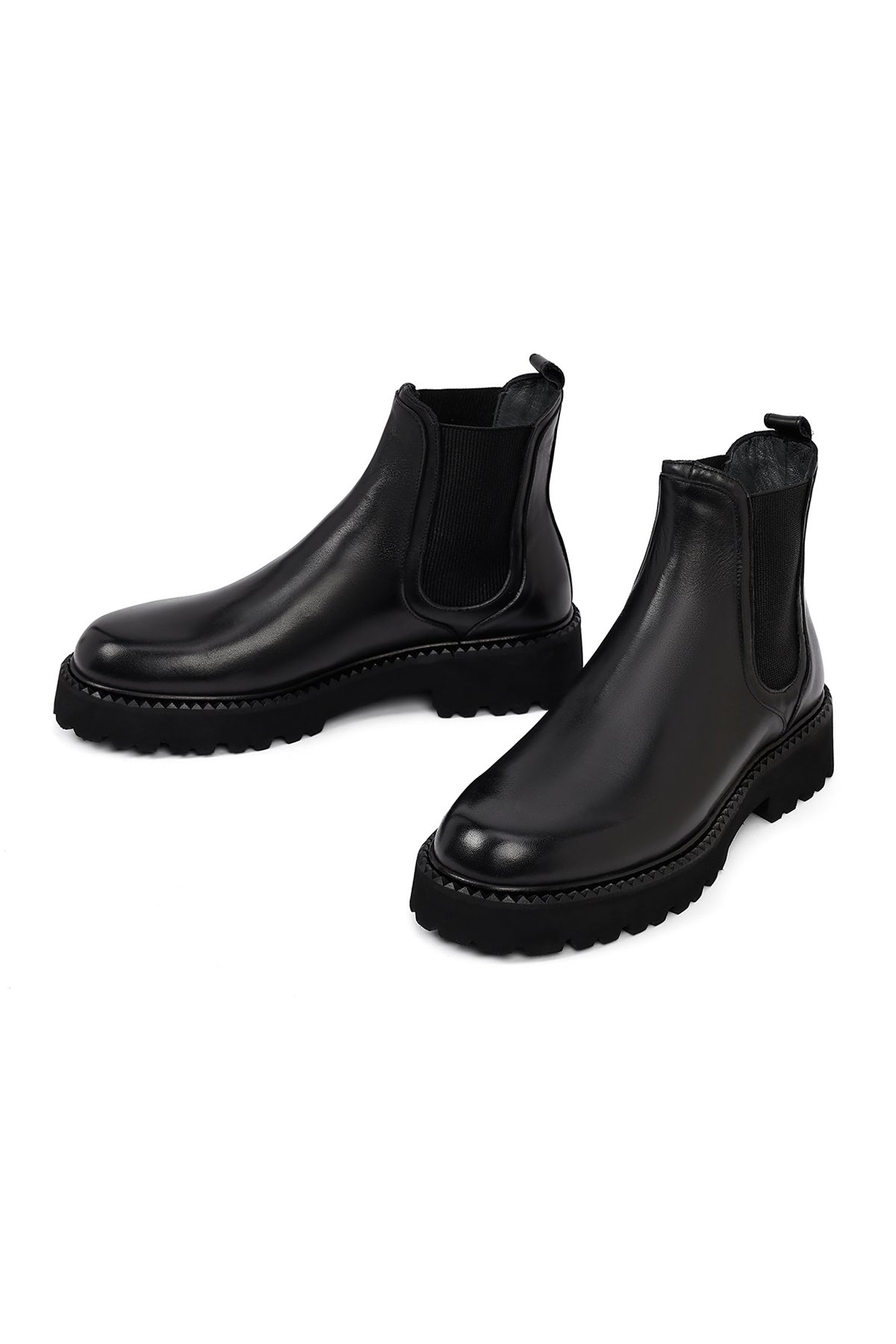 Erkek Siyah Kalın Tabanlı Deri Chelsea Bot