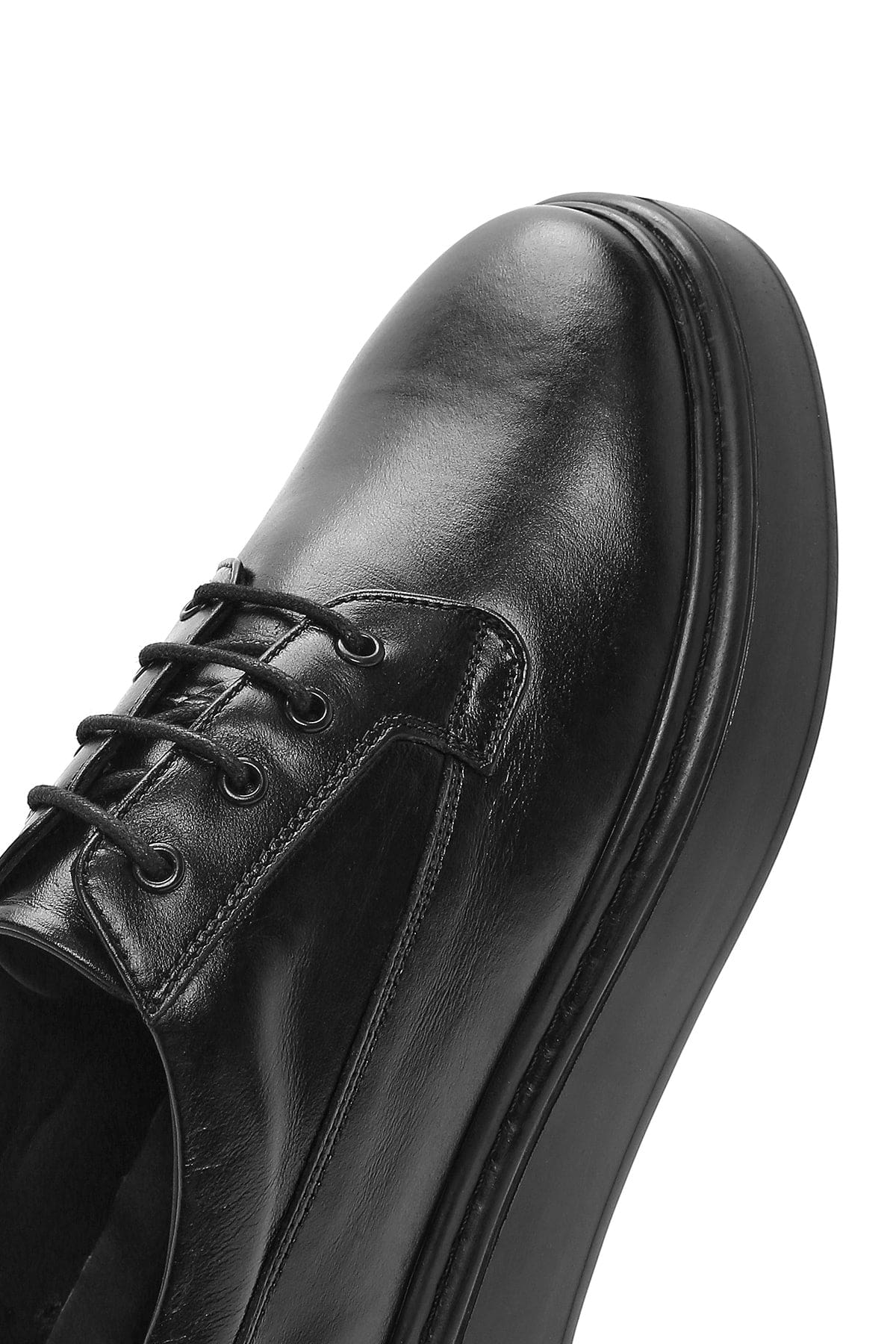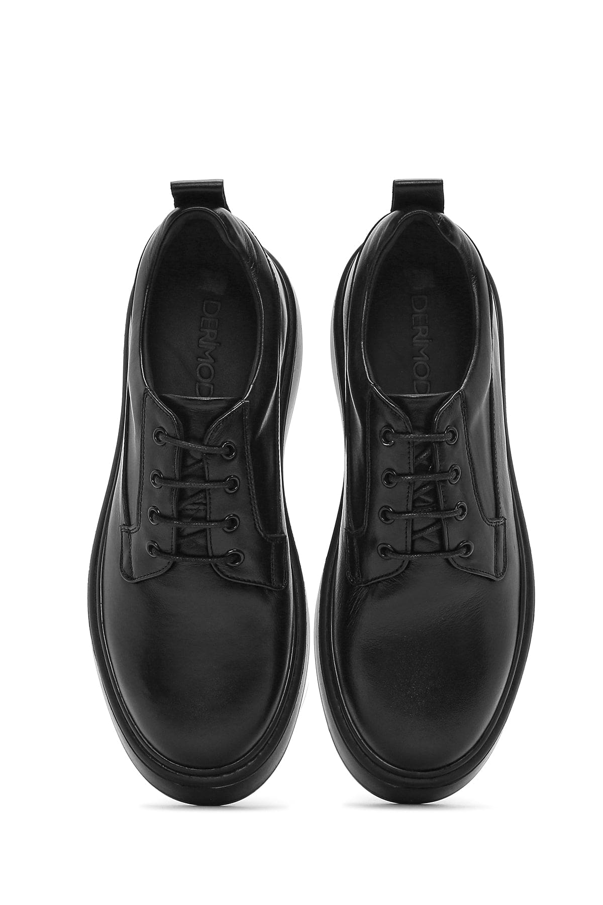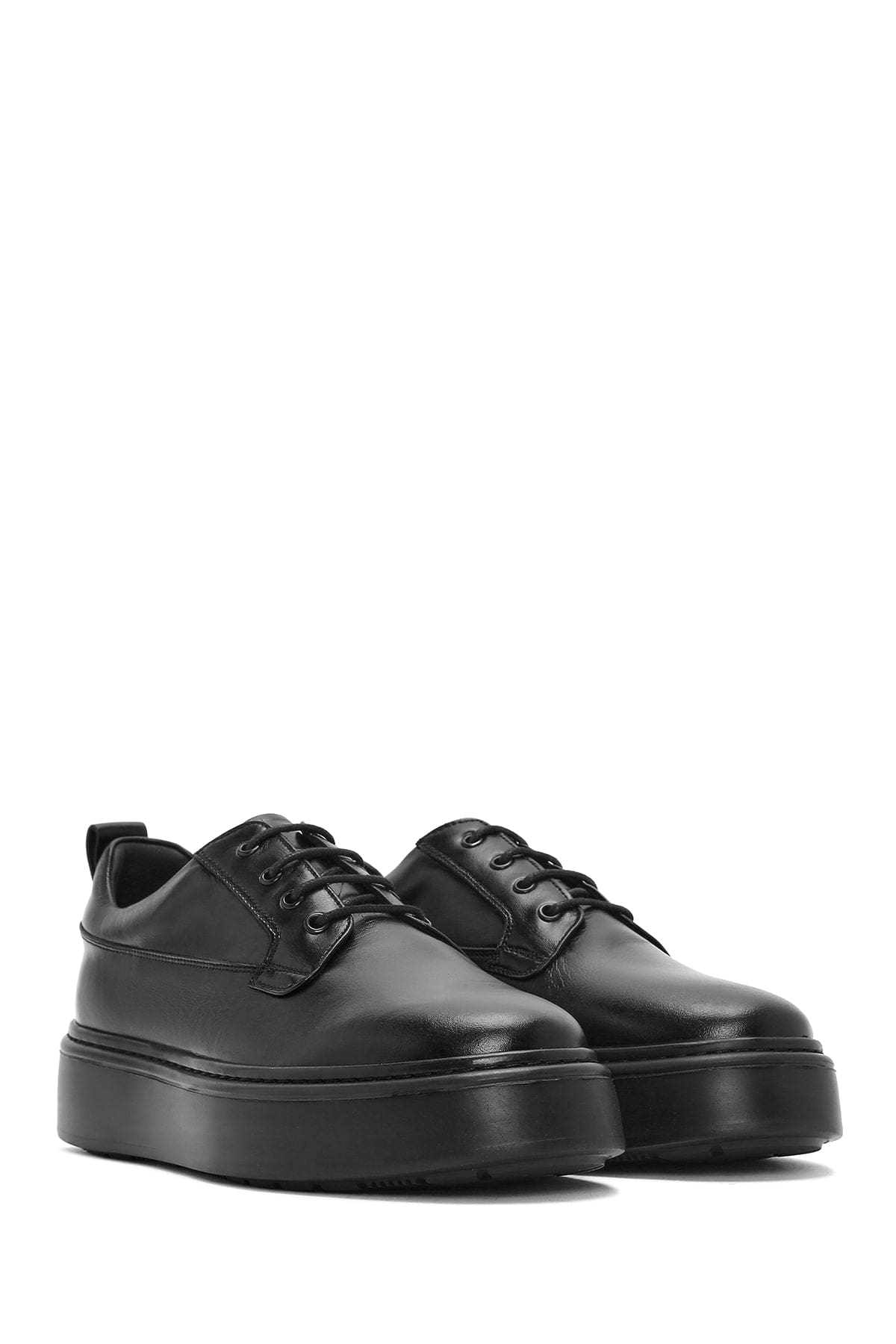 Erkek Siyah Bağcıklı Kalın Tabanlı Deri Casual Ayakkabı