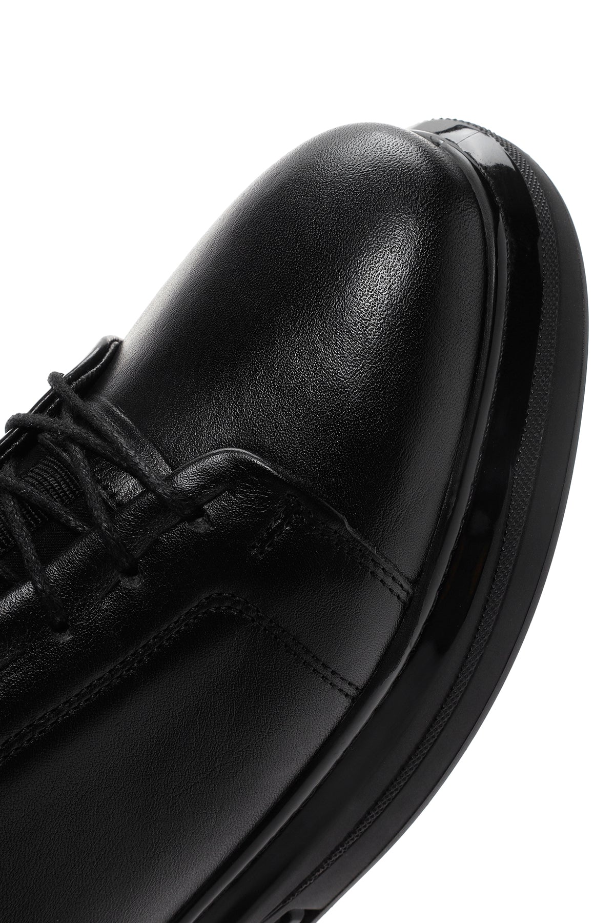 Erkek Siyah Kalın Tabanlı Bağcıklı Deri Casual Ayakkabı