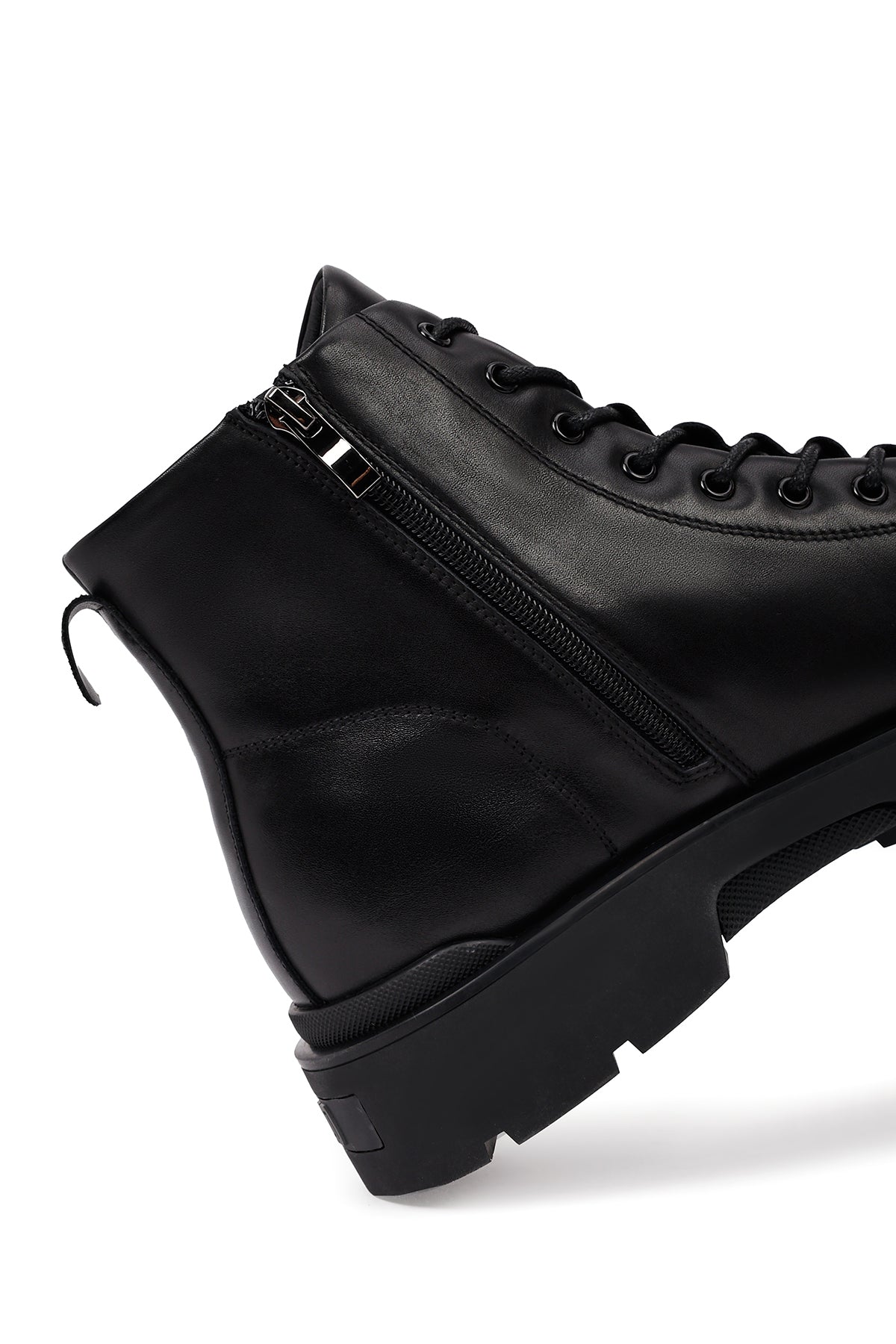 Erkek Siyah Fermuarlı Deri Casual Bot