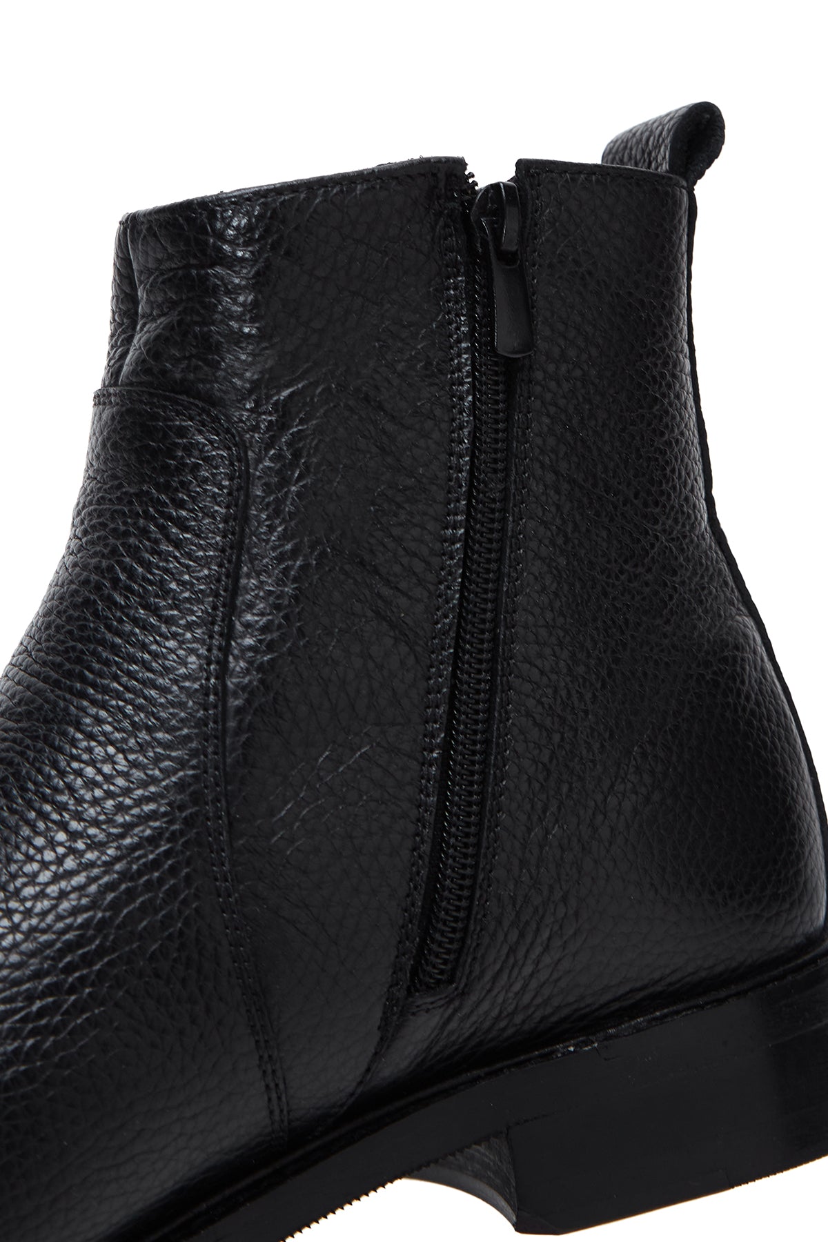 Erkek Siyah Fermuarlı Deri Casual Bot