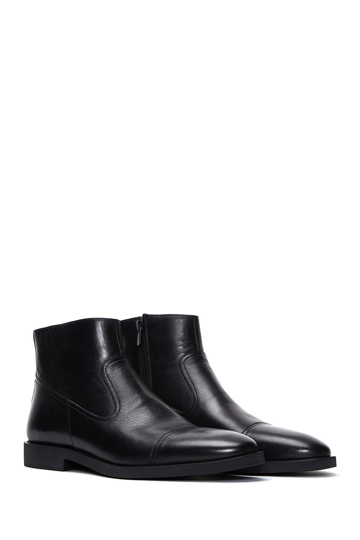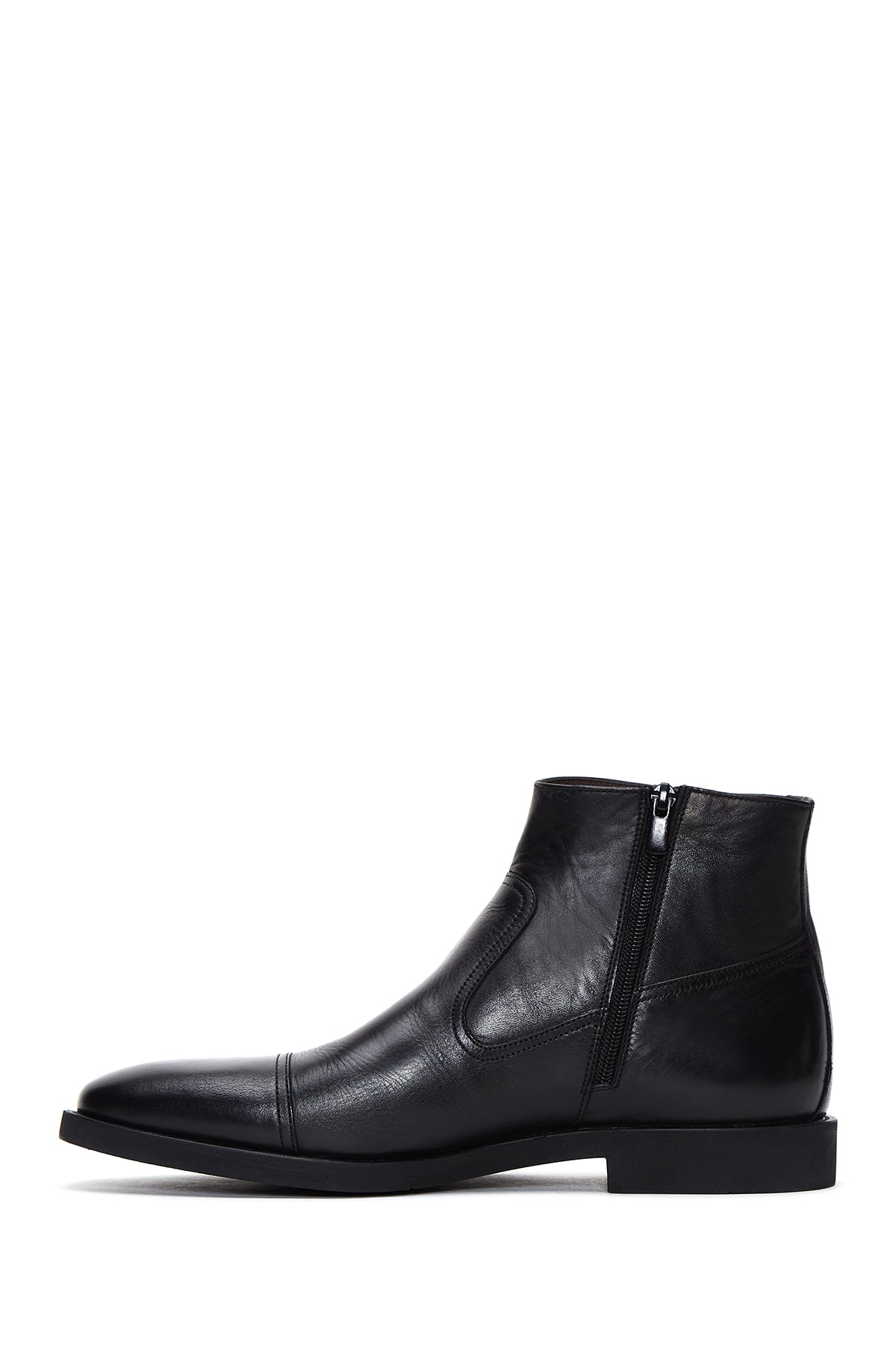 Erkek Siyah Fermuarlı Deri Klasik Bot