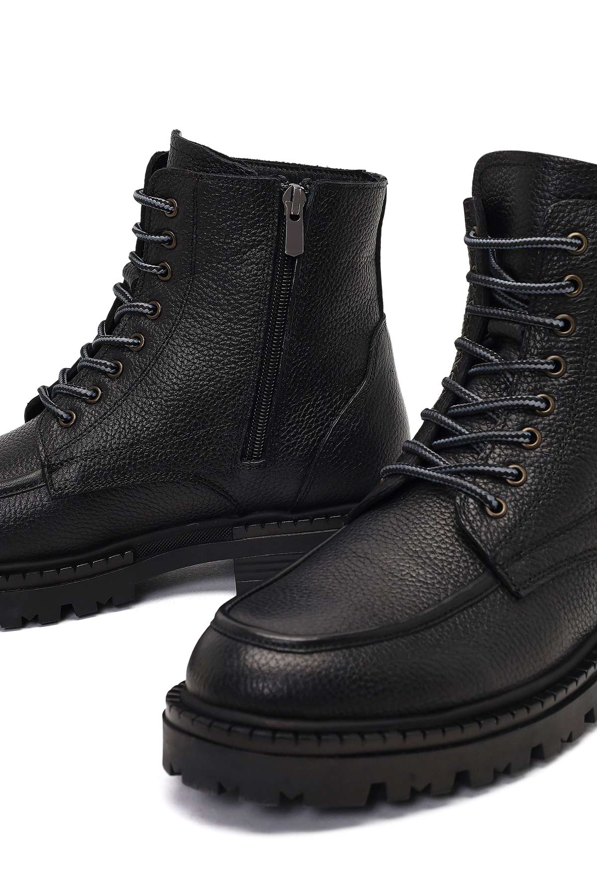 Erkek Siyah Fermuarlı Deri Postal Bot