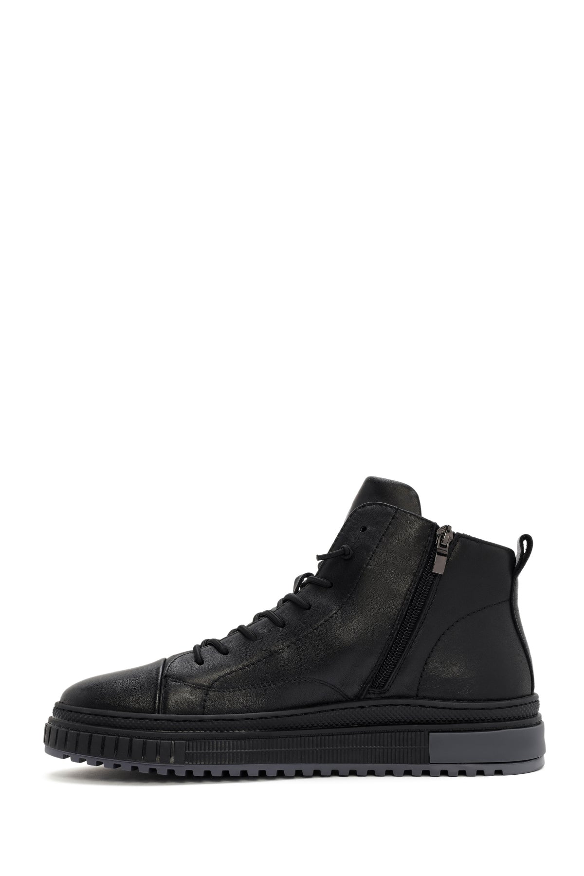 Erkek Siyah Fermuarlı Deri Spor Bot