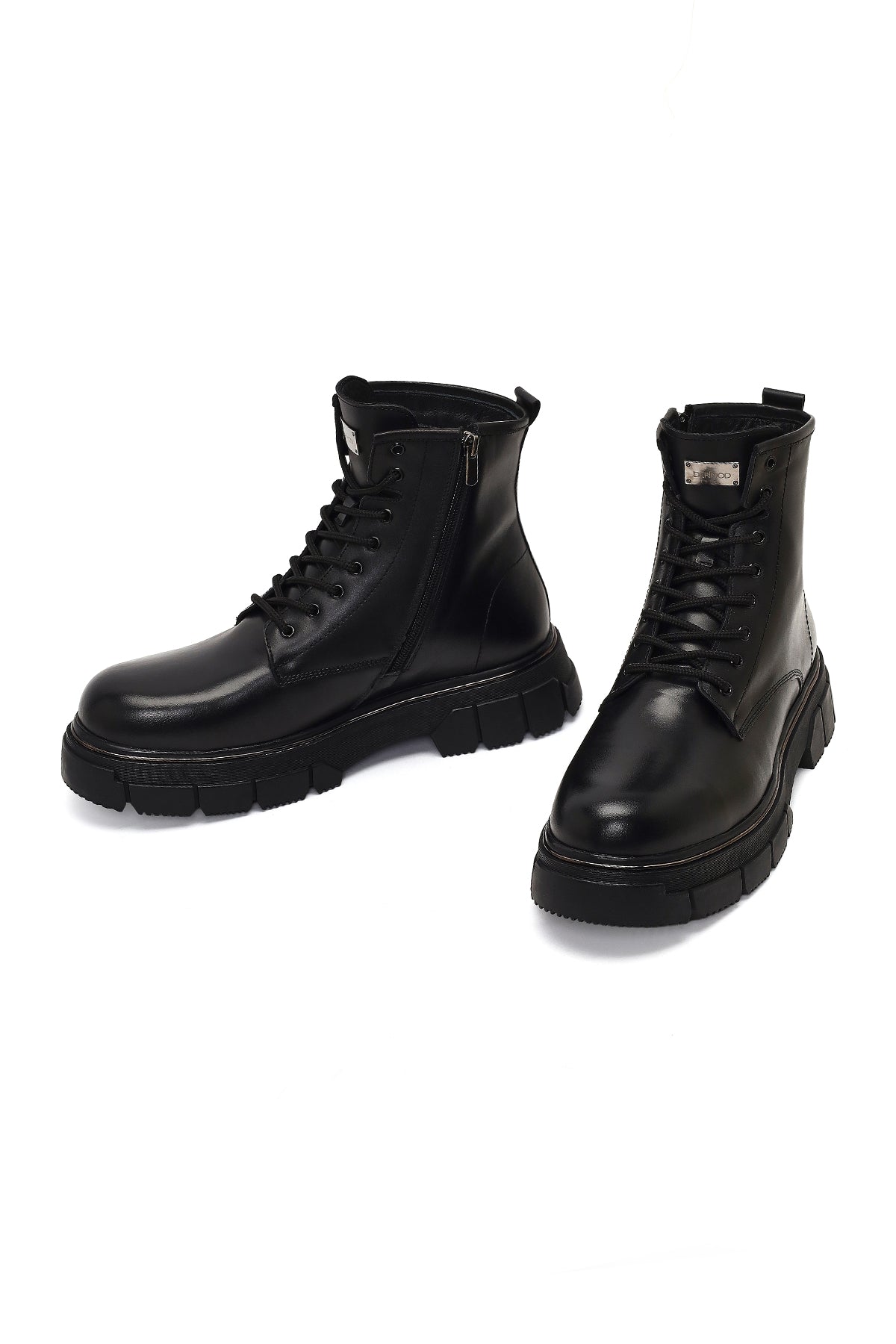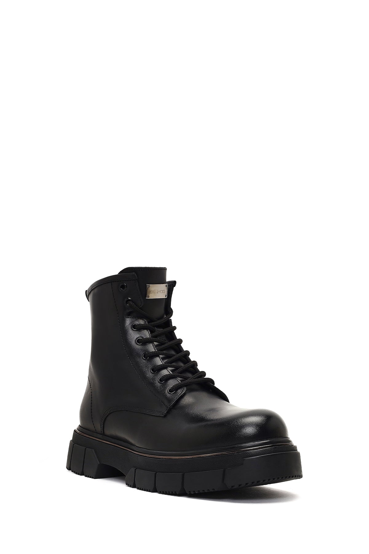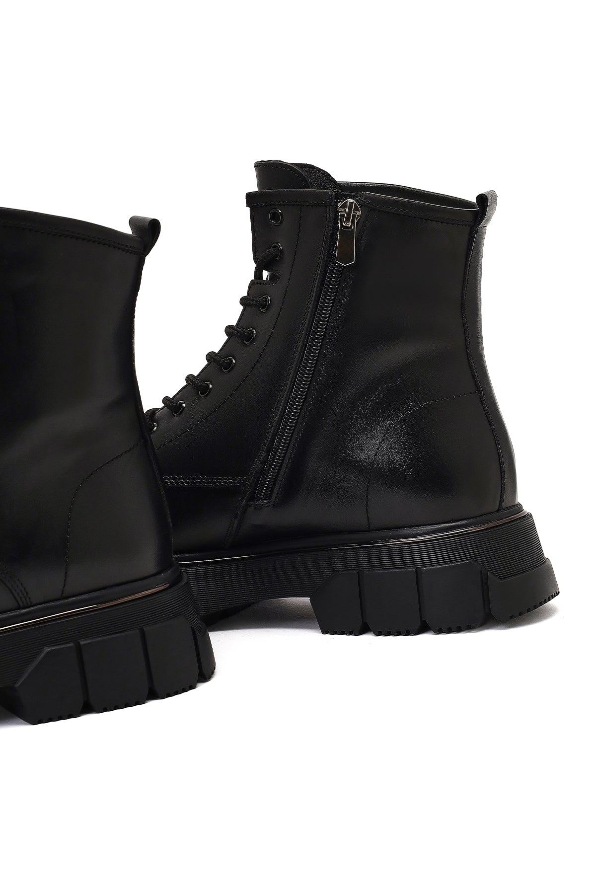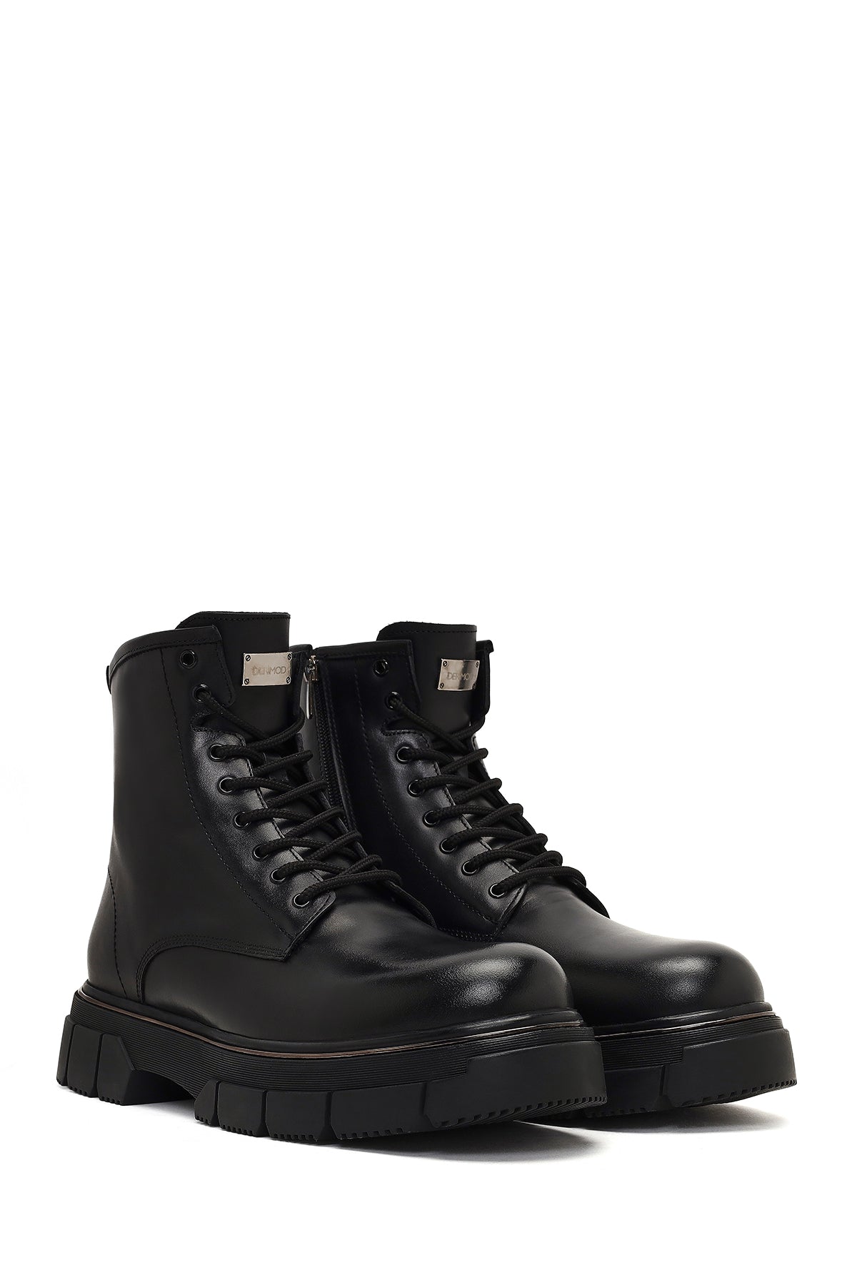 Erkek Siyah Fermuarlı Kalın Tabanlı Deri Bot