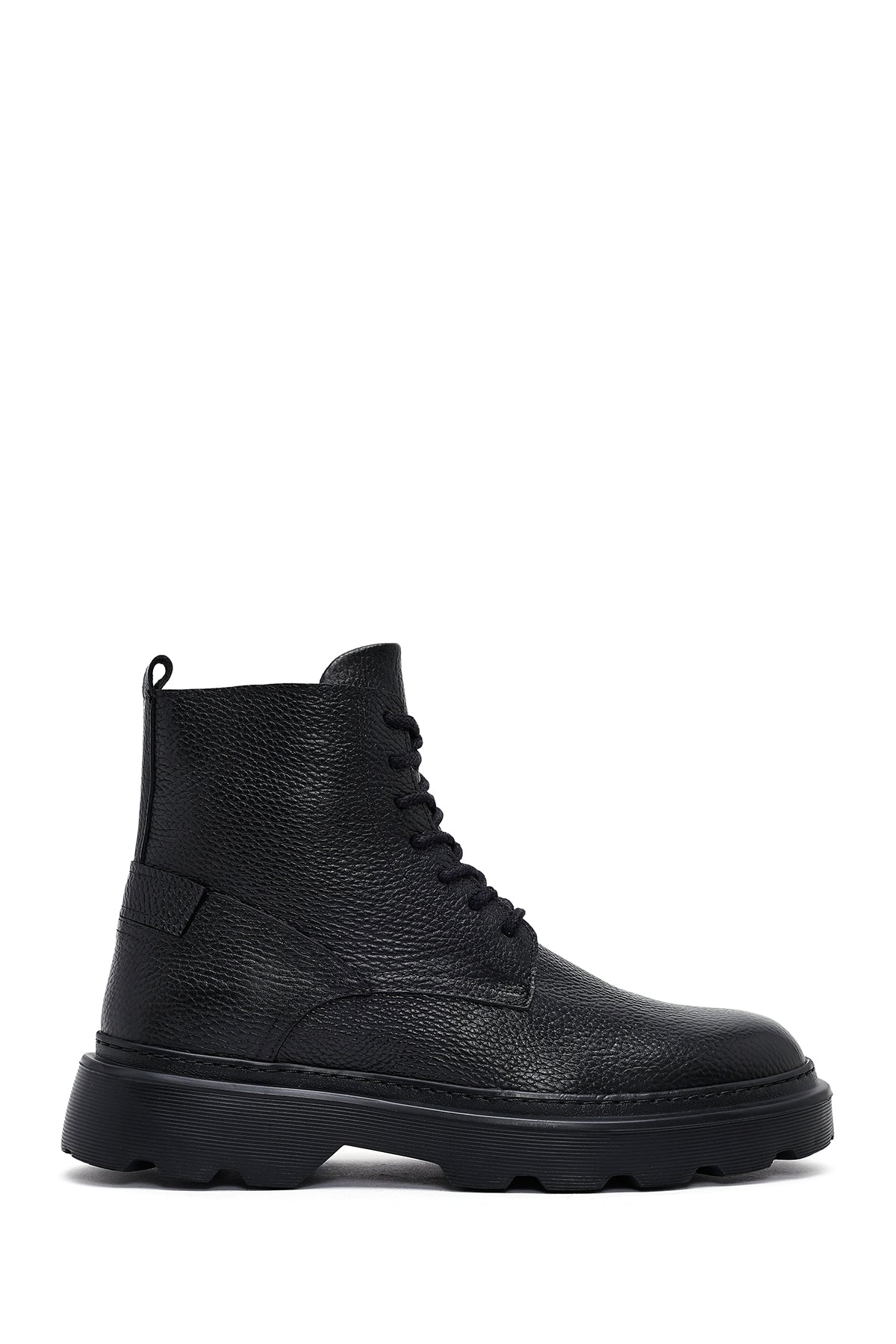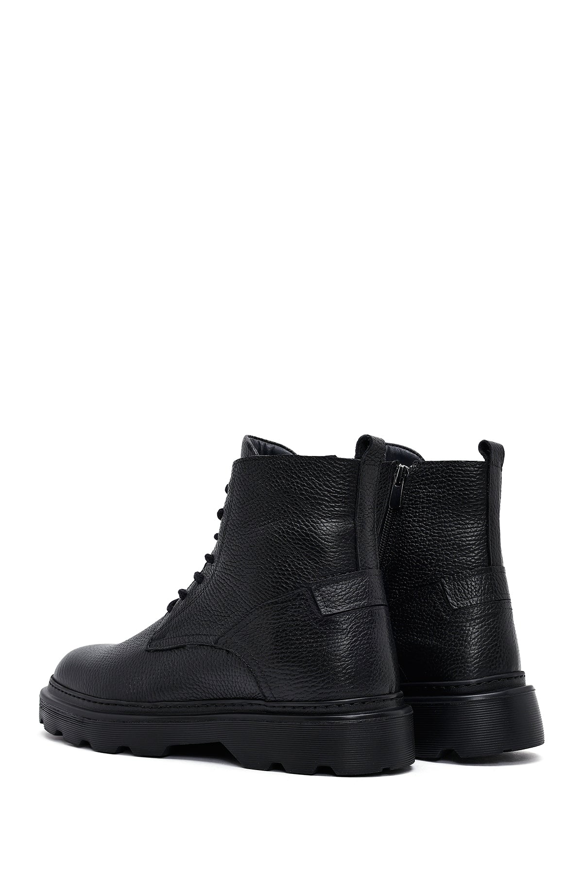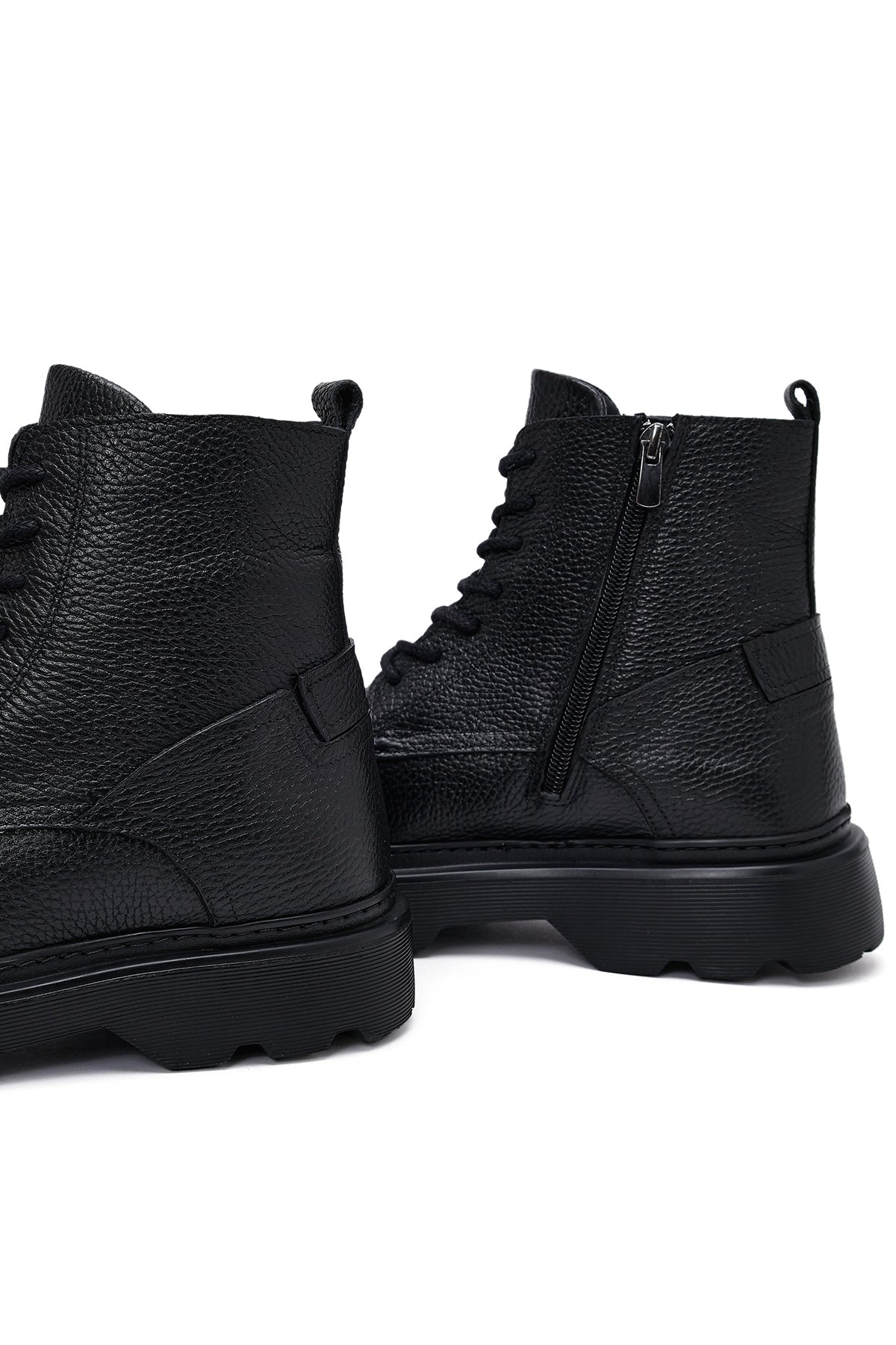Erkek Siyah Fermuarlı Kalın Tabanlı Deri Bot