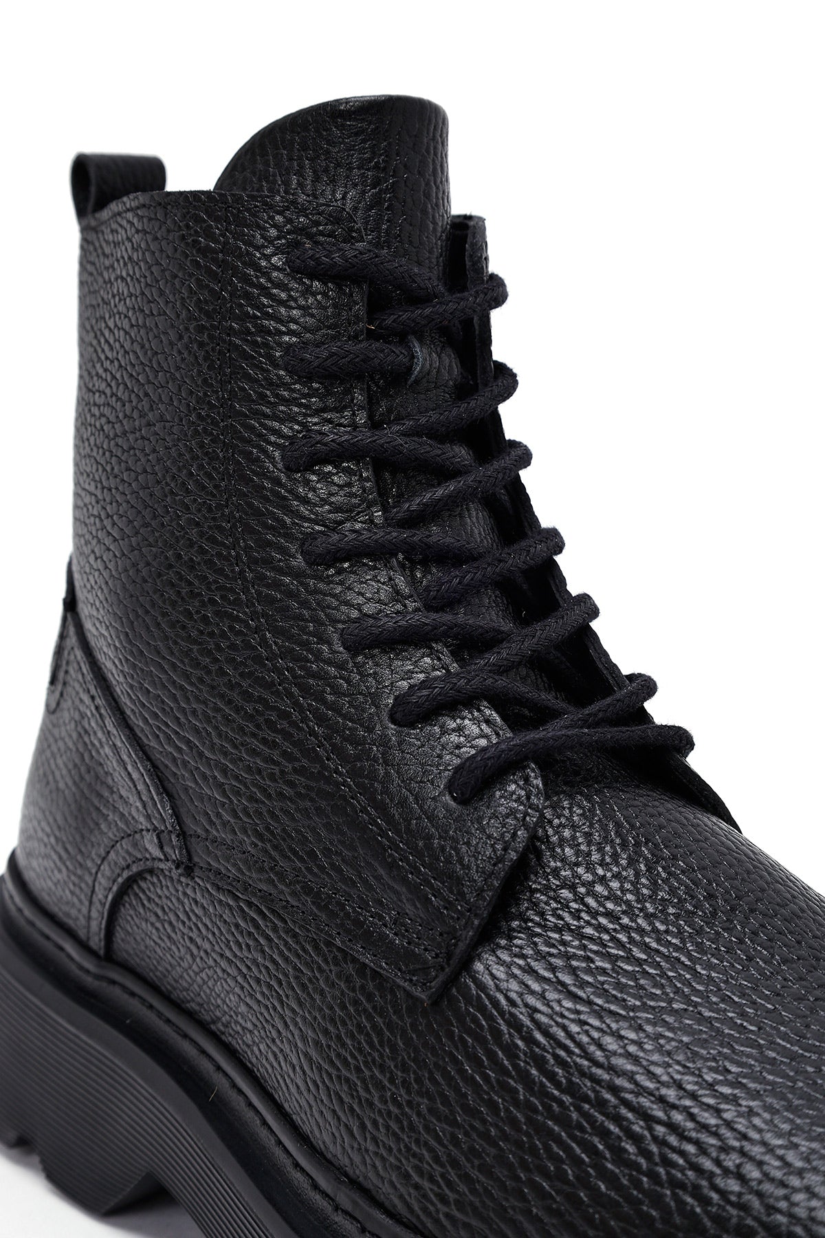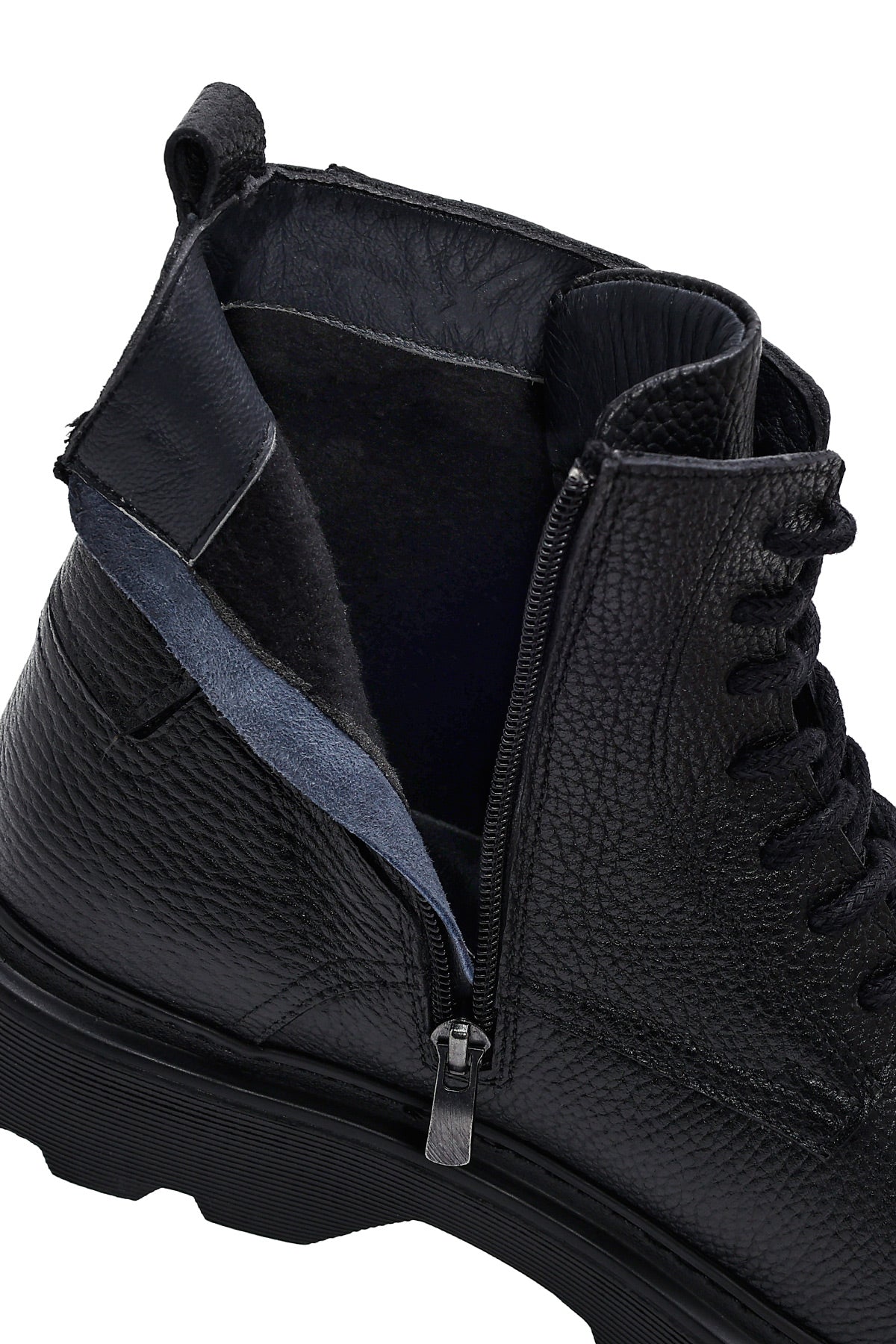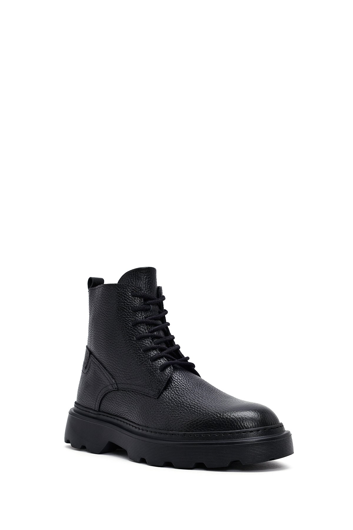 Erkek Siyah Fermuarlı Kalın Tabanlı Deri Bot