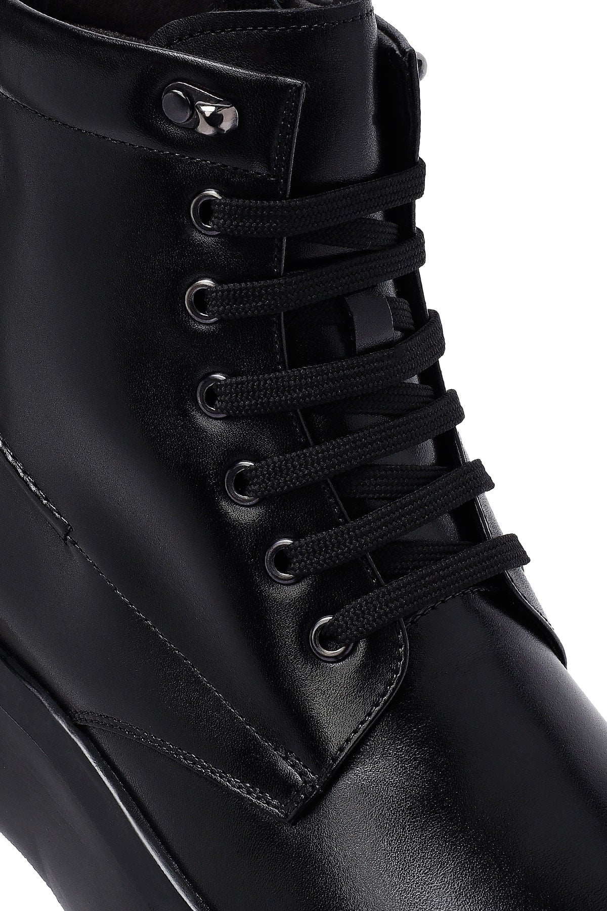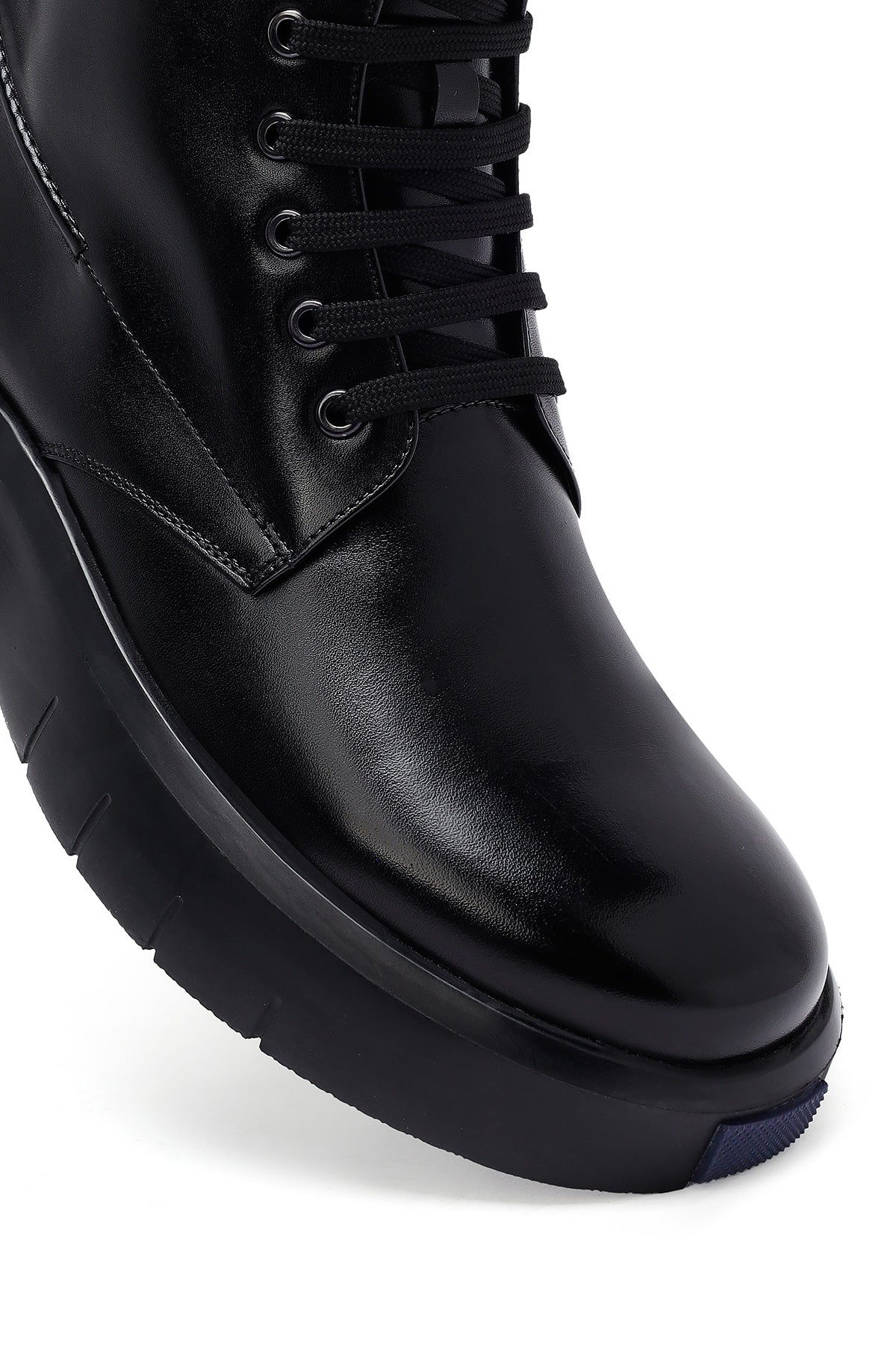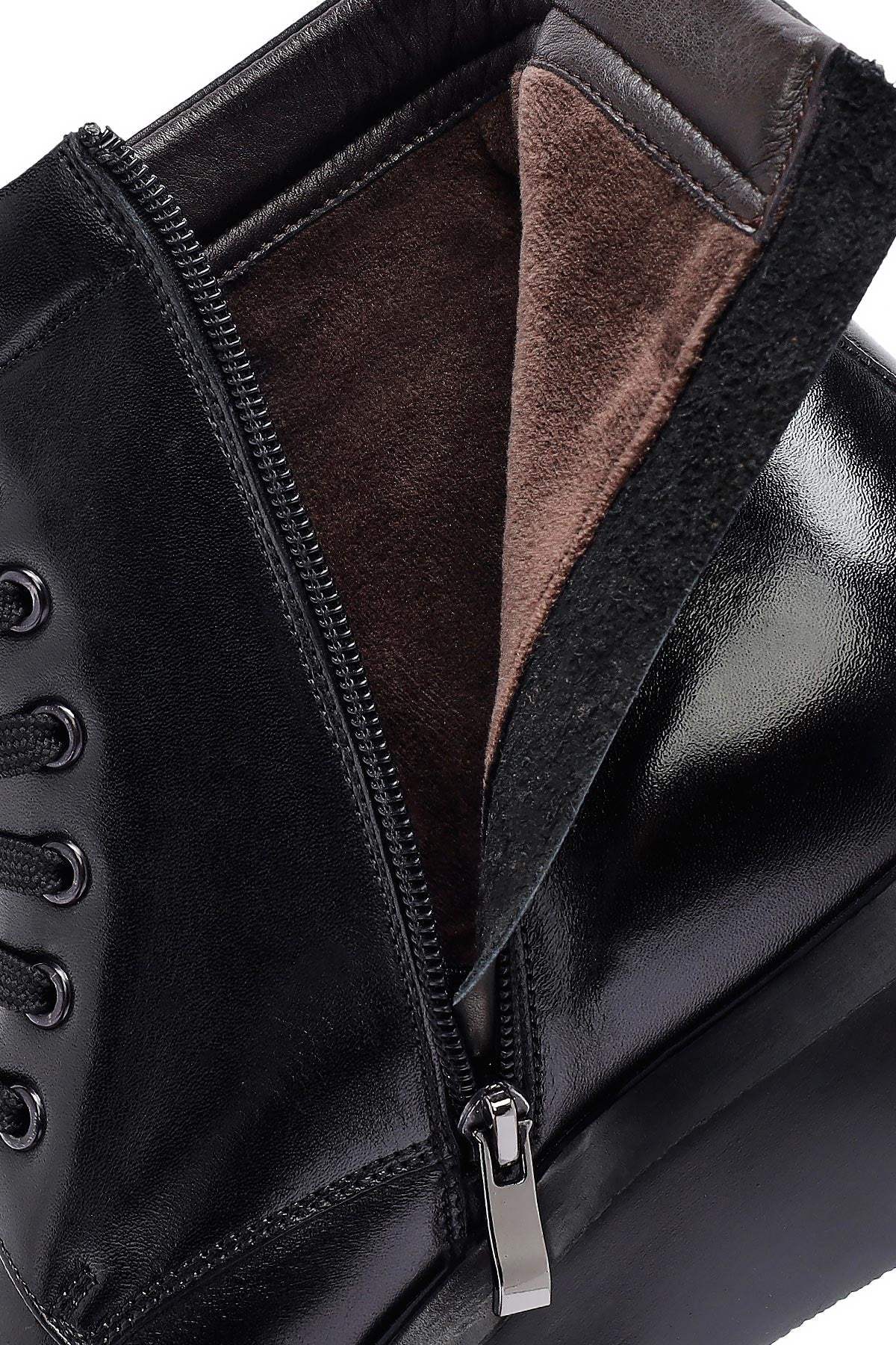 Erkek Siyah Fermuarlı Kalın Tabanlı Deri Bot