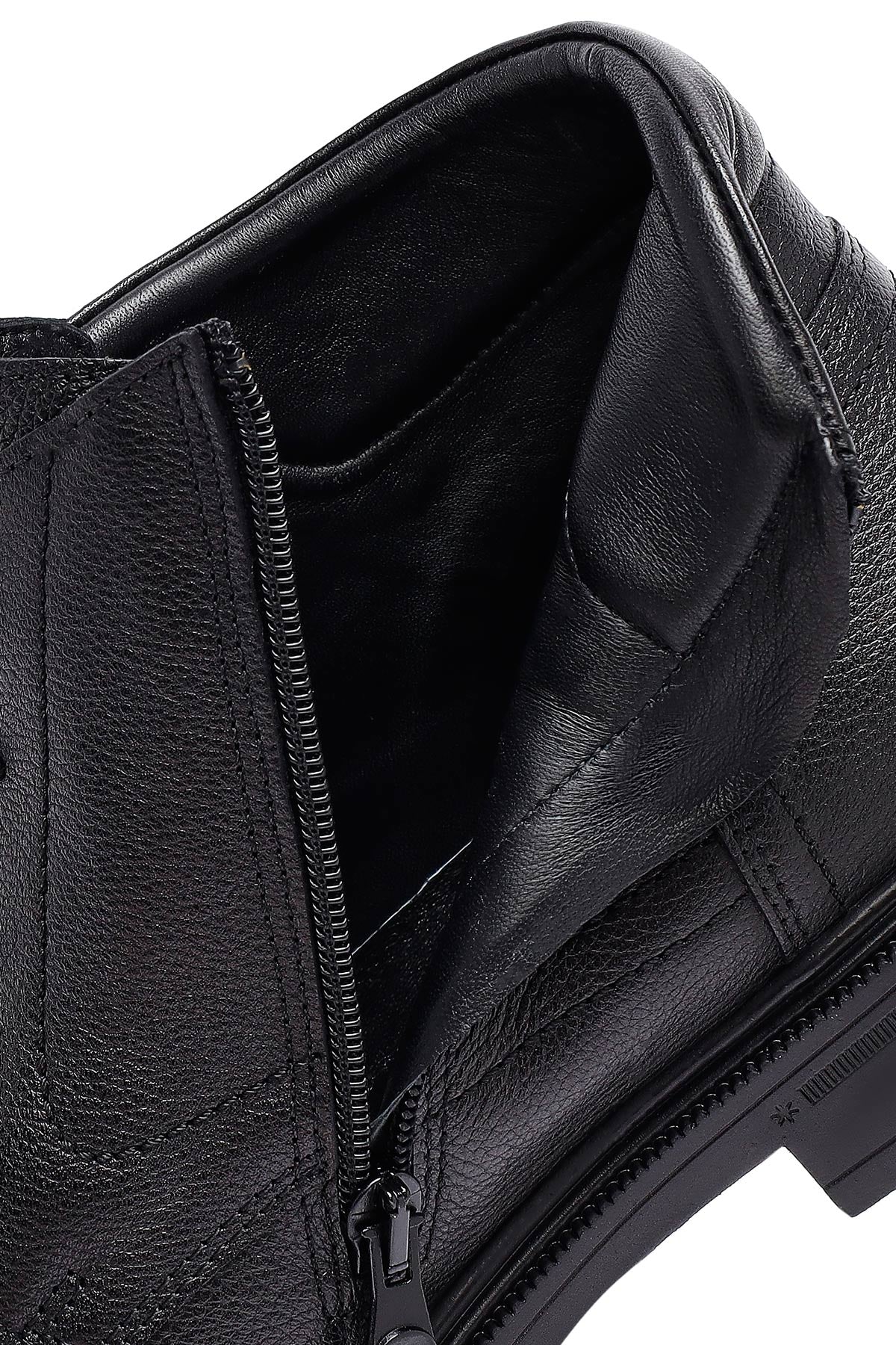 Erkek Siyah Fermuarlı Deri Bot