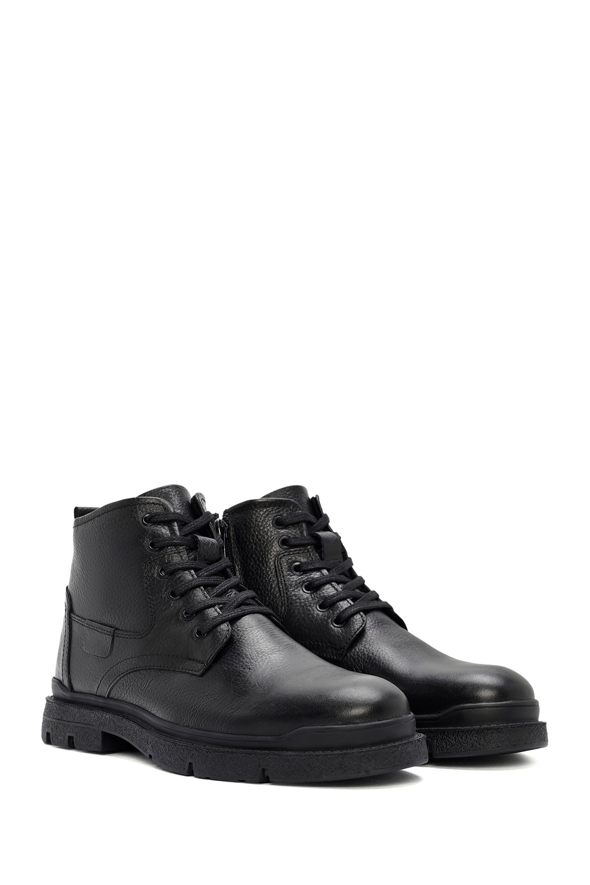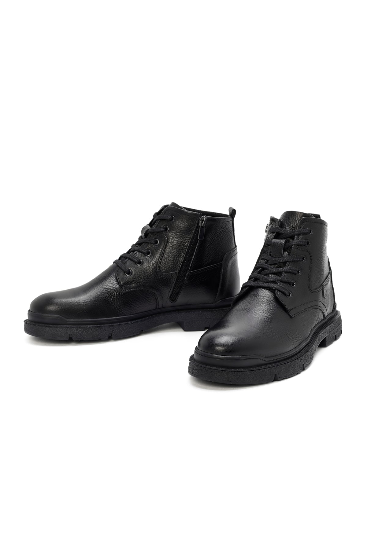Erkek Siyah Fermuarlı Deri Casual Bot