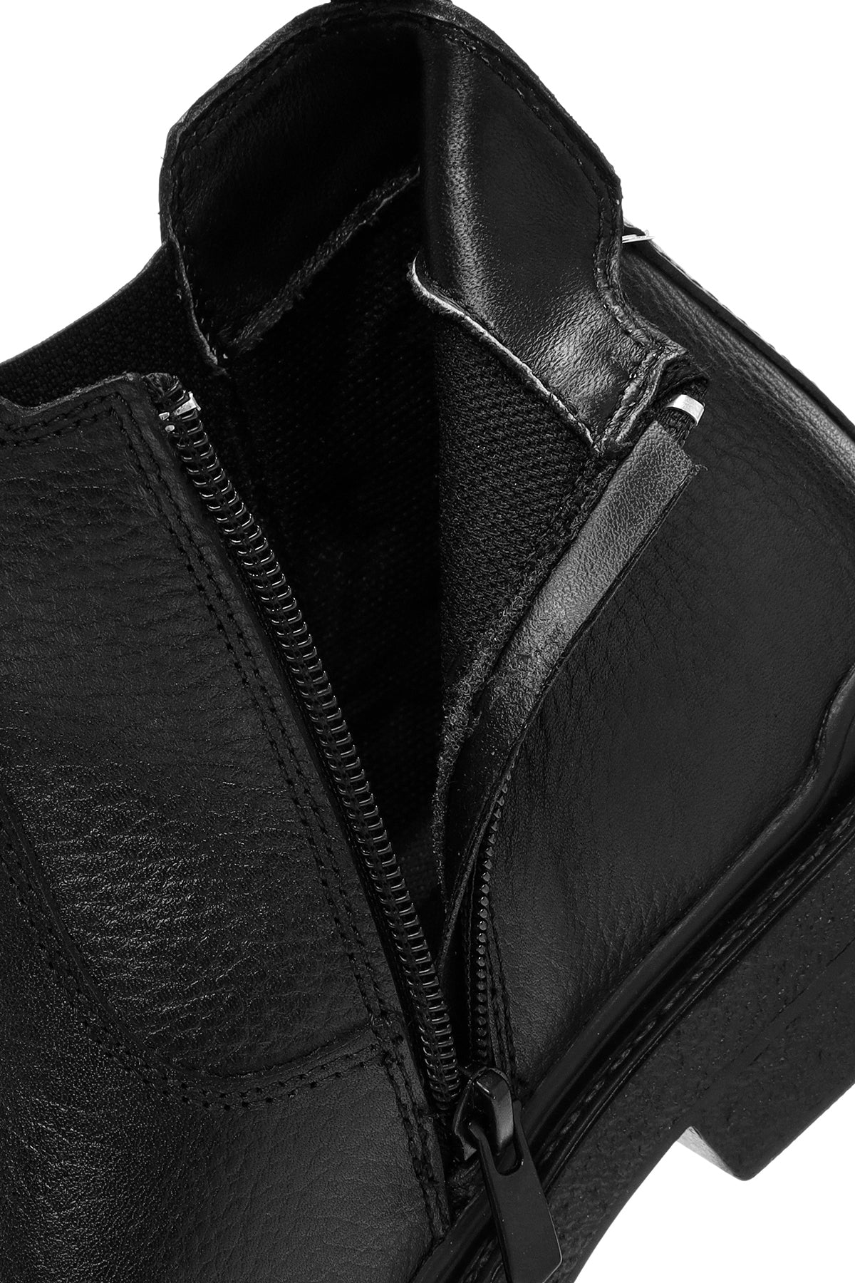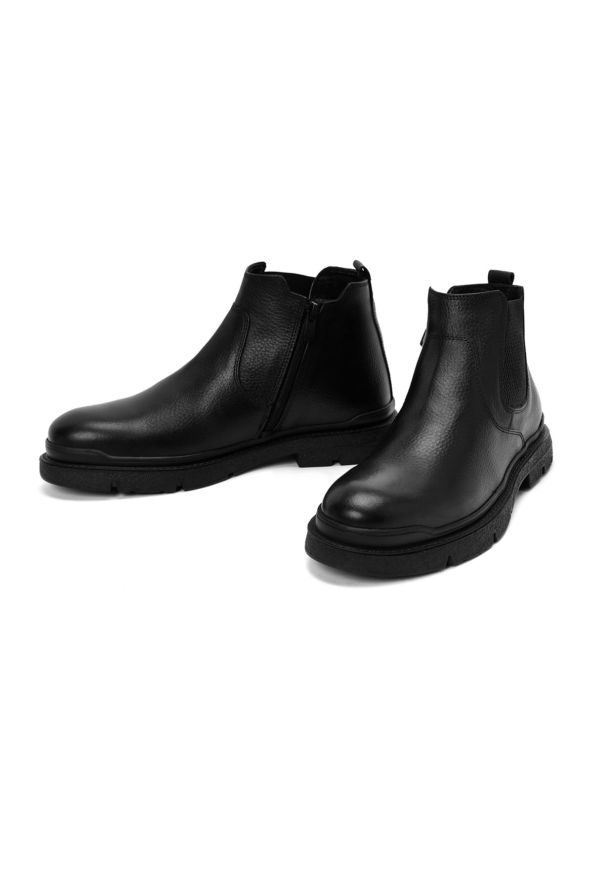 Erkek Siyah Fermuarlı Deri Casual Bot