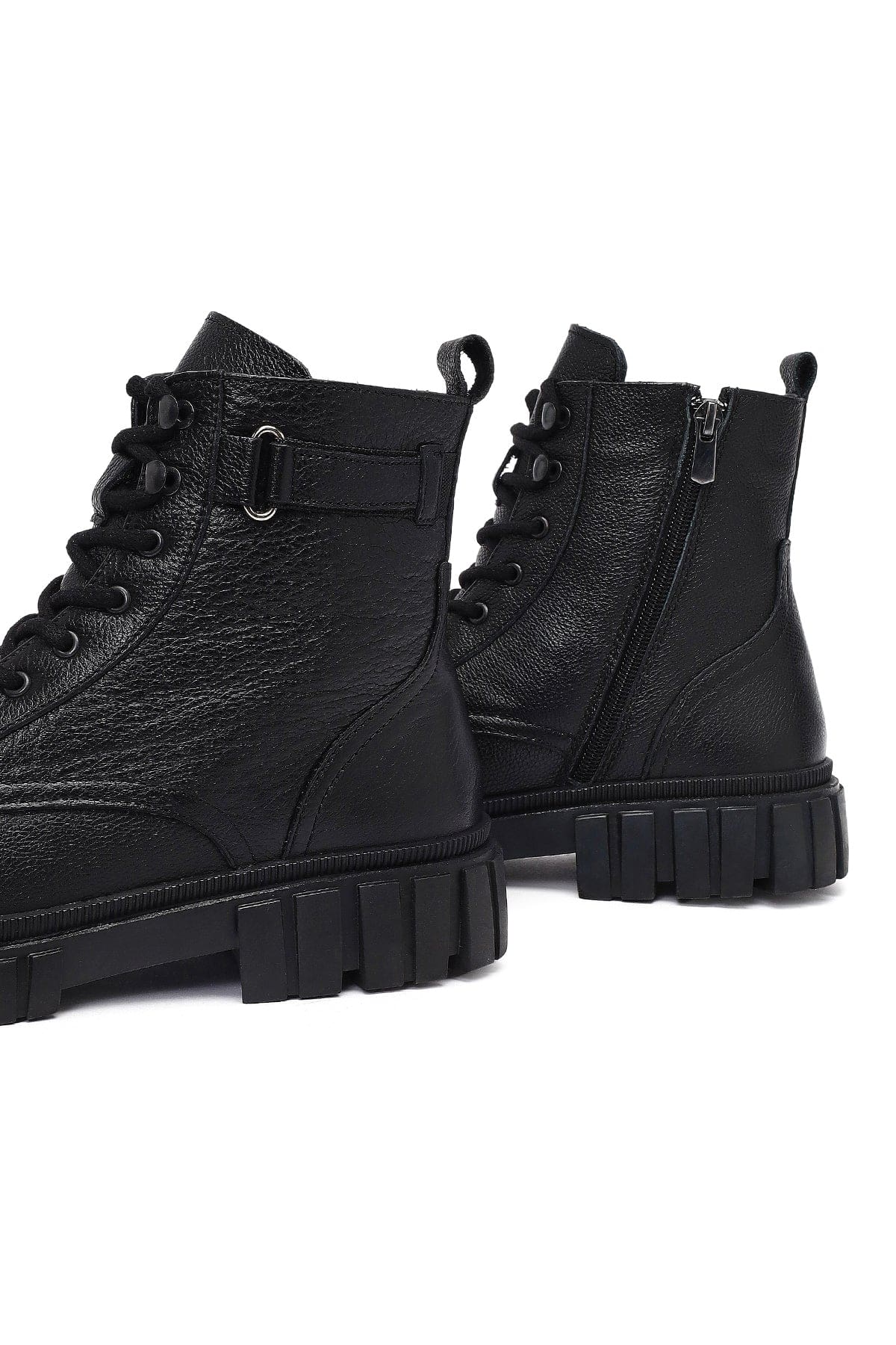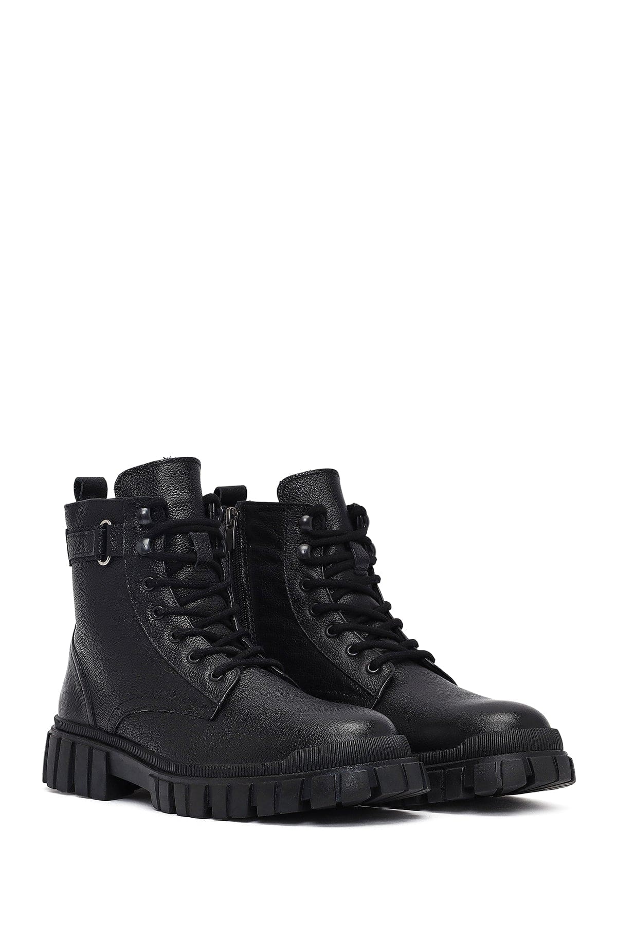 Erkek Siyah Fermuarlı Deri Casual Bot