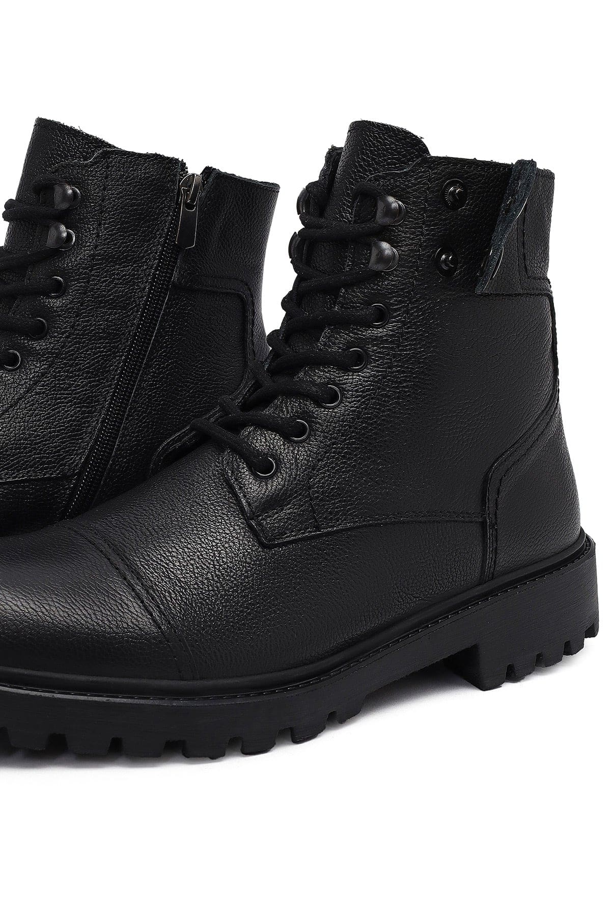 Erkek Siyah Fermuarlı Deri Casual Bot
