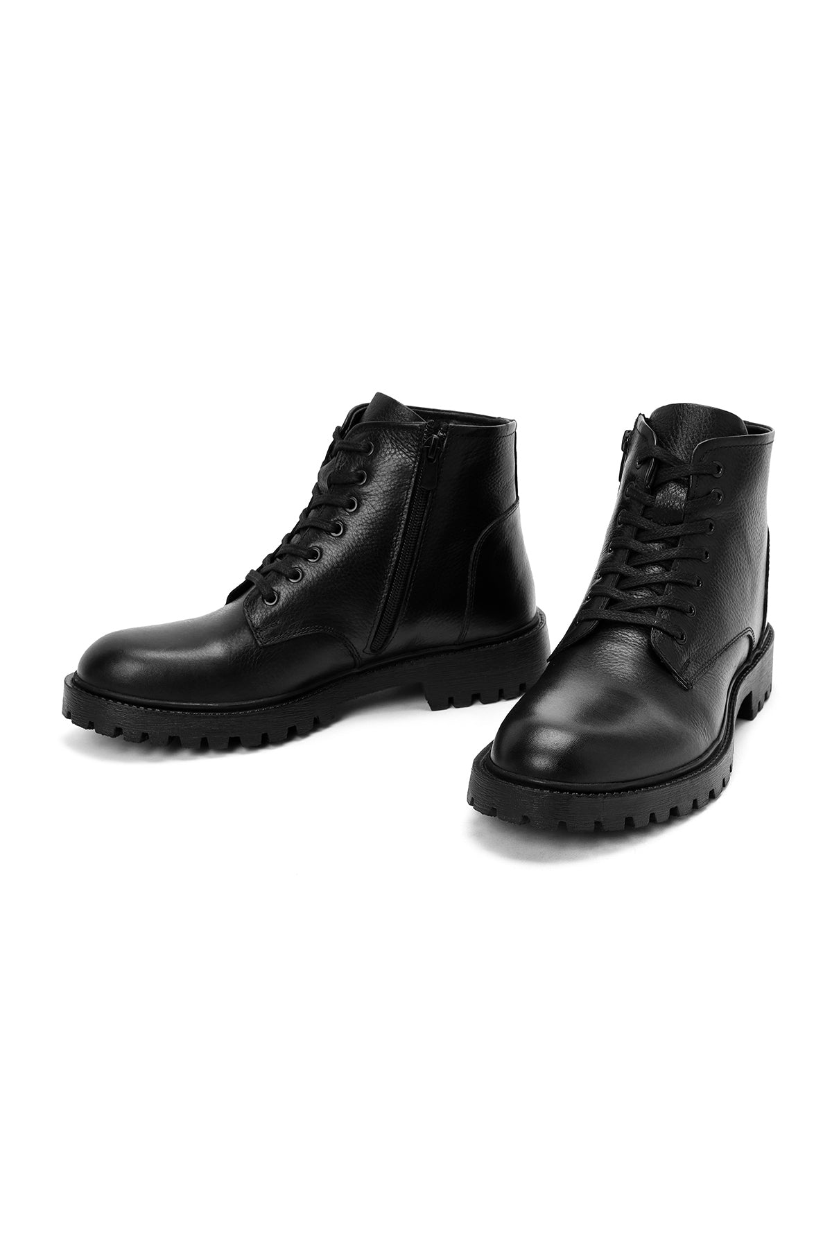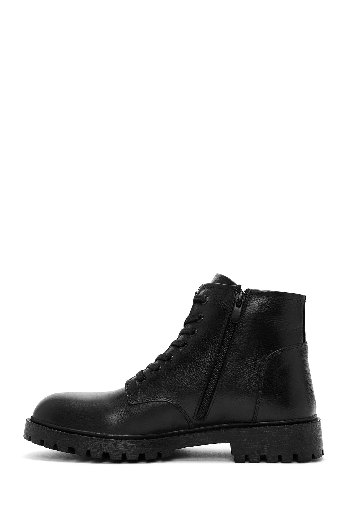 Erkek Siyah Fermuarlı Deri Casual Bot