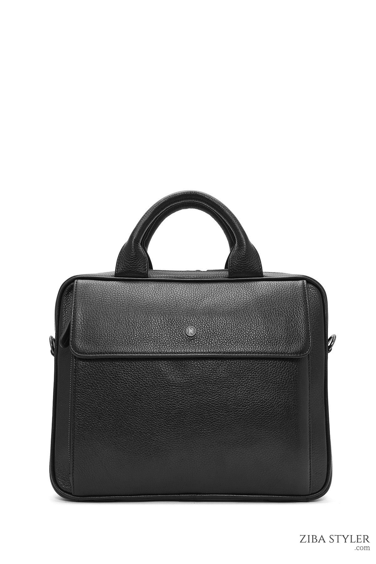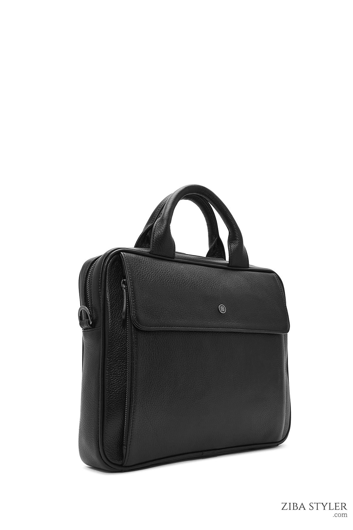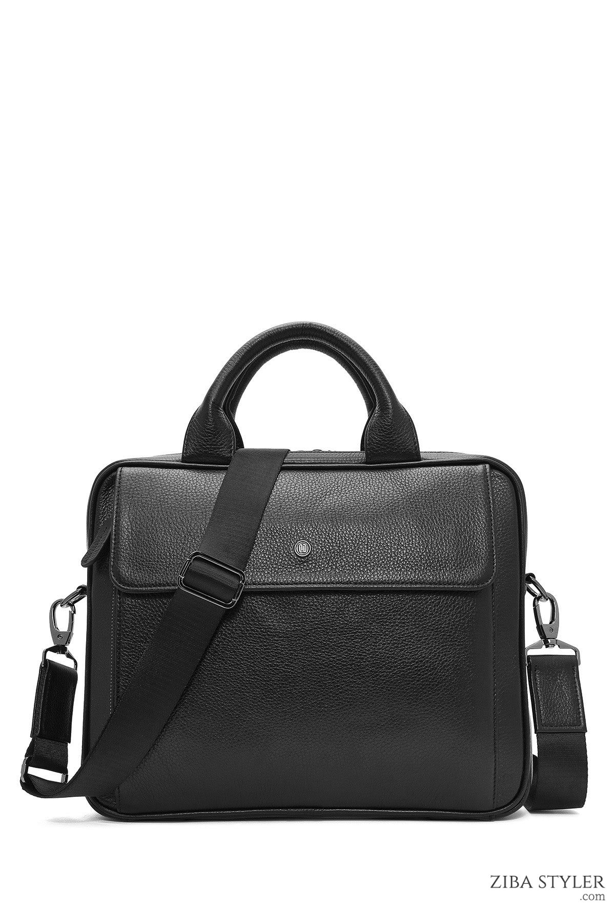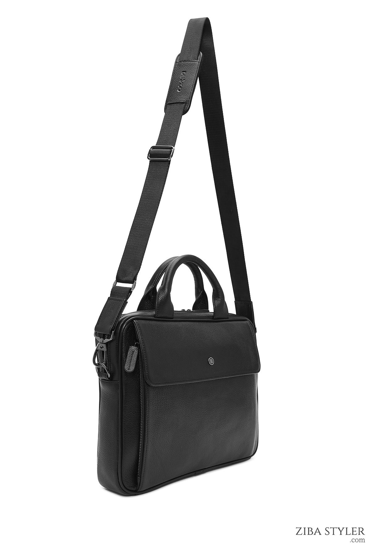 کیف اداری چرمی مردانه مشکی بند بلند دری مد