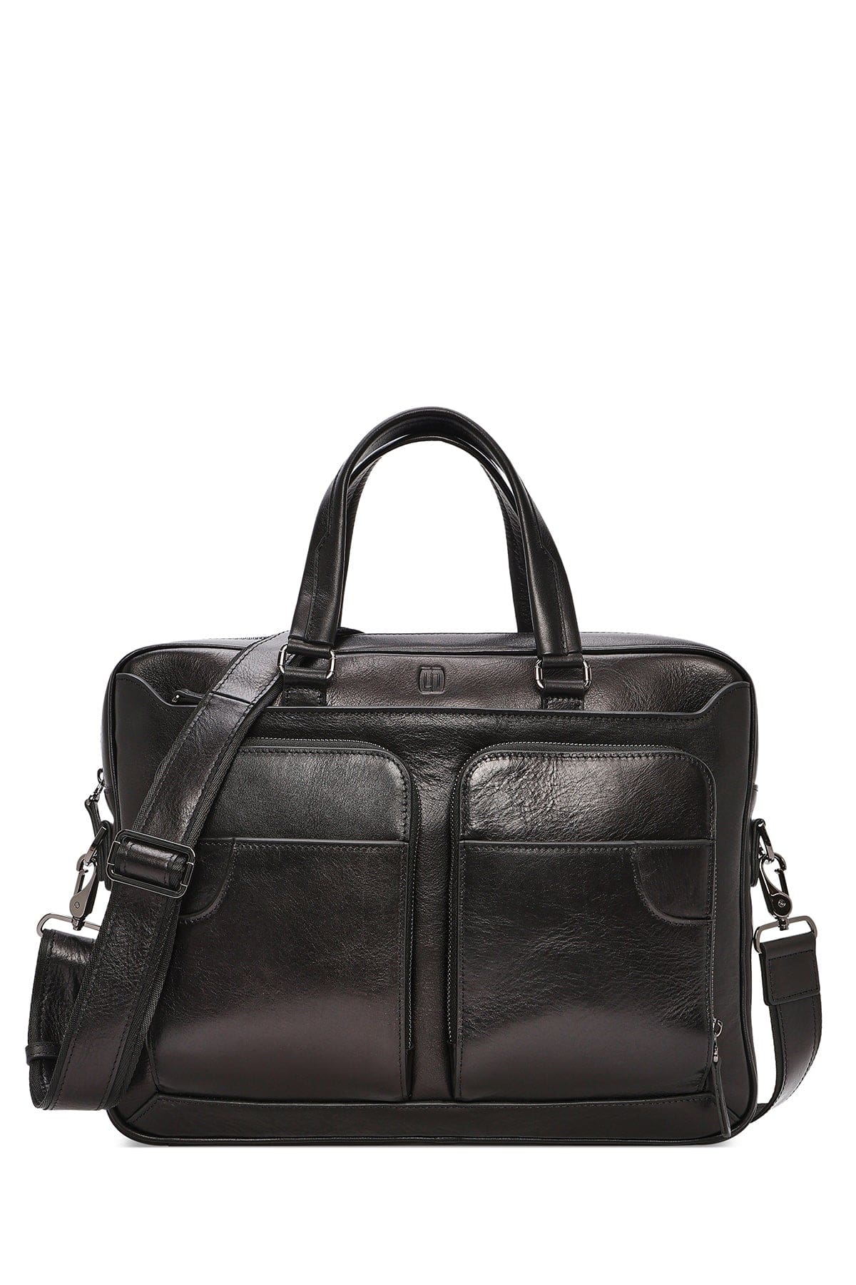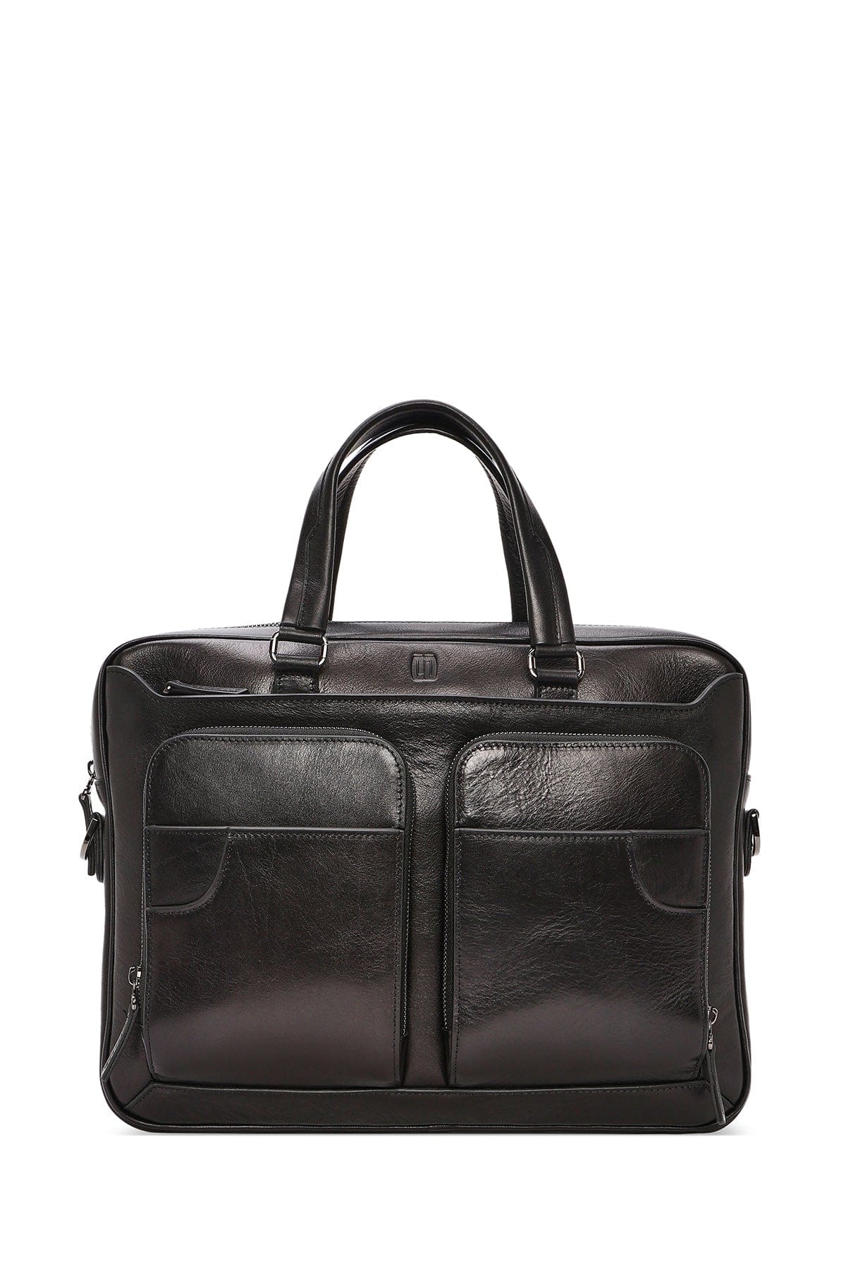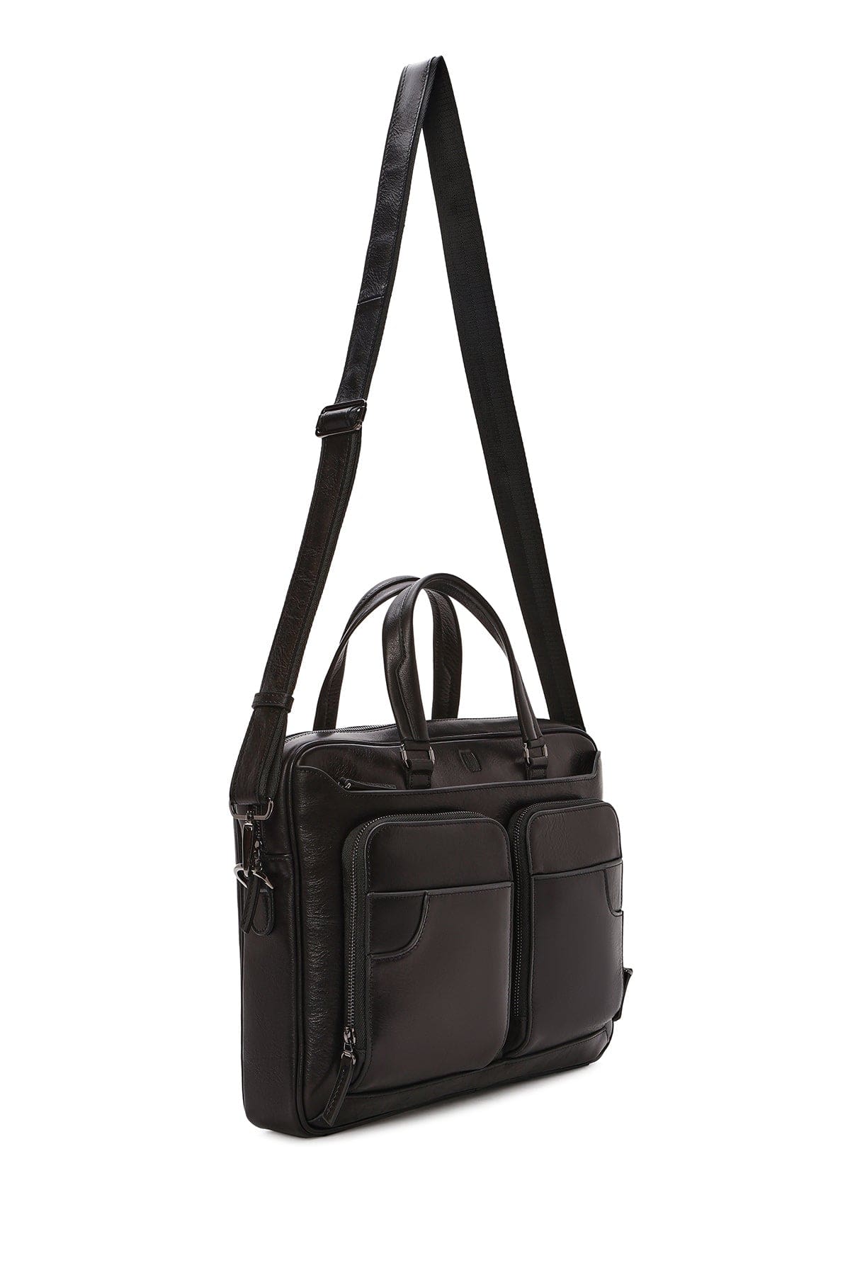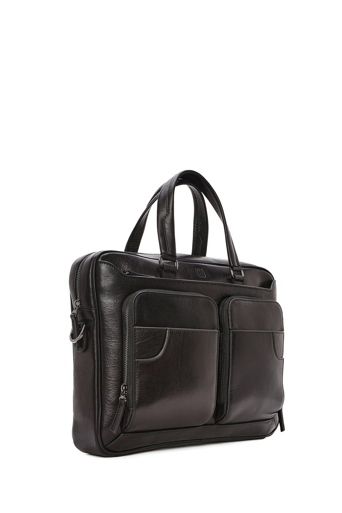Erkek Siyah Uzun Askılı Deri Evrak Çantası