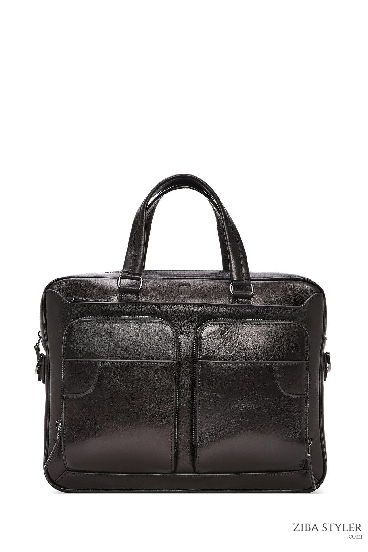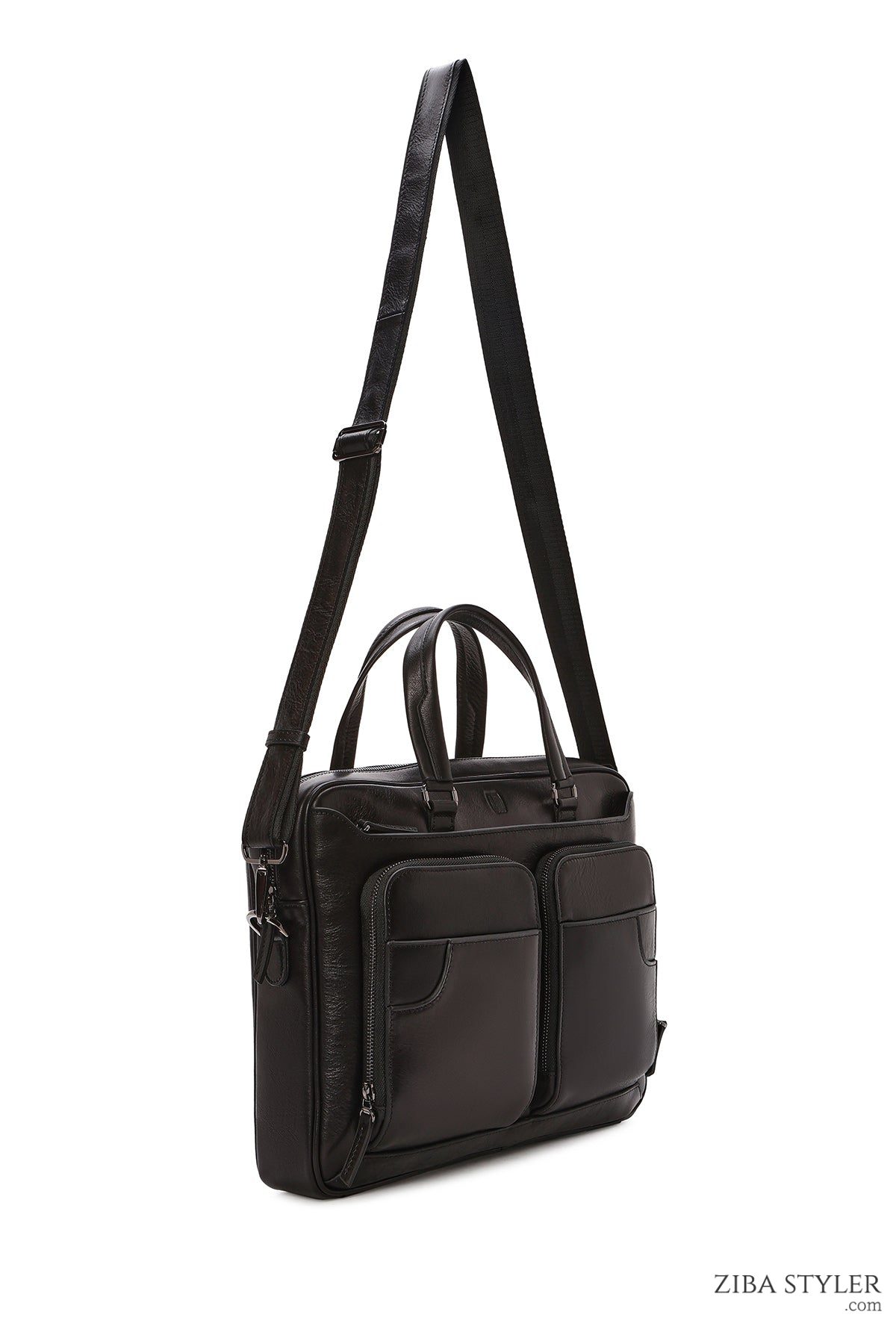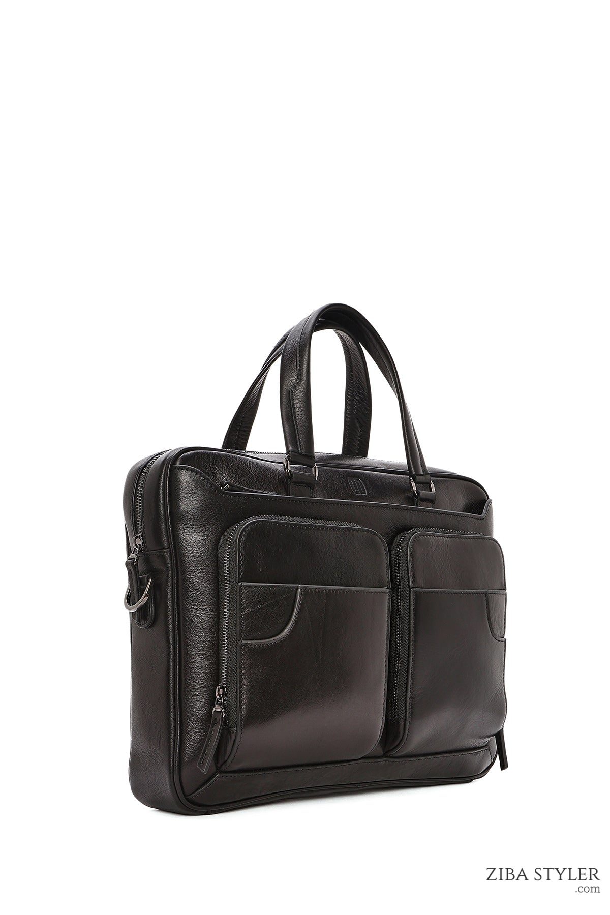 زیبا استایلر / فروشگاه / مردانه / کیف و اکسسوری مردانه / کیف اسناد و اداری مردانه / کیف اداری چرمی مردانه مشکی بند بلند دری مد