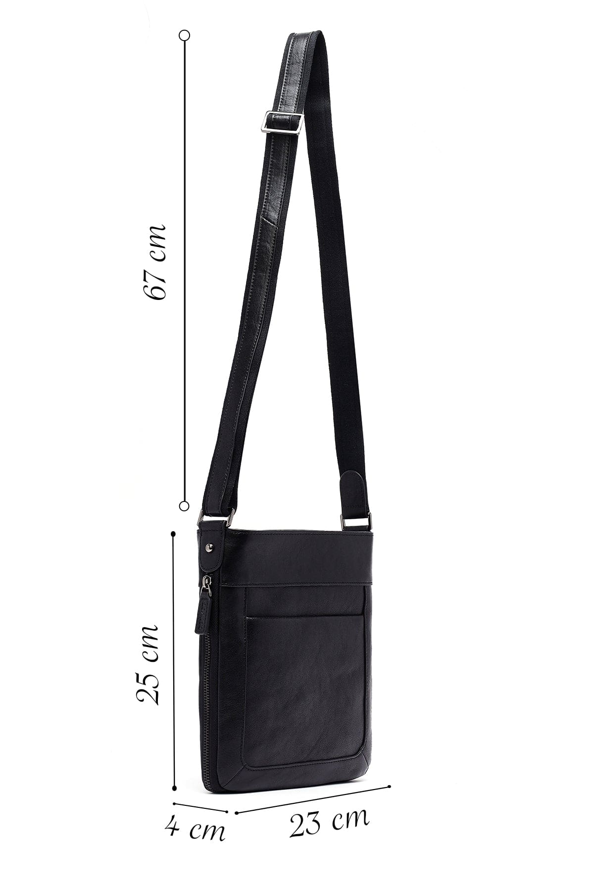 Erkek Siyah Uzun Askılı Deri Postacı Çantası