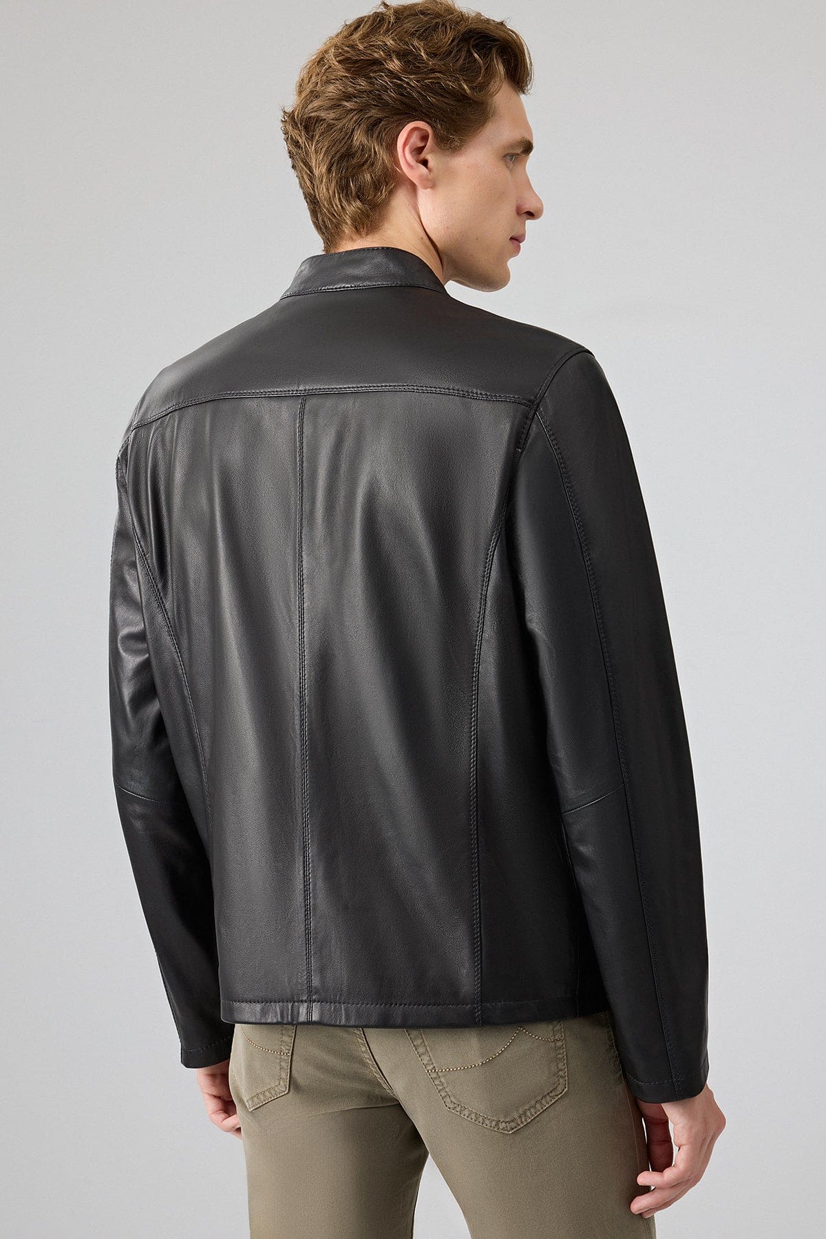 Insignia Erkek Siyah Hakim Yaka Deri Ceket