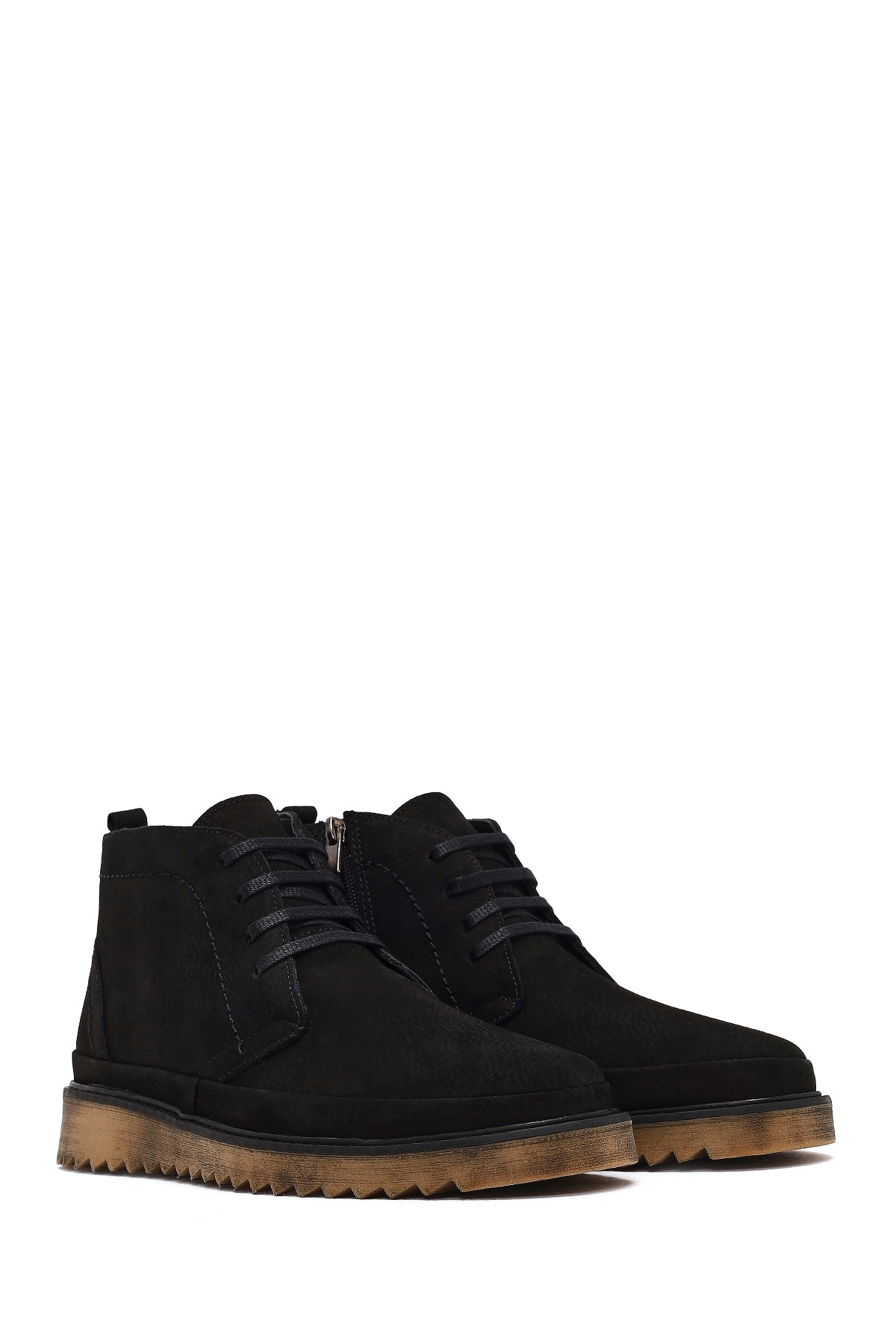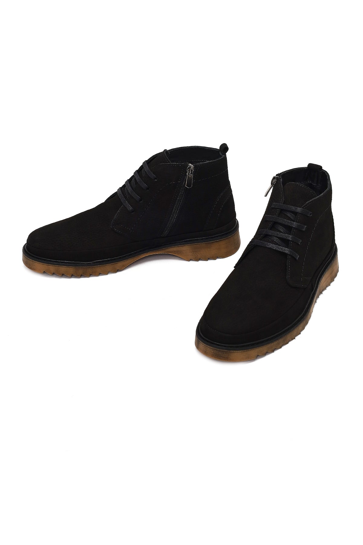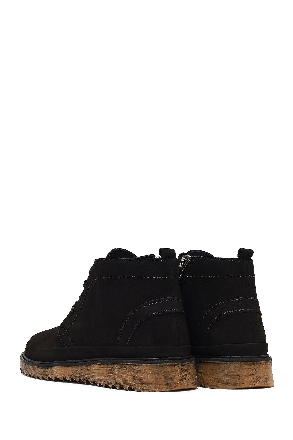 Erkek Siyah Fermuarlı Nubuk Deri Casual Bot