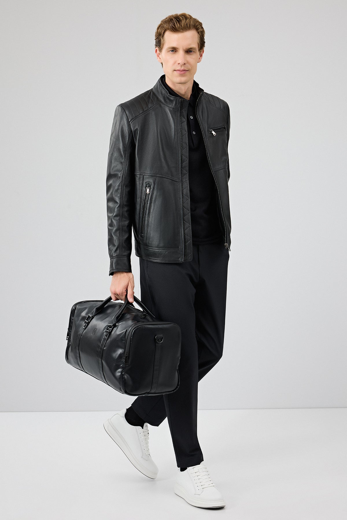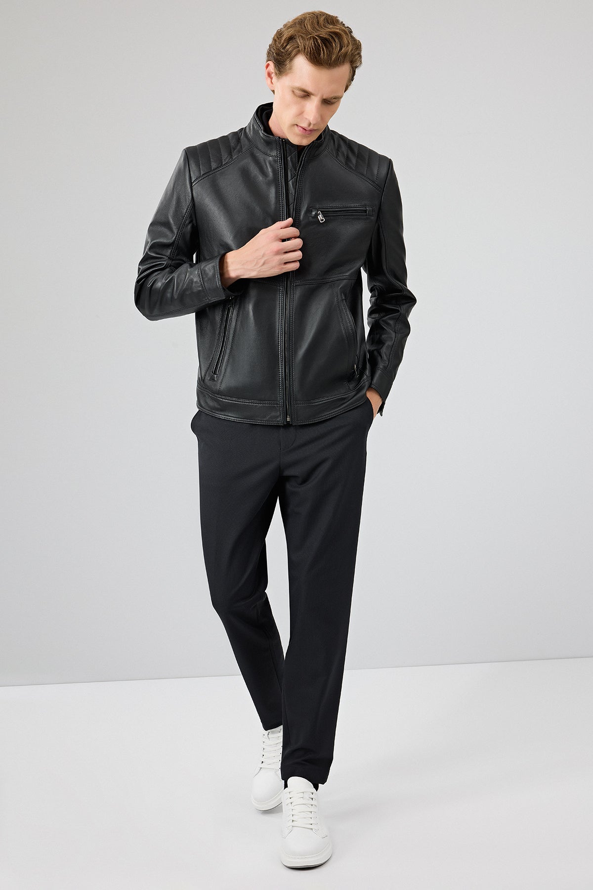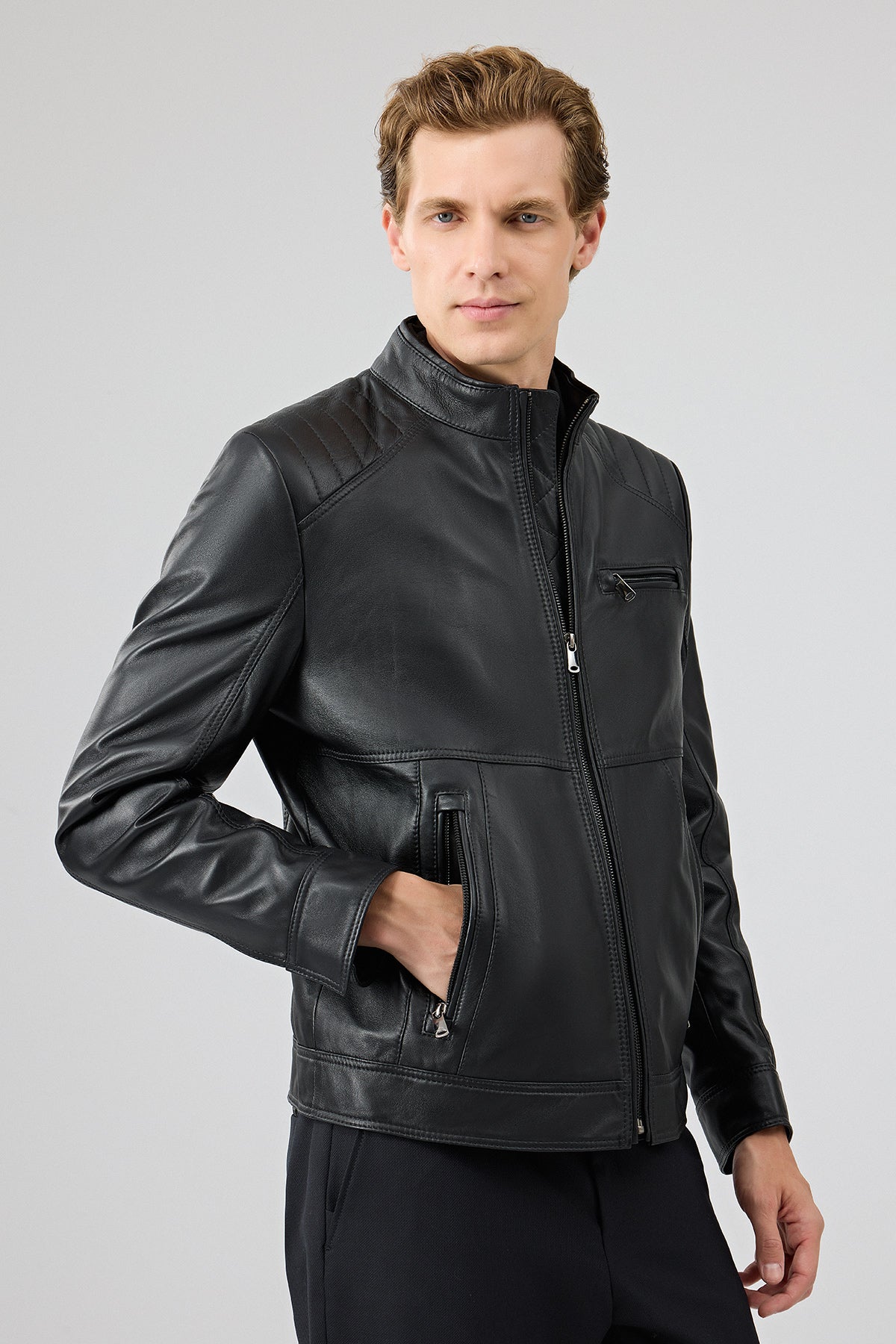 کاپشن چرمی مردانه مشکی یقه دیپلمات کوتاه Tony دری مد