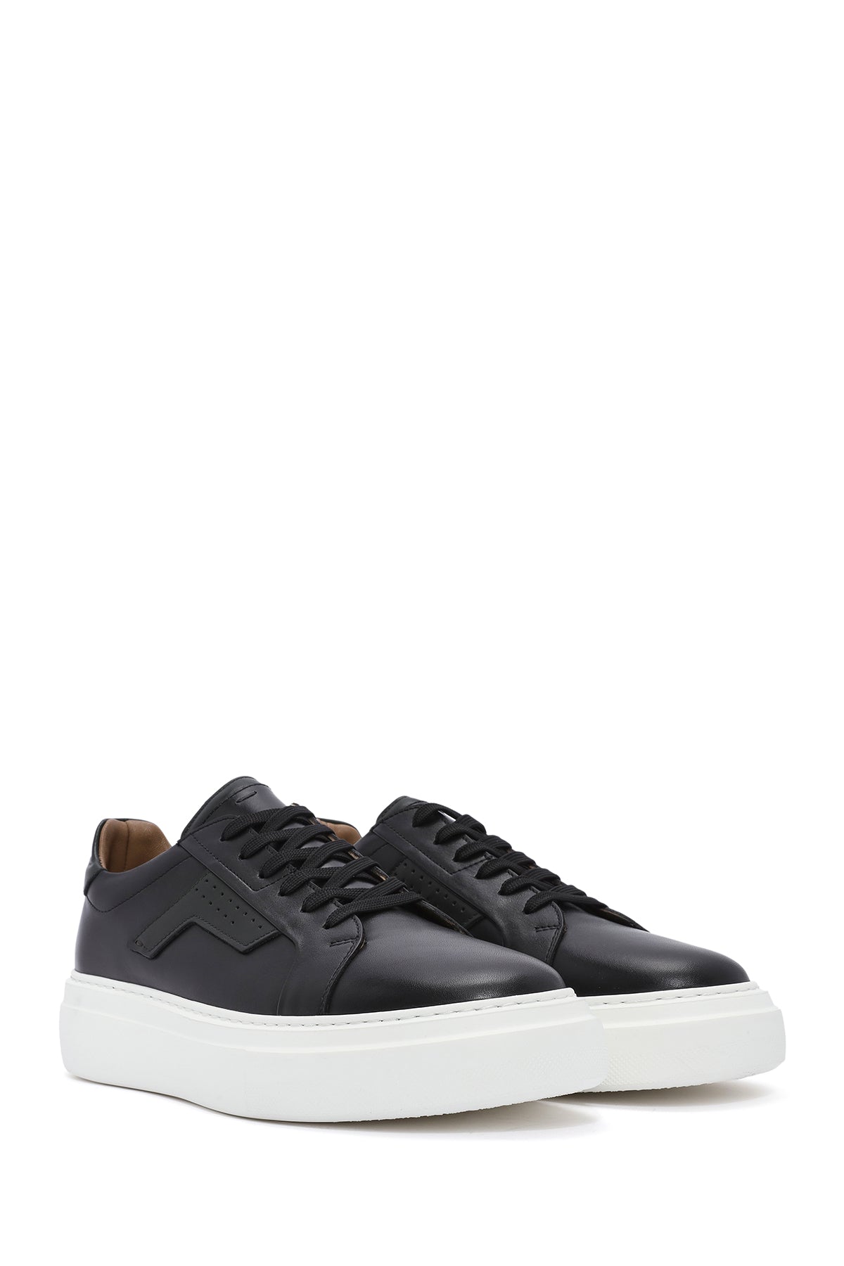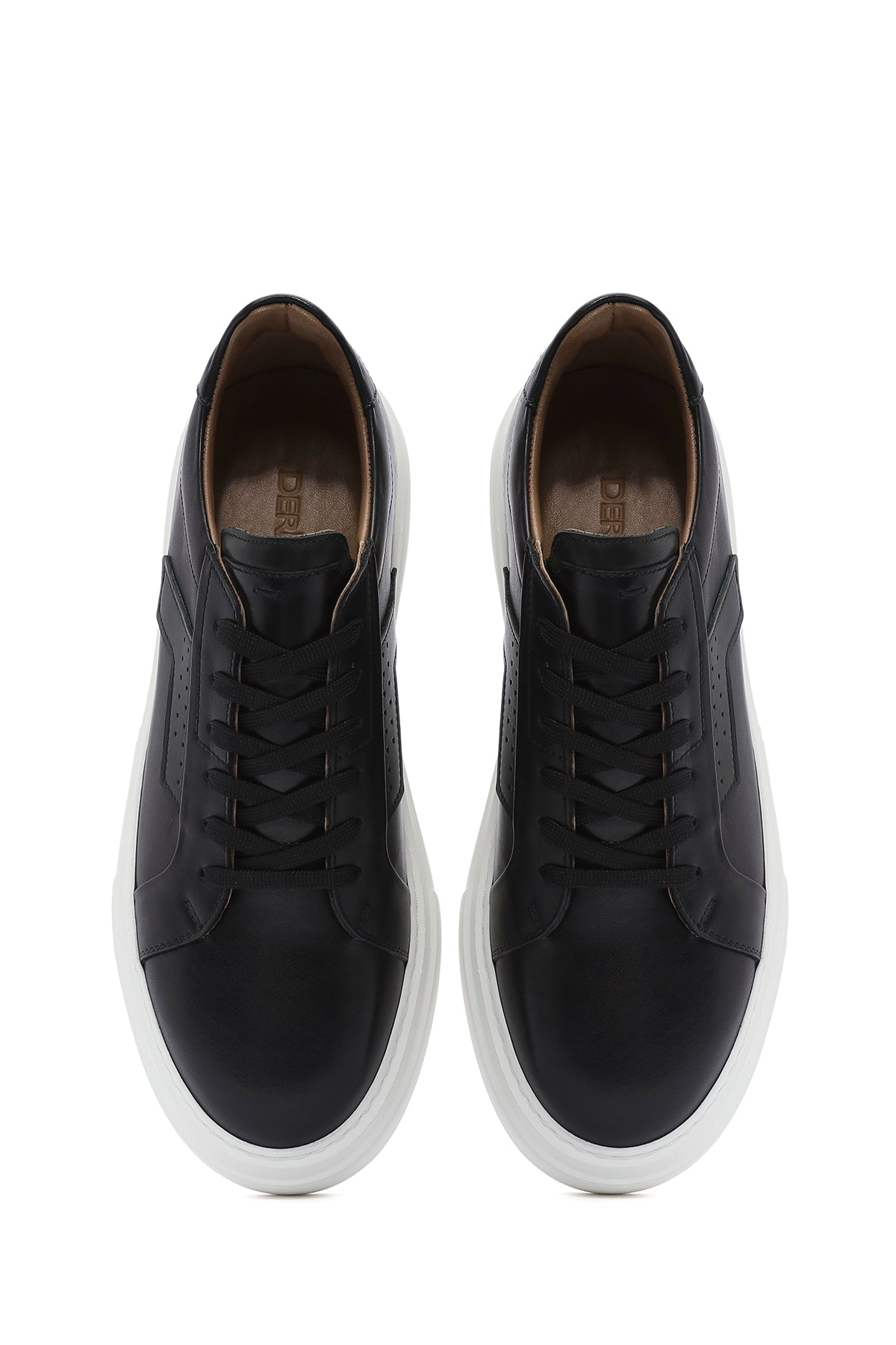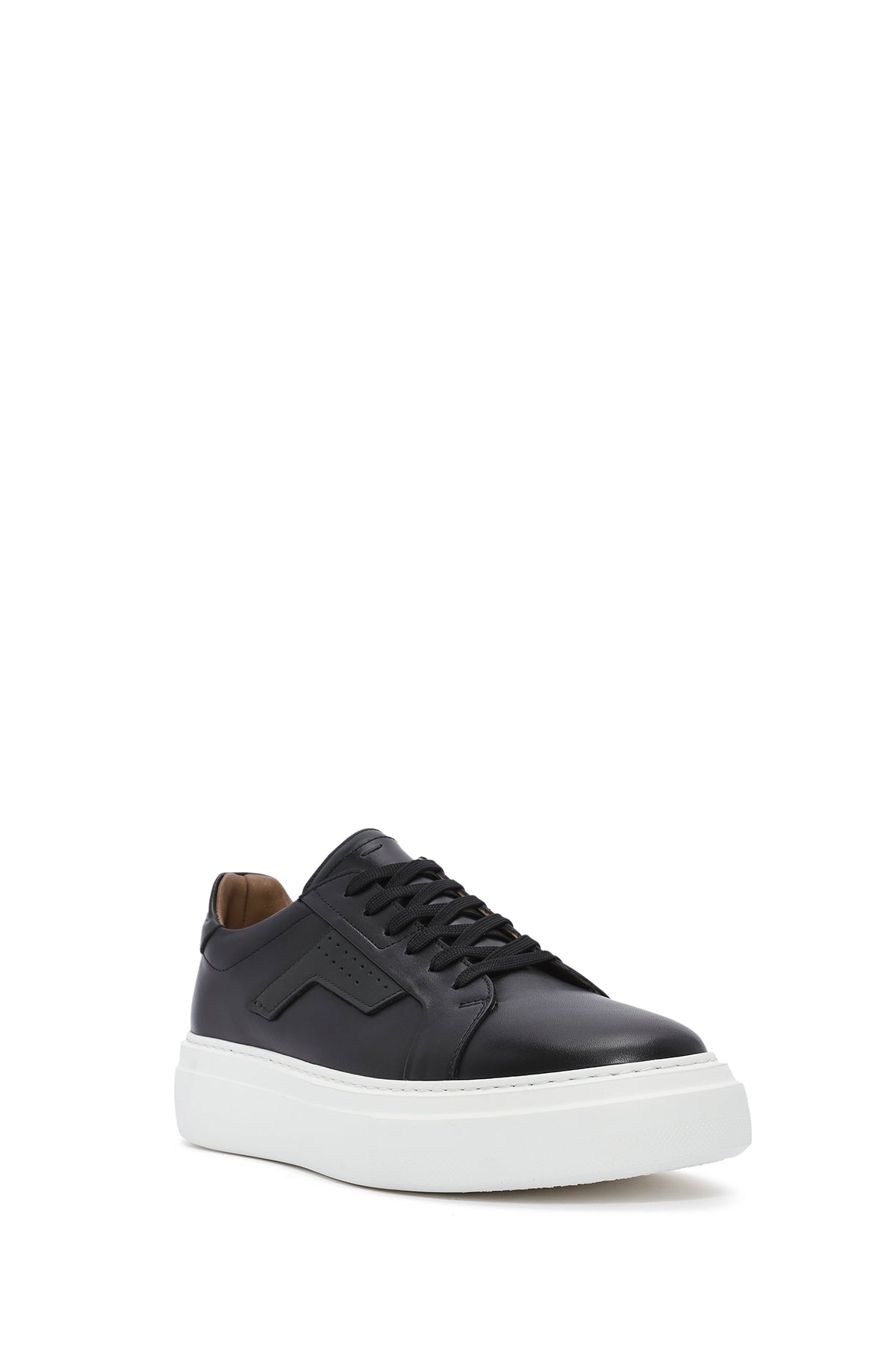 Erkek Siyah Bağcıklı Kalın Tabanlı Deri Sneaker