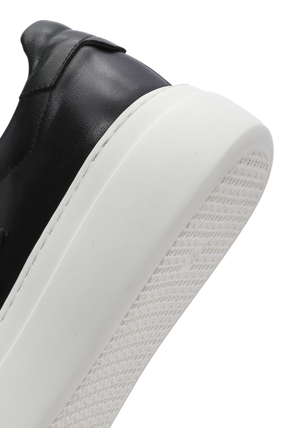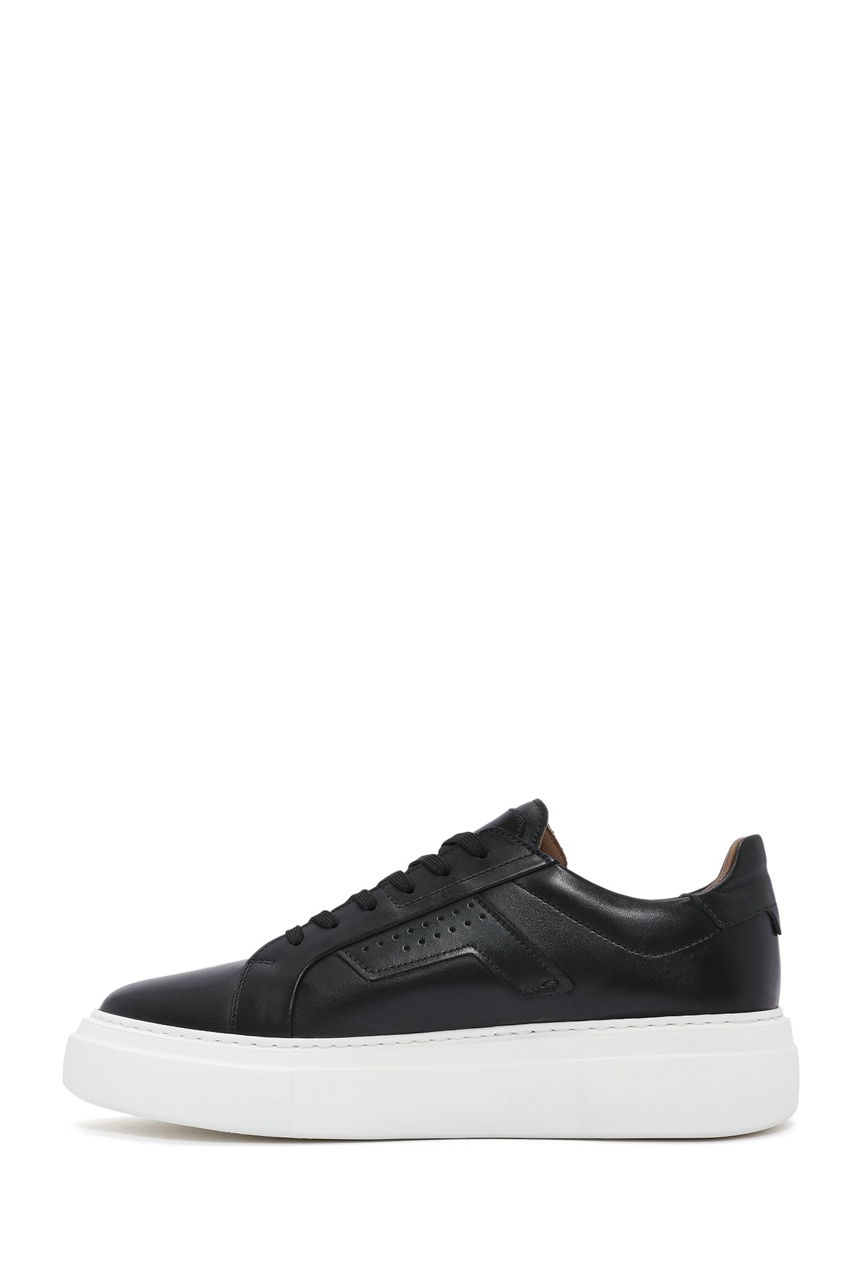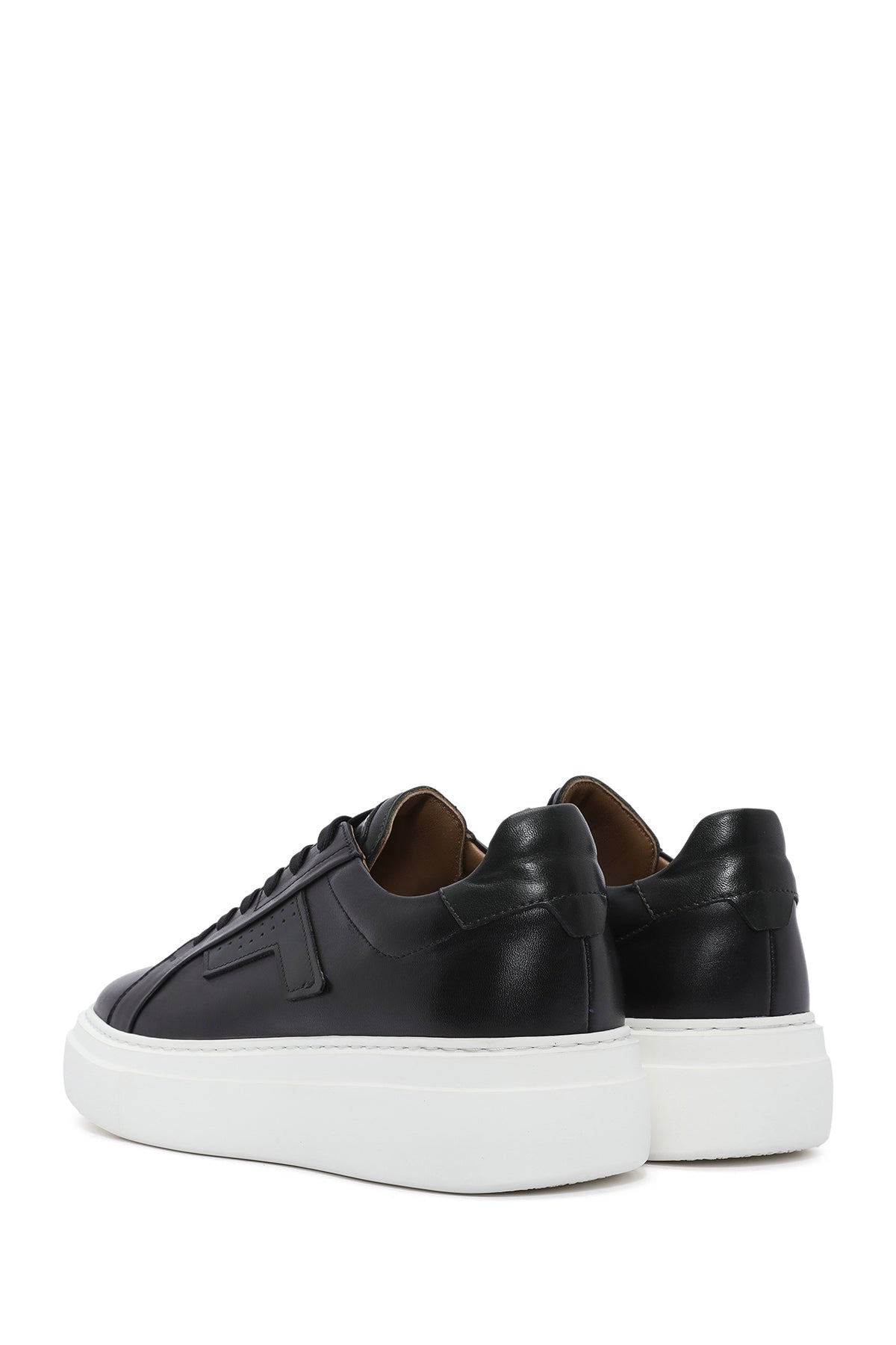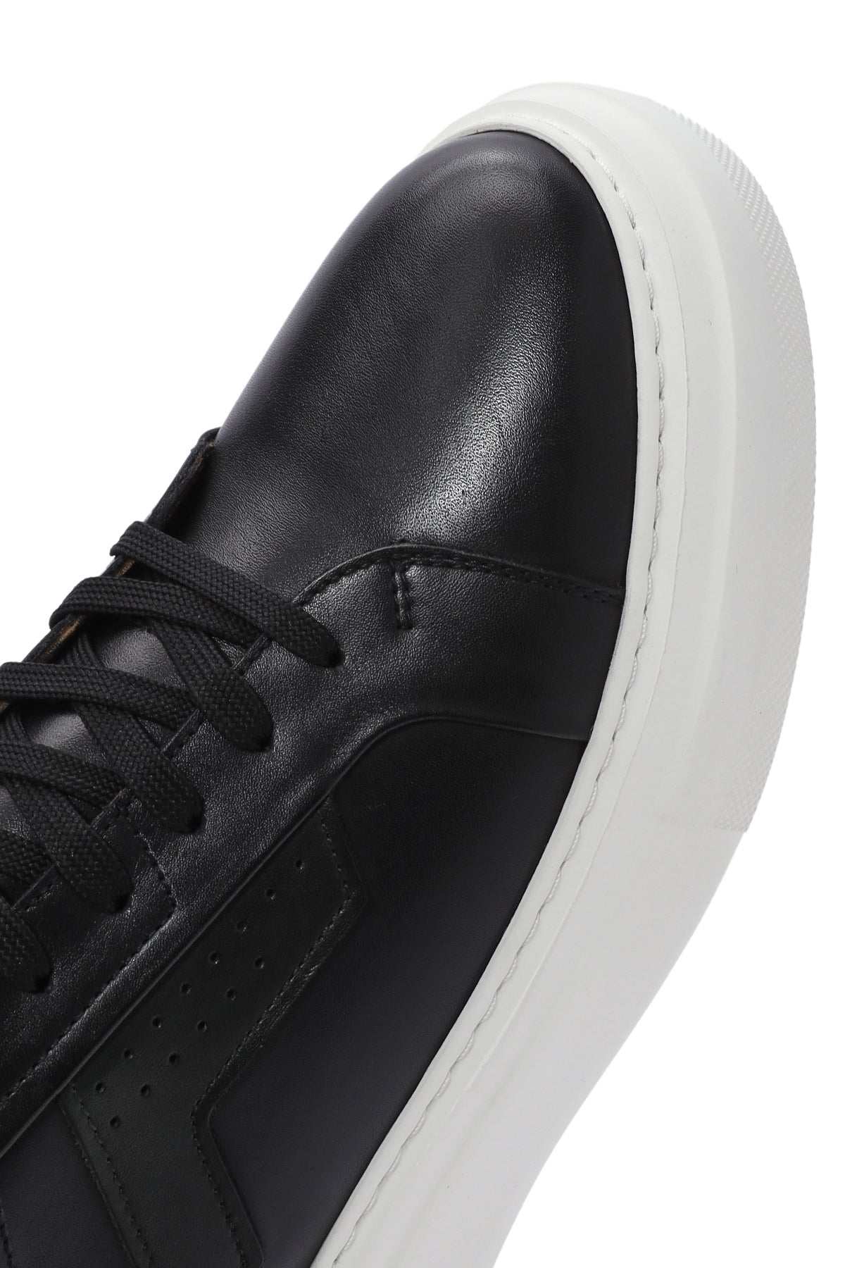 Erkek Siyah Bağcıklı Kalın Tabanlı Deri Sneaker