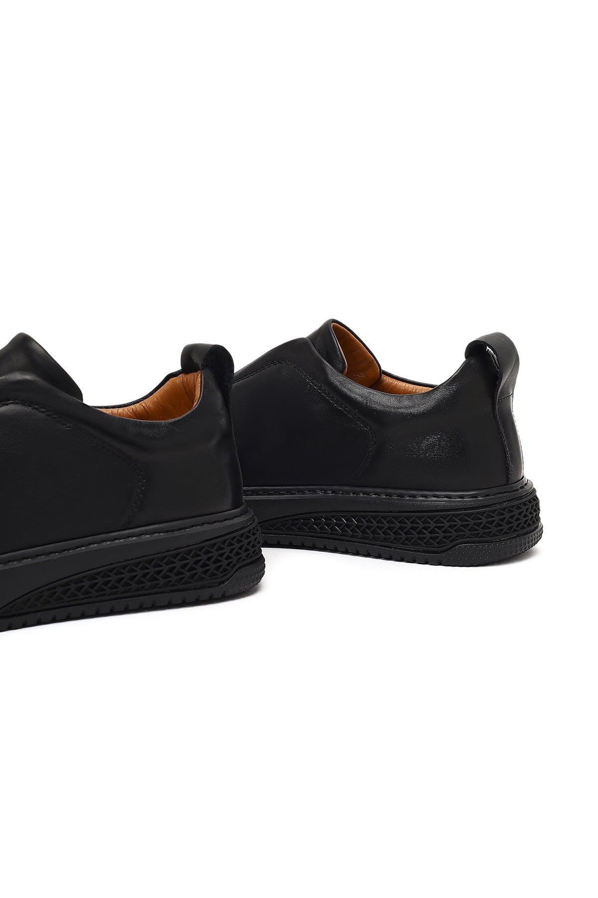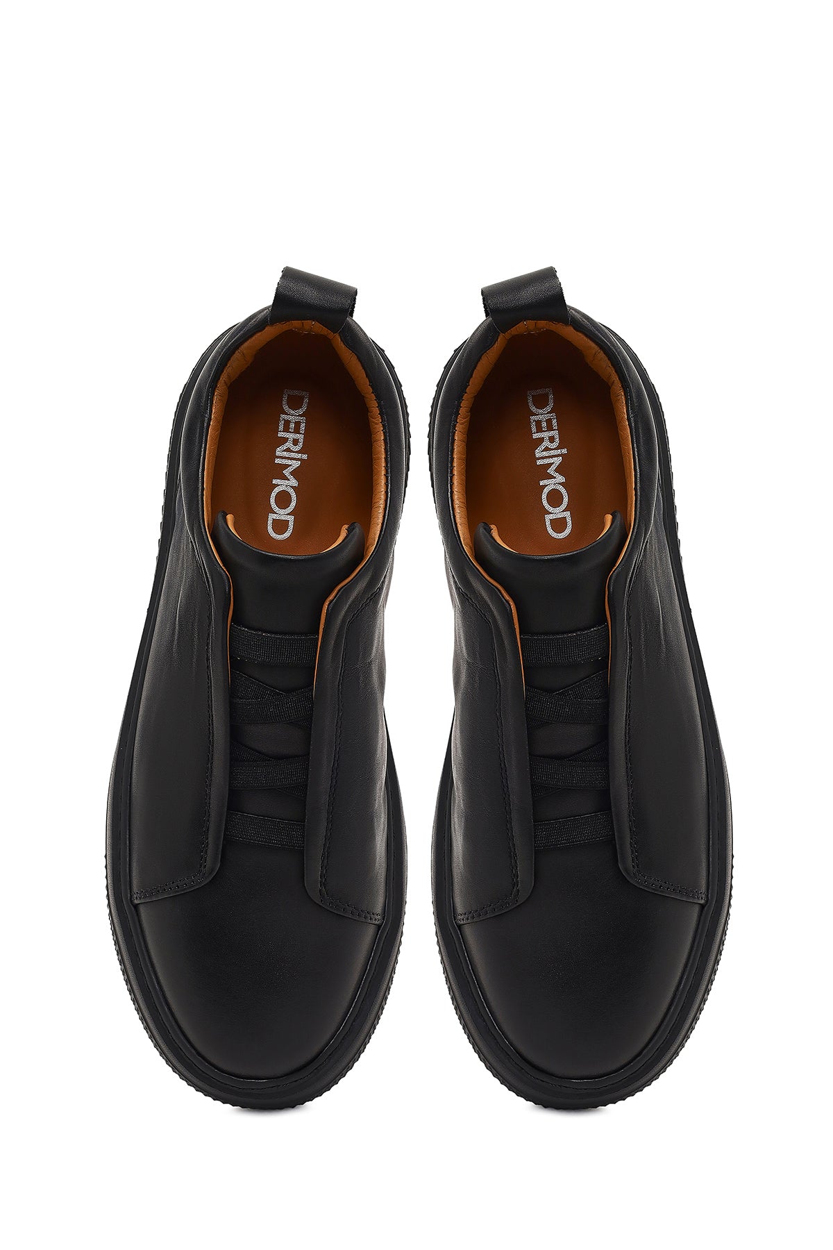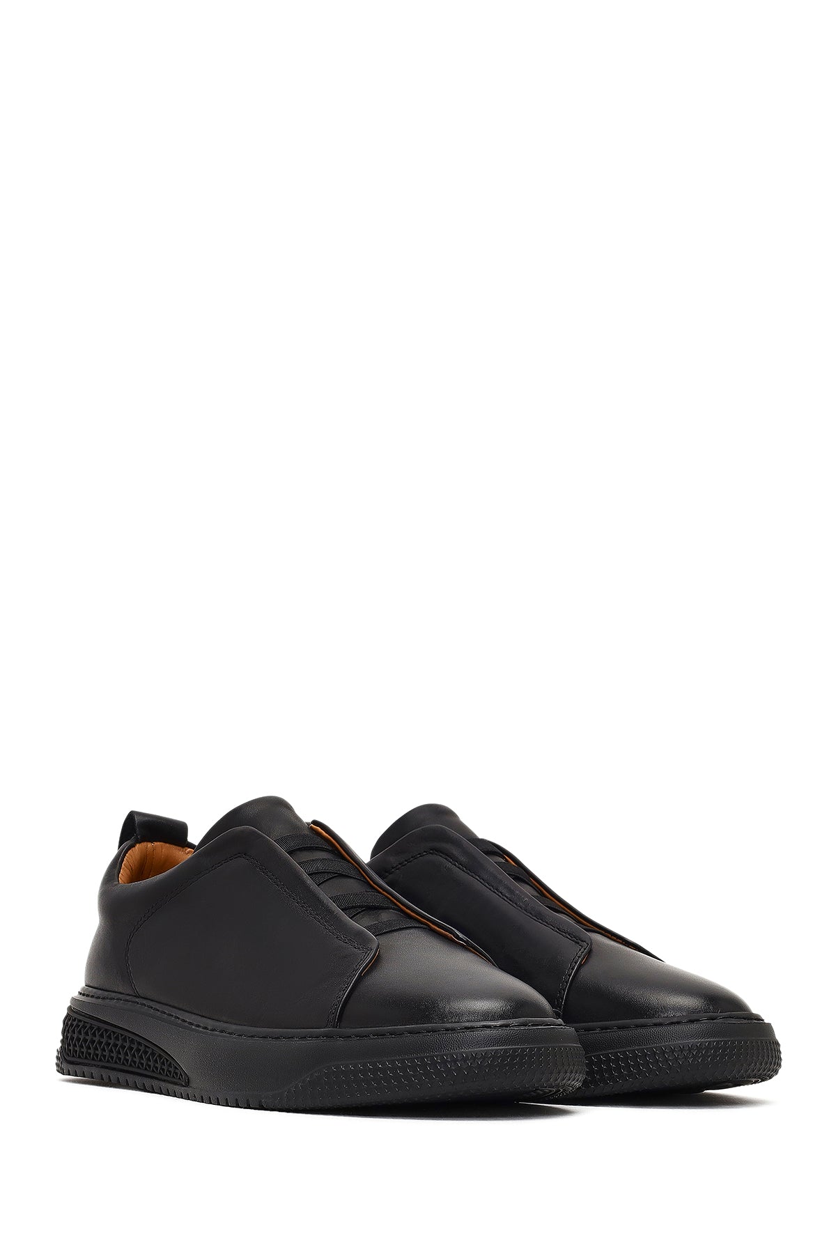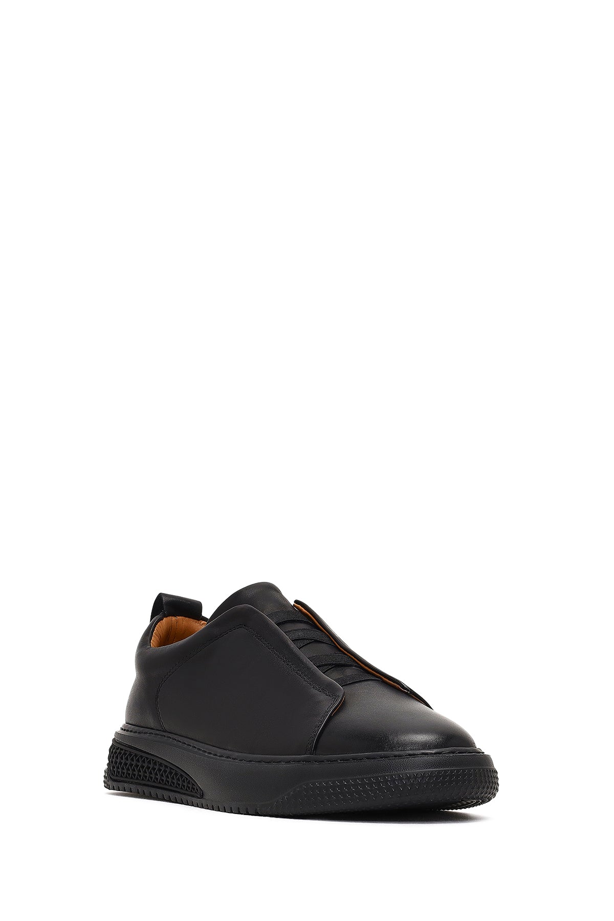 Erkek Siyah Kalın Tabanlı Deri Sneaker