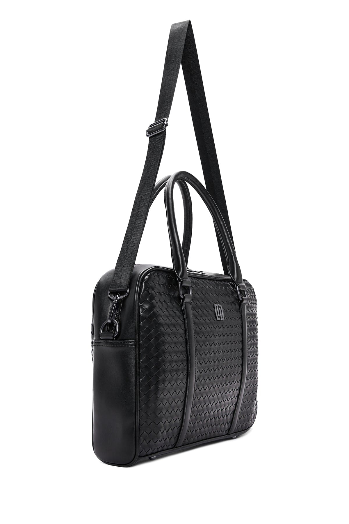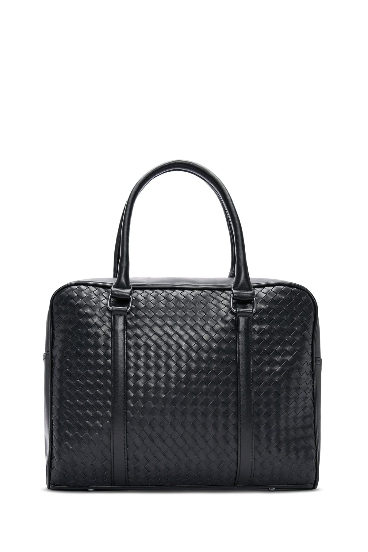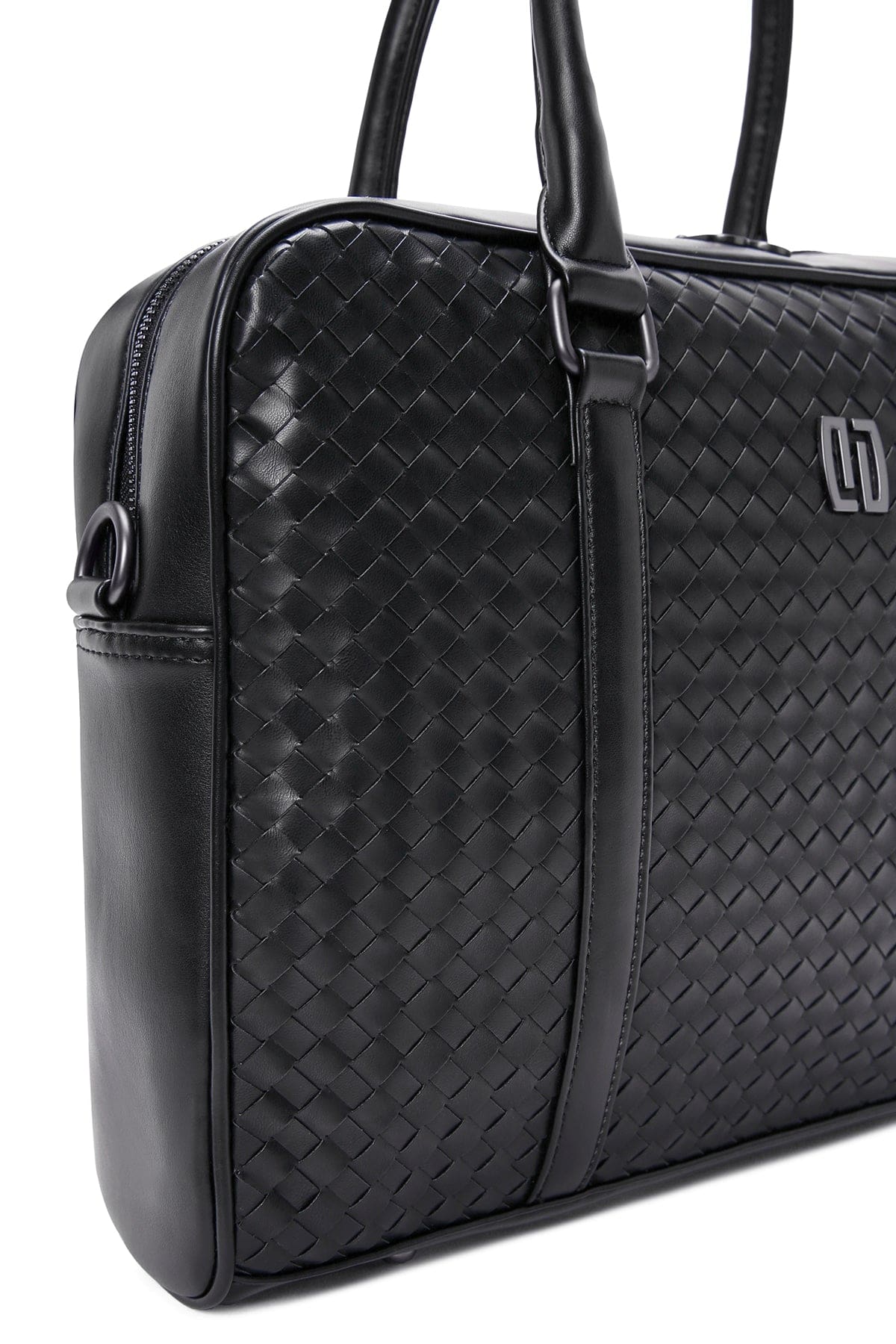 Erkek Siyah Örgü Desenli Evrak Çantası