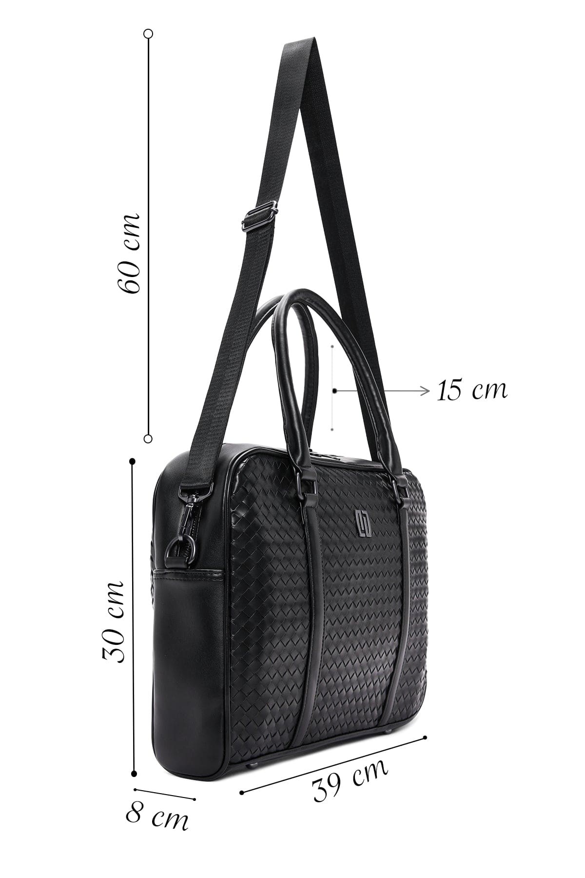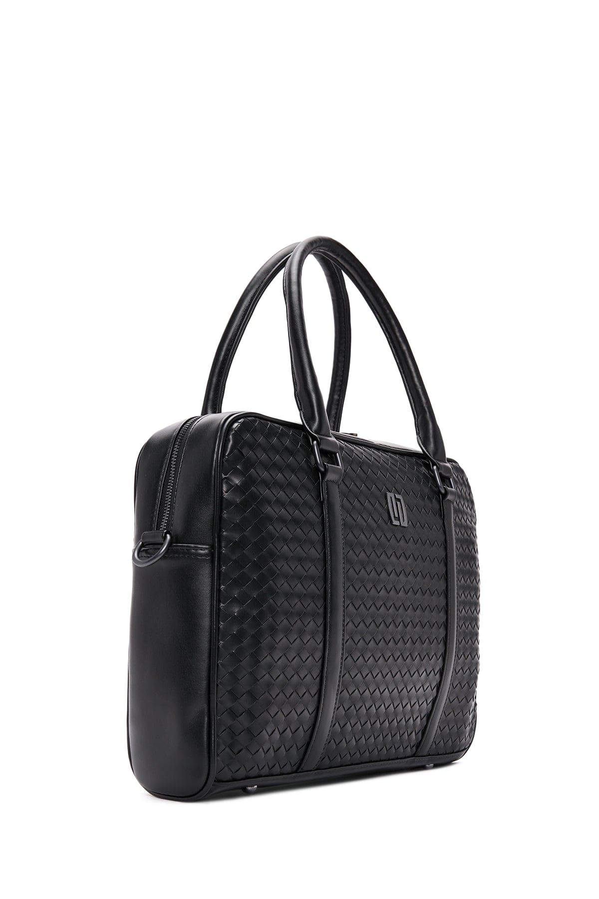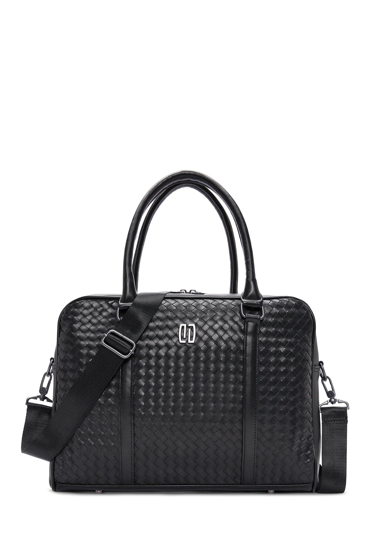 Erkek Siyah Örgü Desenli Evrak Çantası