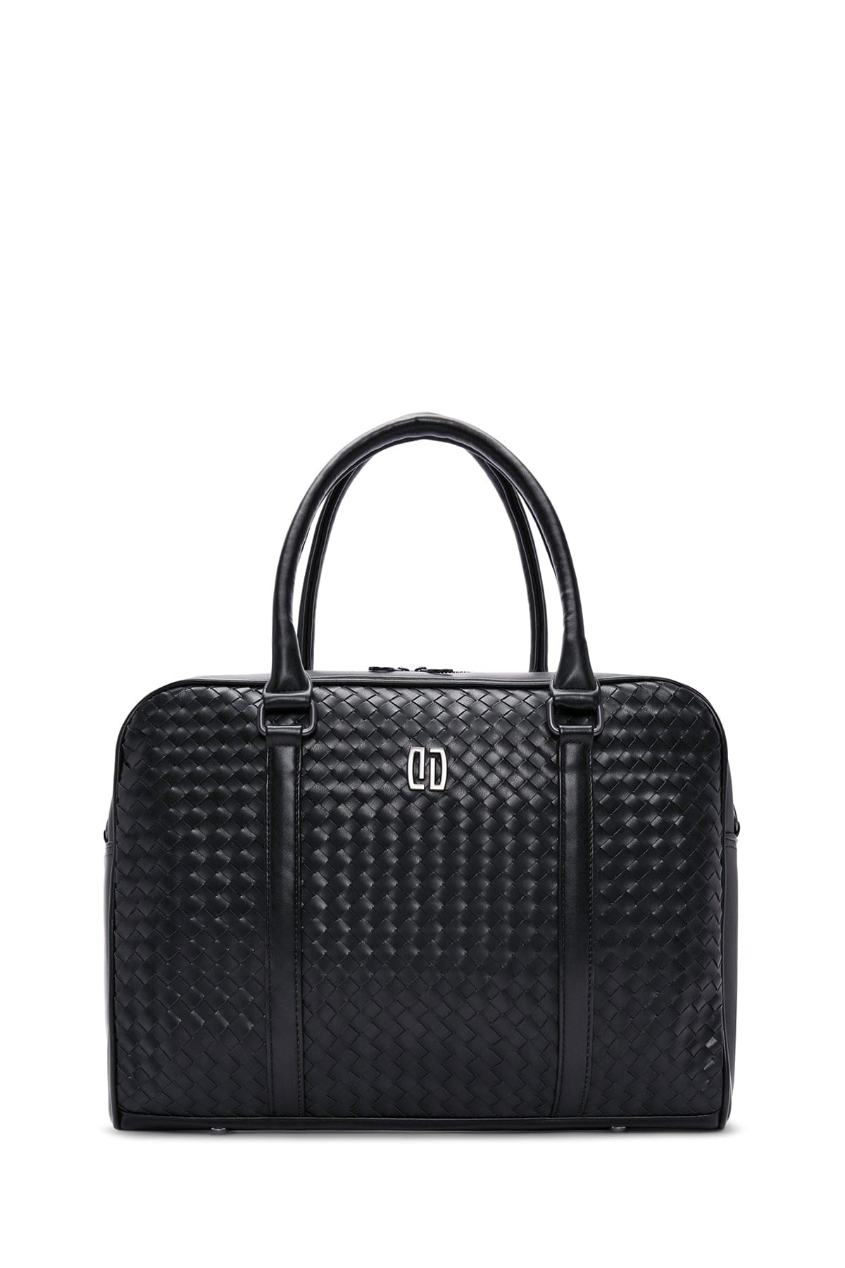 کیف اداری مردانه مشکی با طرح بافت دری مد