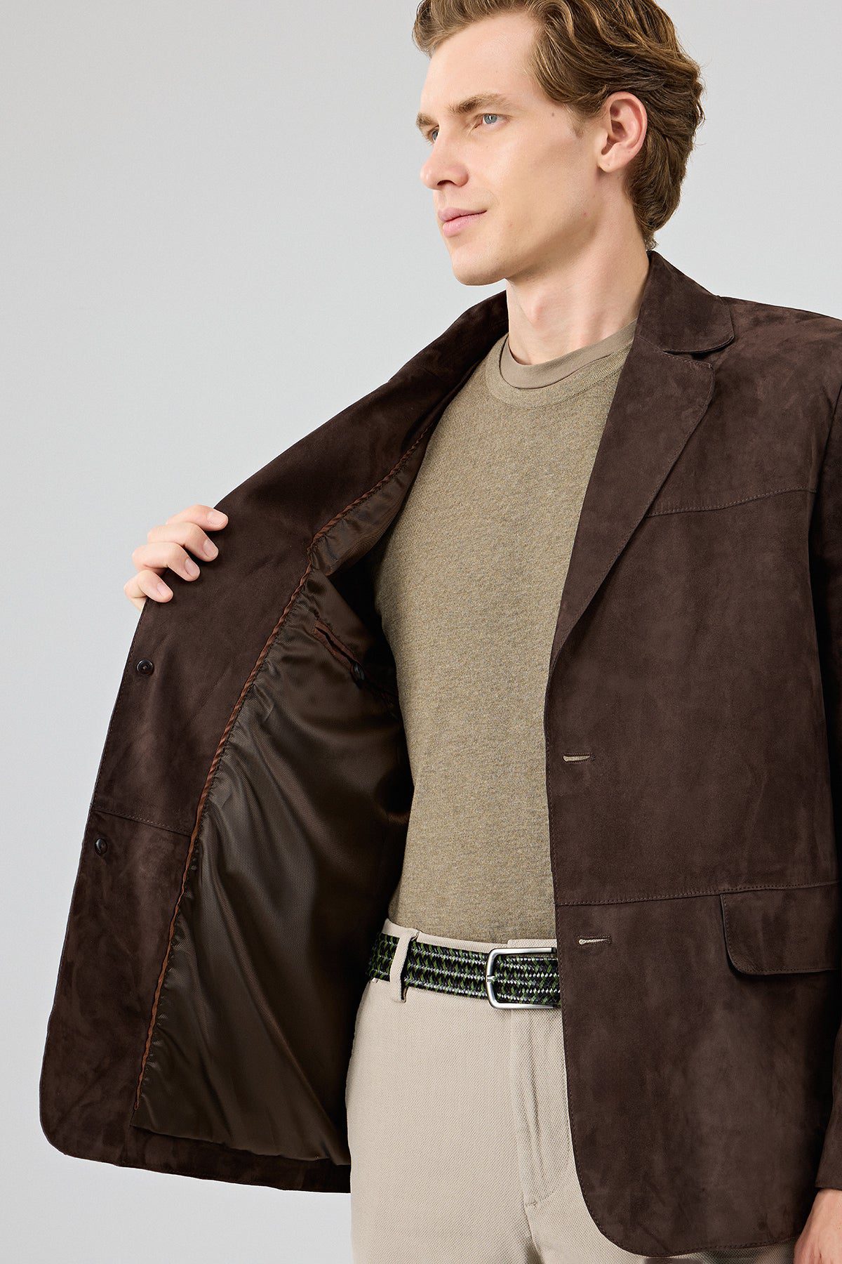 Rodrygo Erkek Kahverengi Blazer Süet Deri Ceket