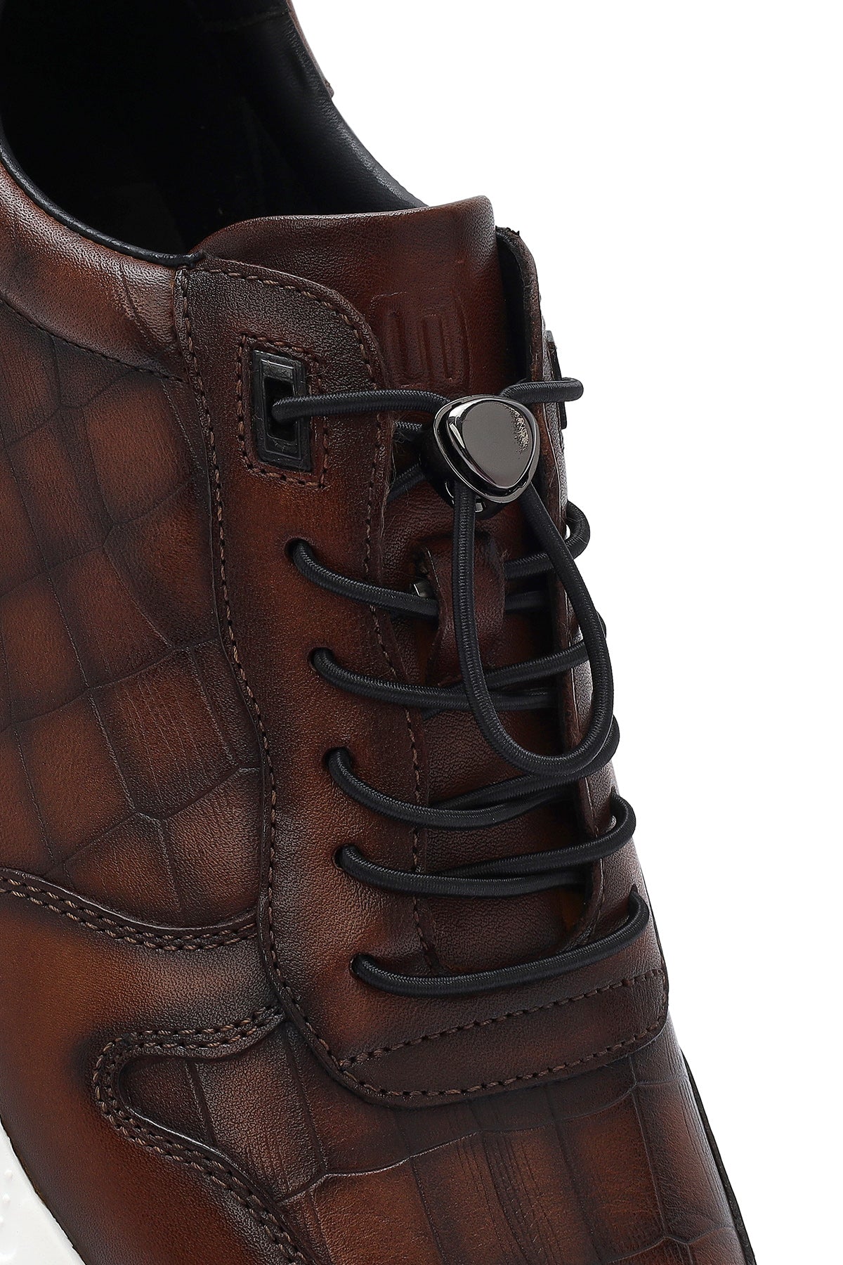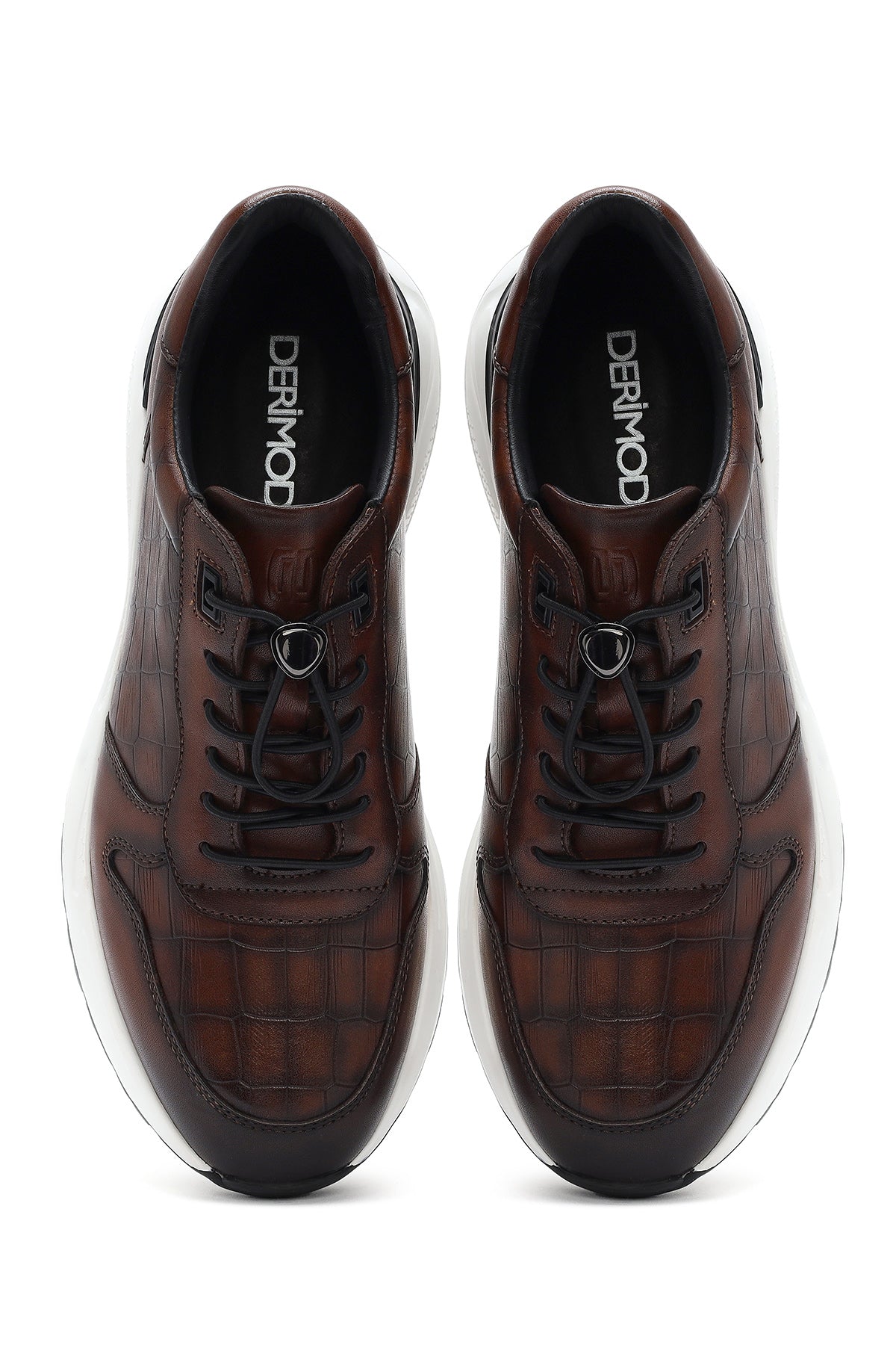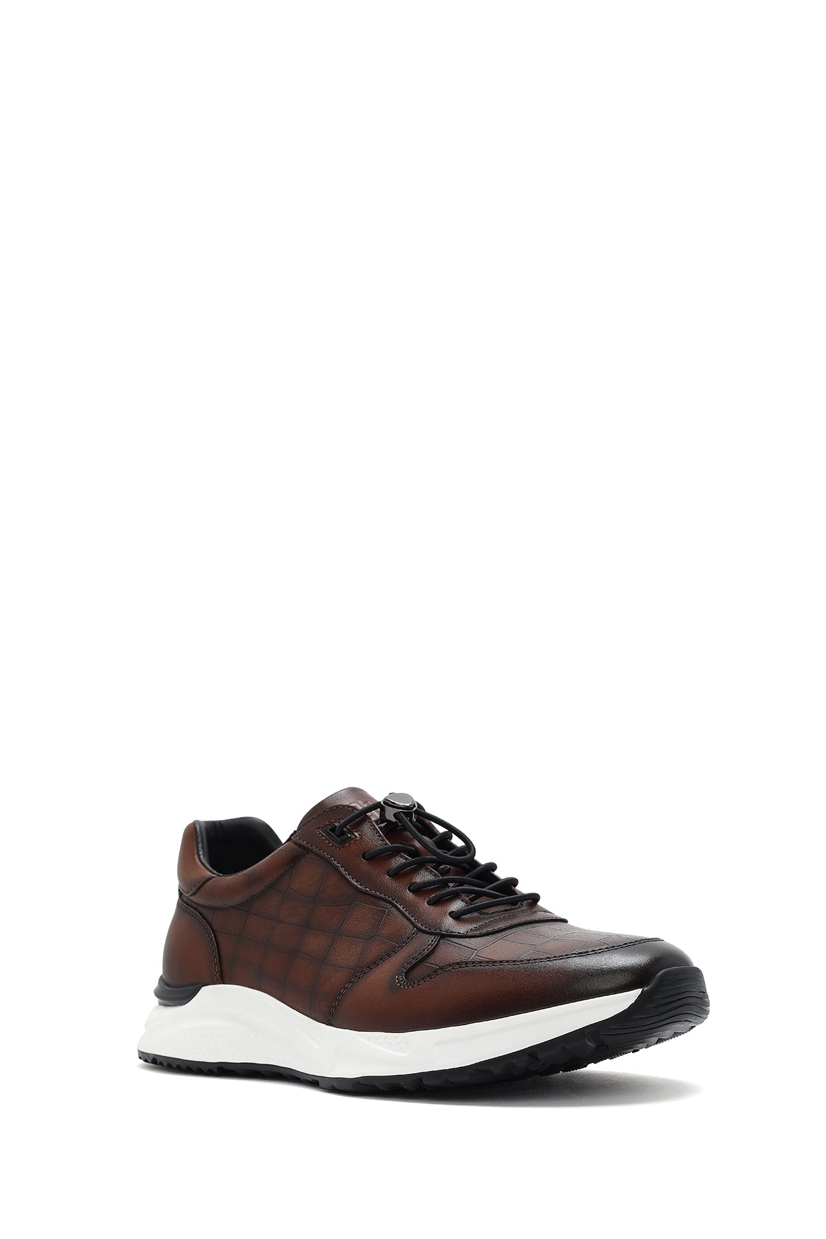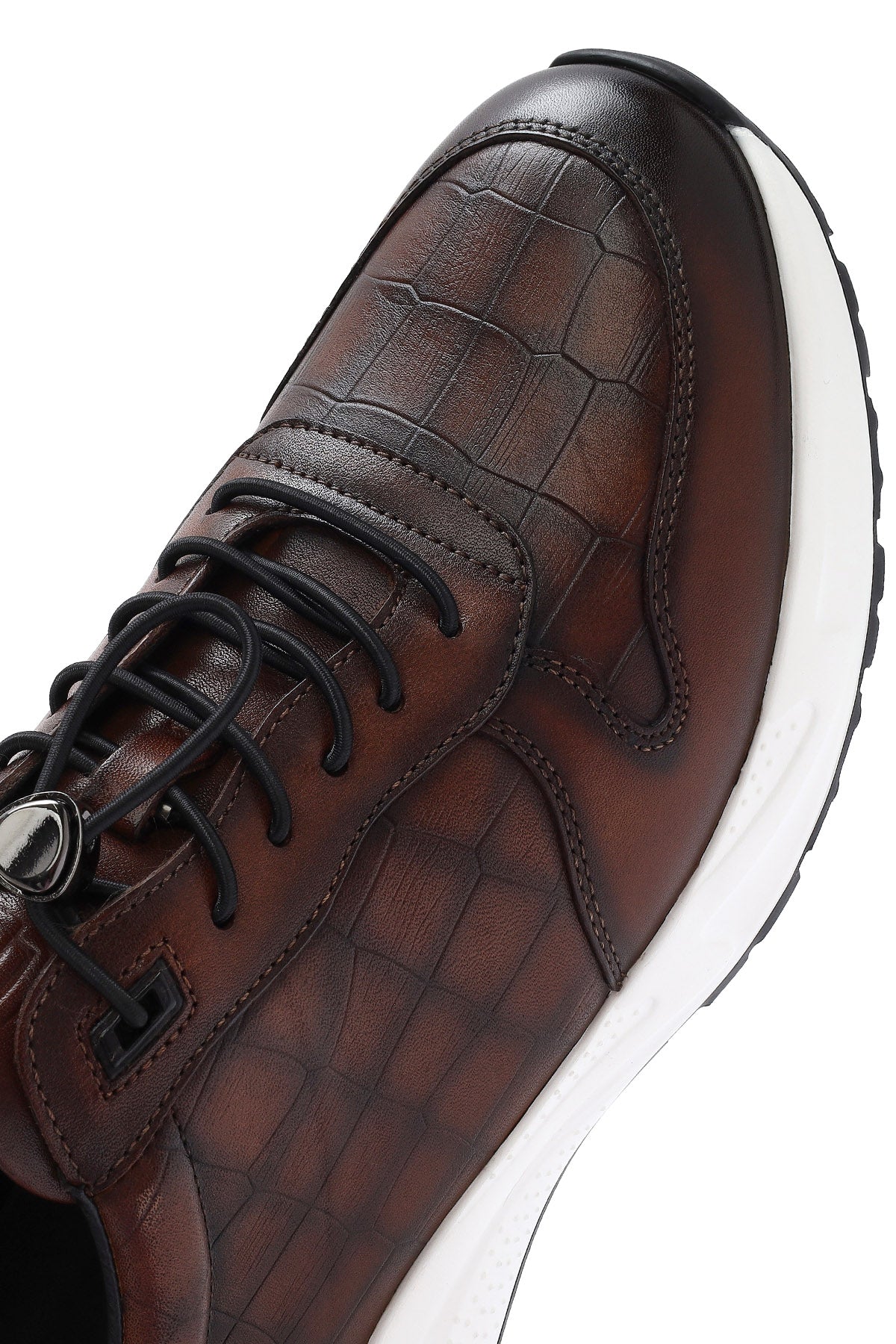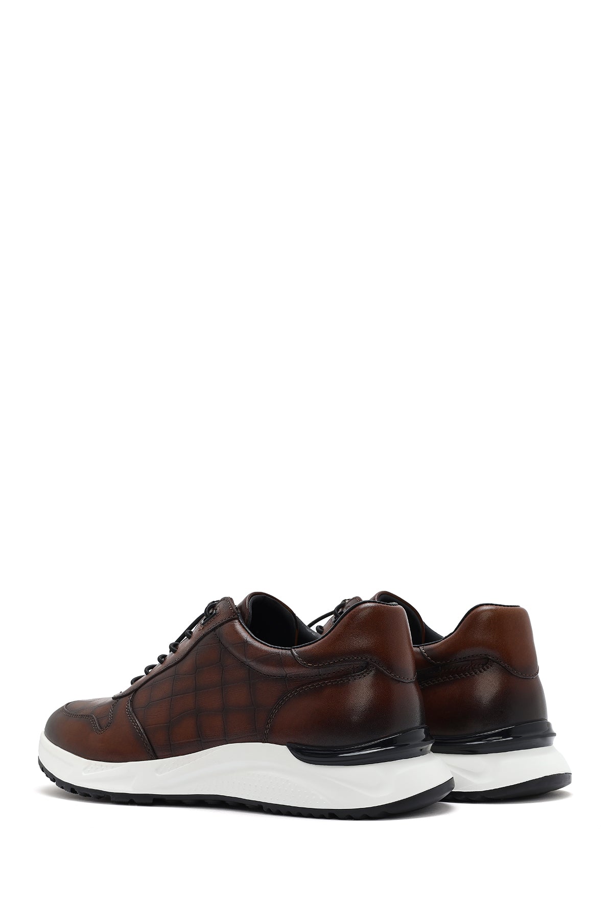 Erkek Kahverengi Kroko Desenli Bağcıklı Deri Sneaker