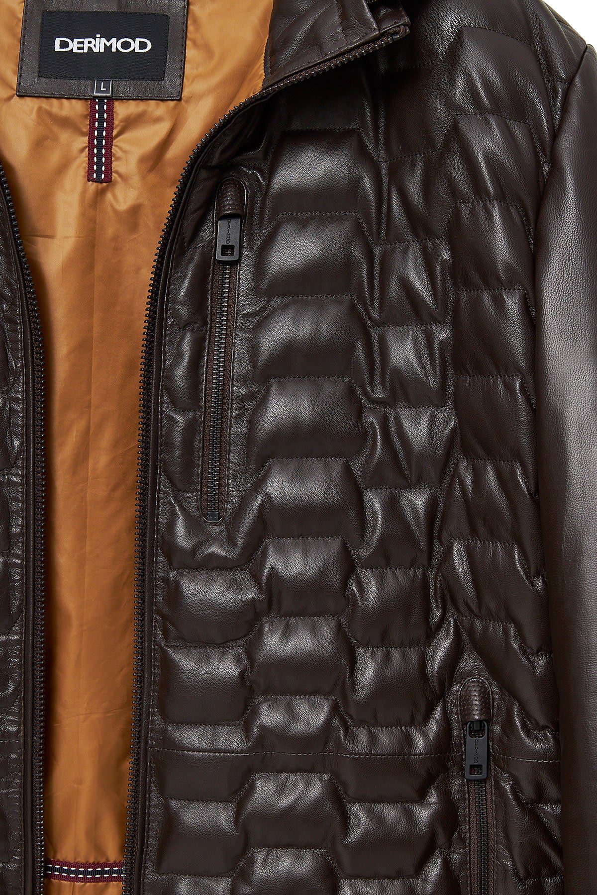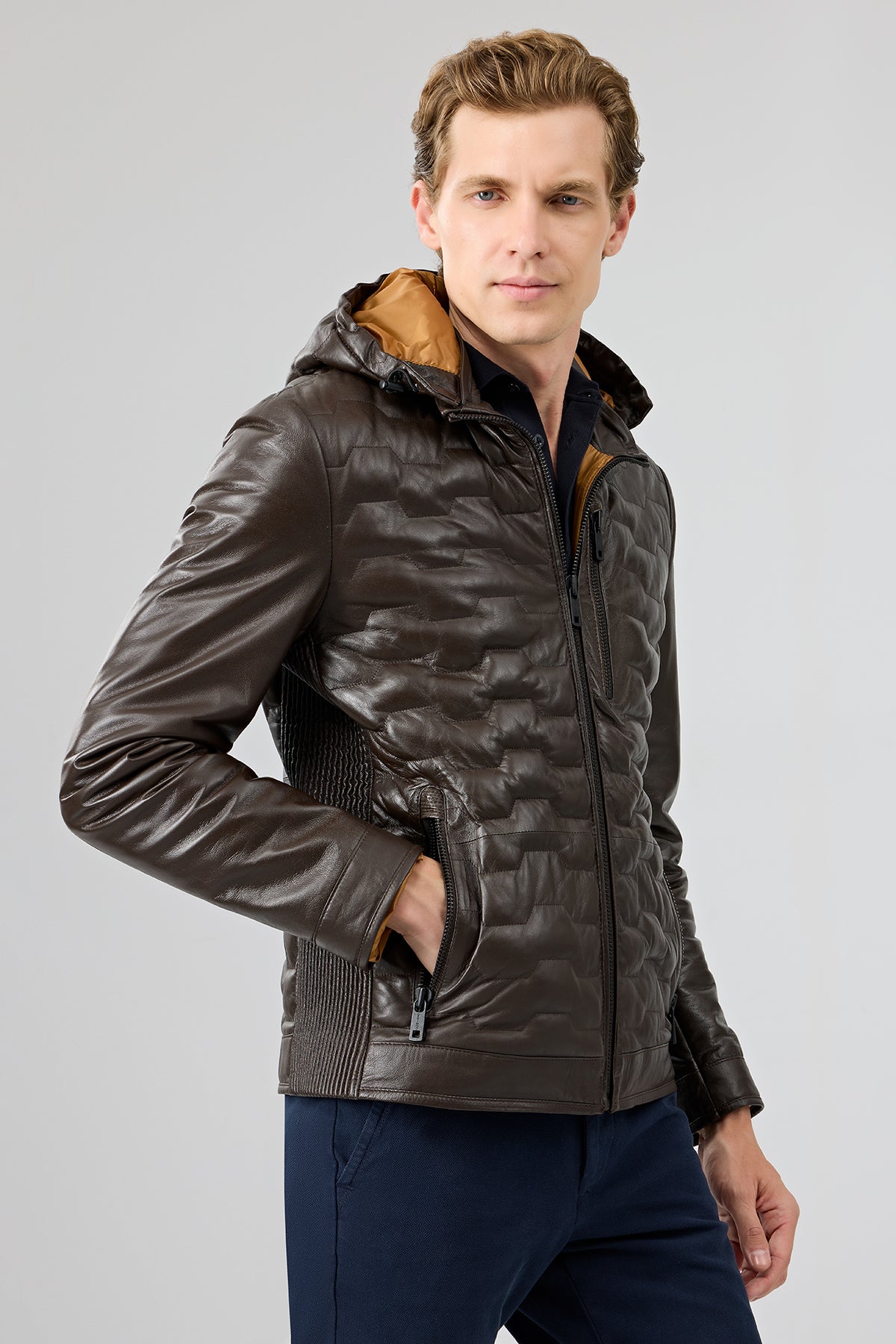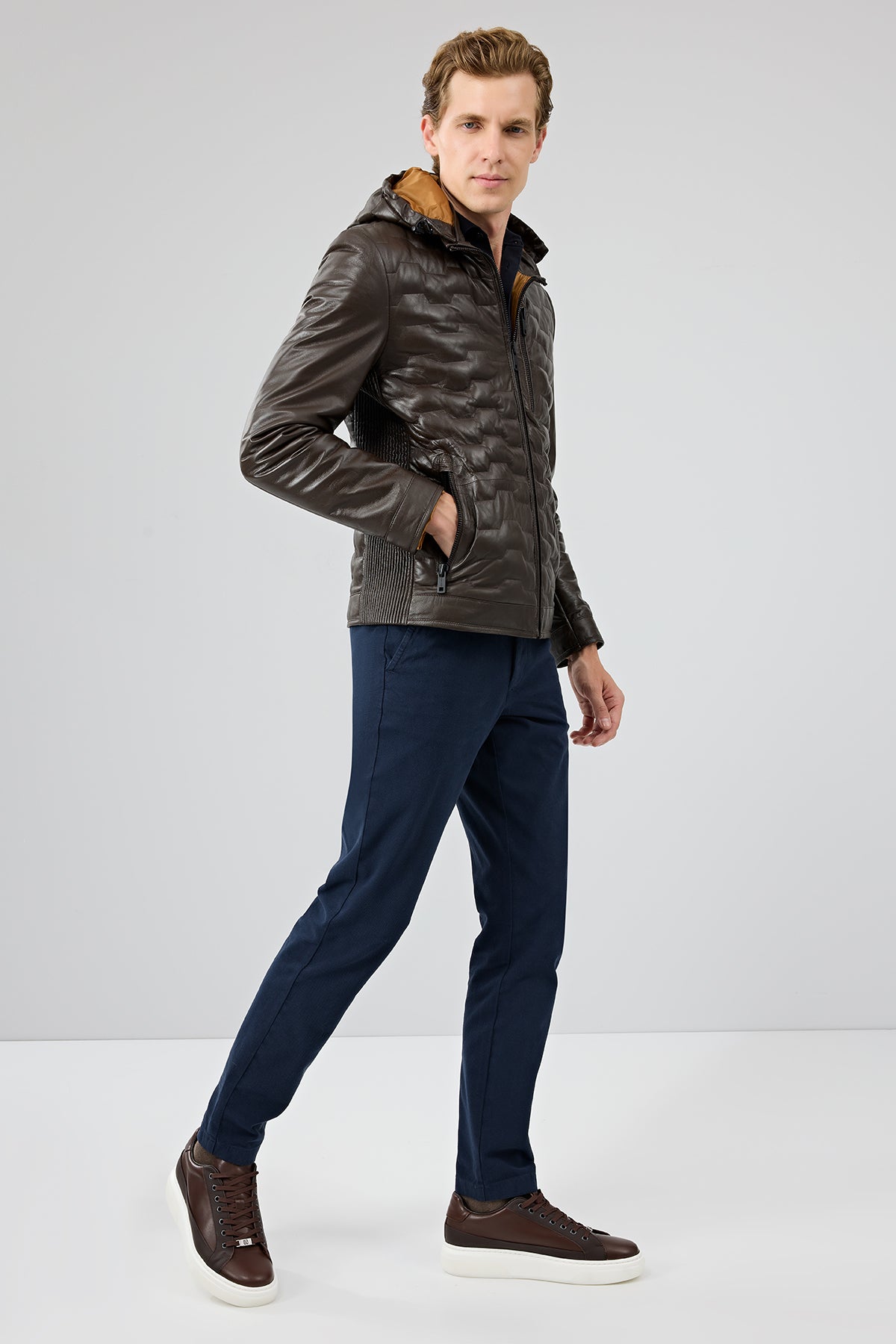 کاپشن چرمی مردانه قهوهای کلاهدار Silva دری مد