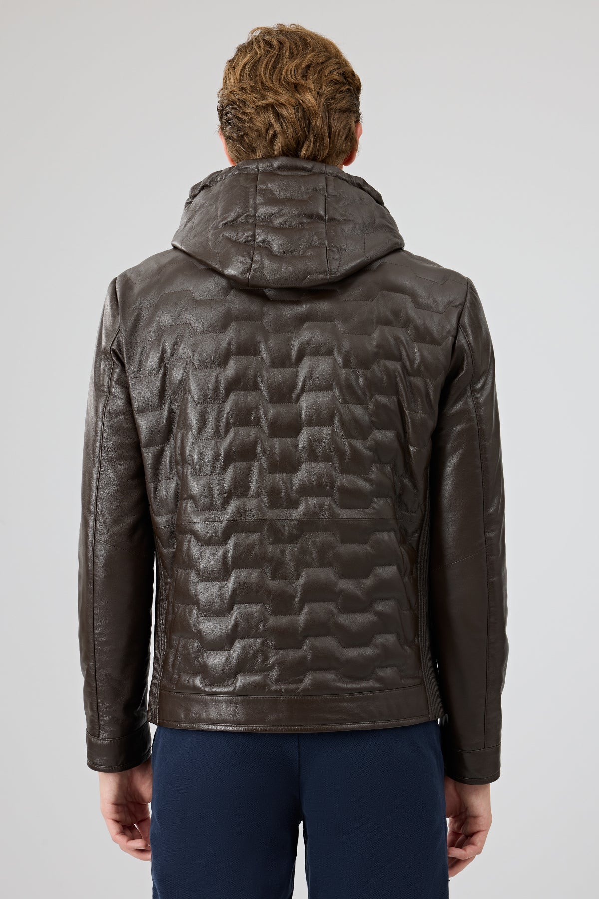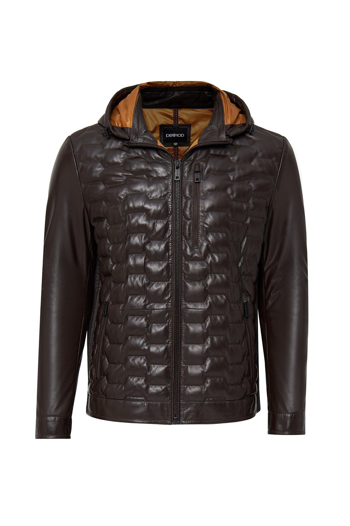 Silva Erkek Kahverengi Kapüşonlu Deri Mont