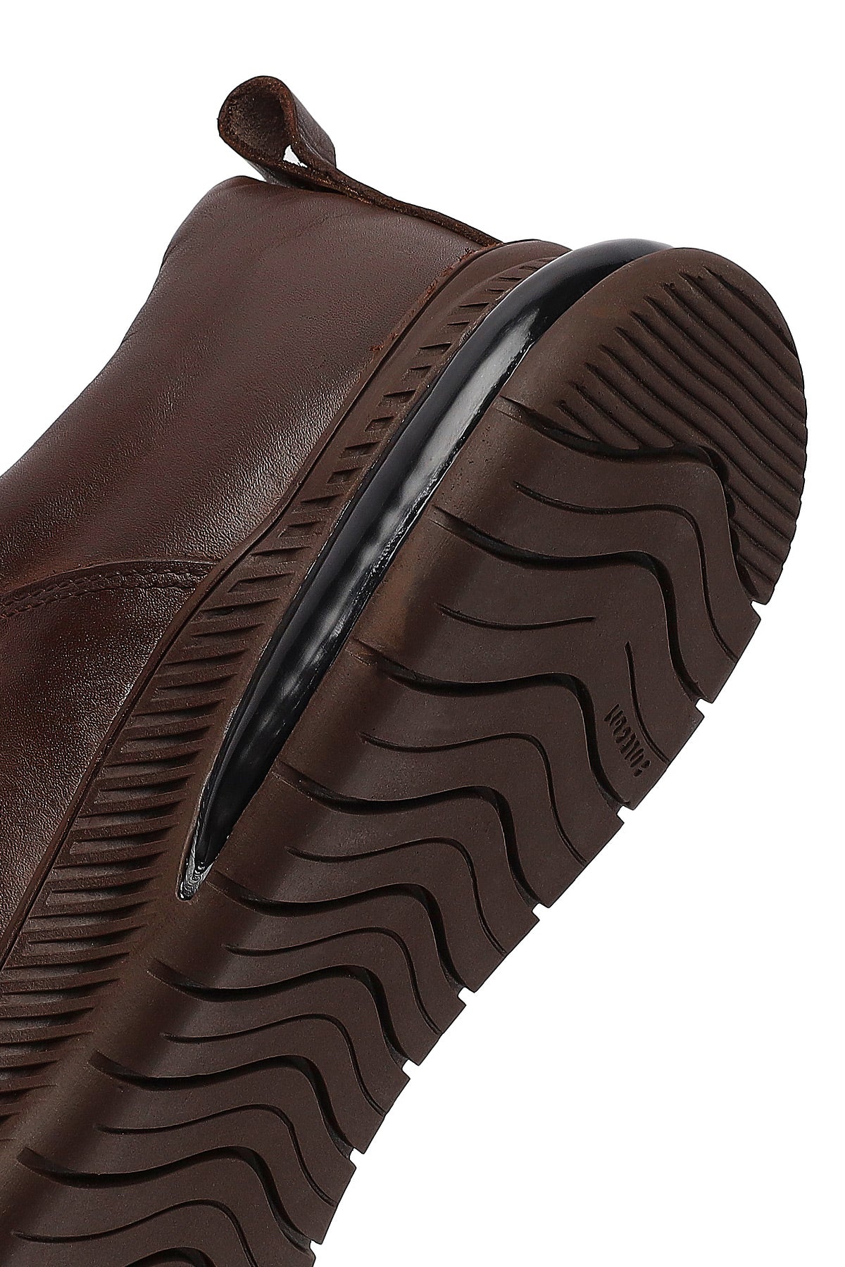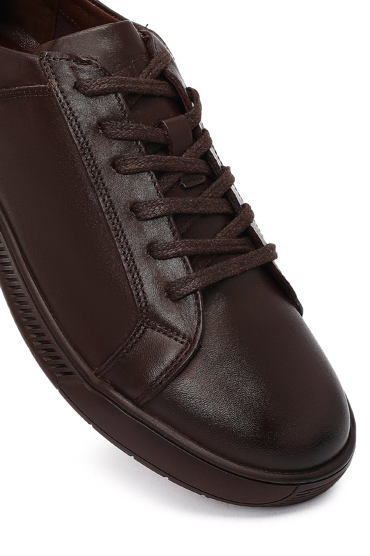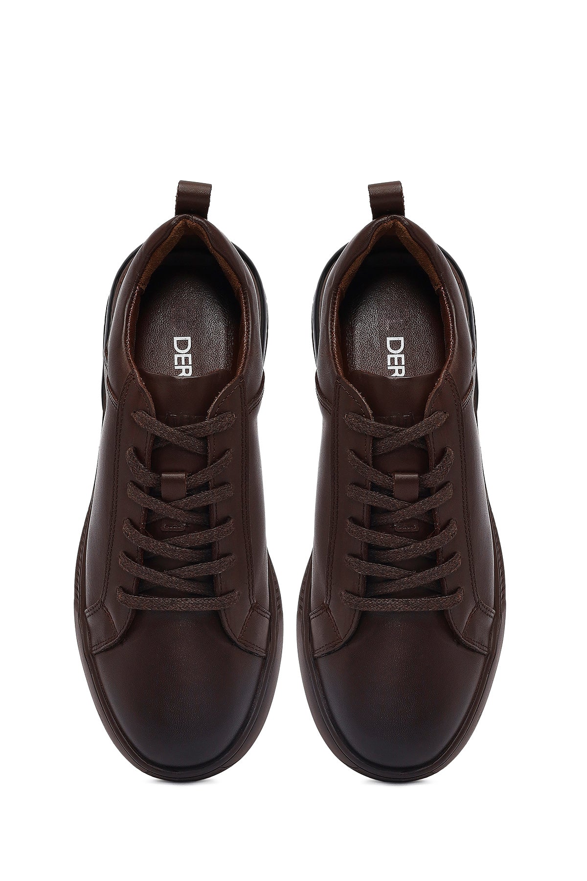 Erkek Kahverengi Bağcıklı Deri Casual Sneaker