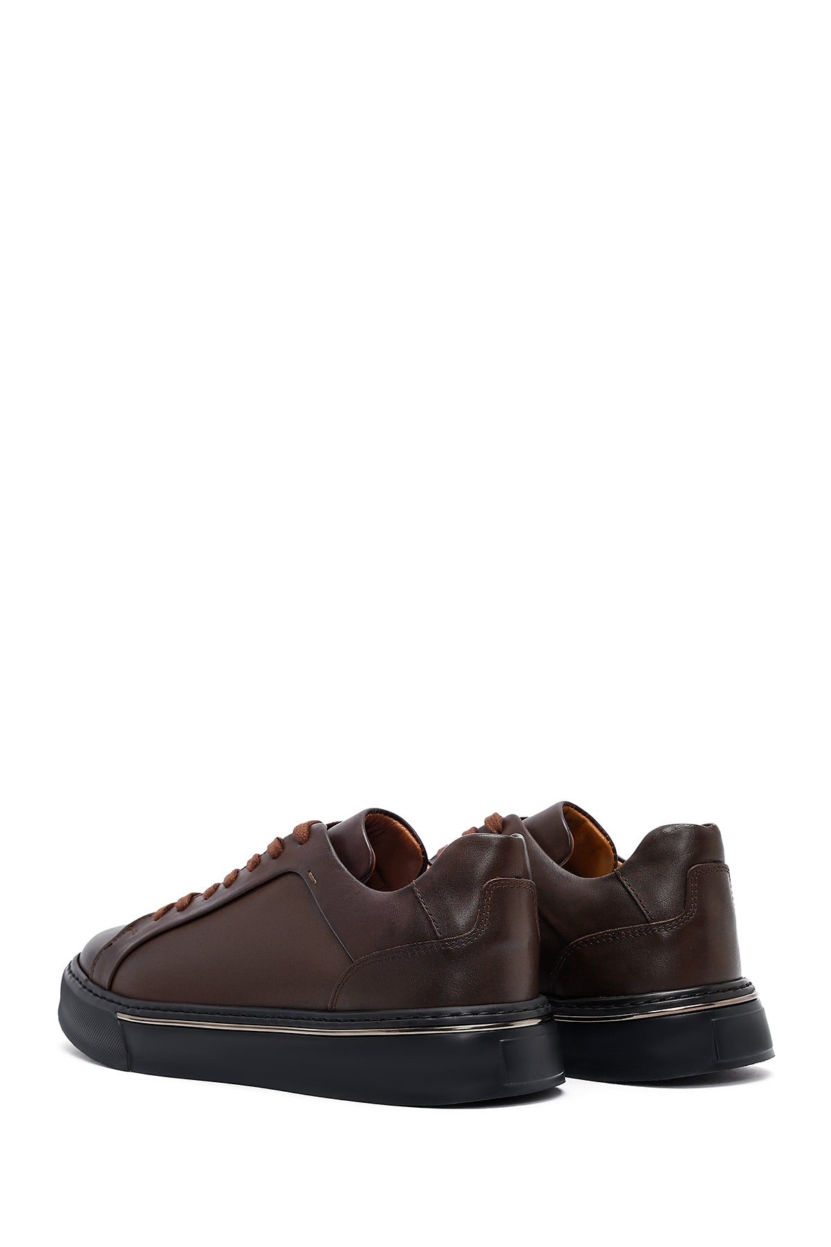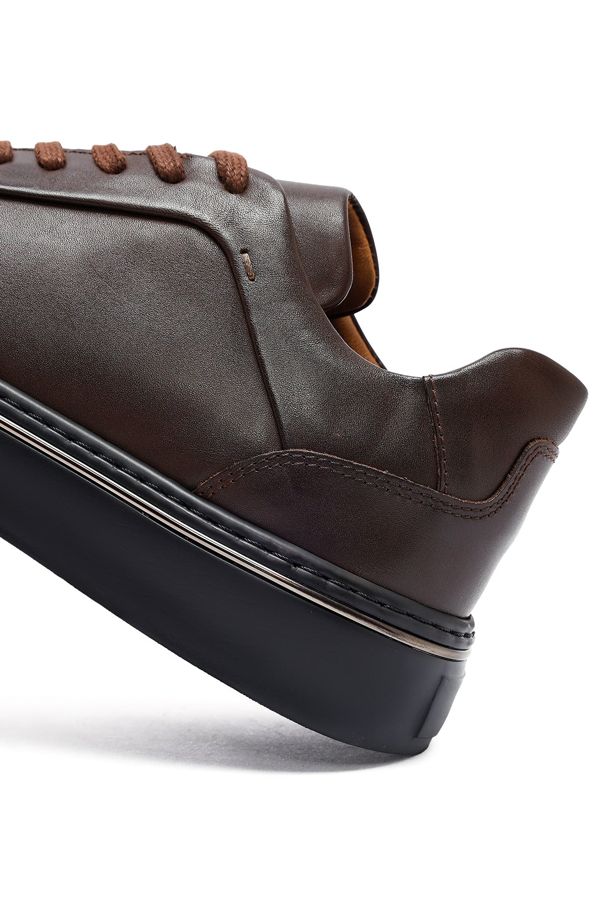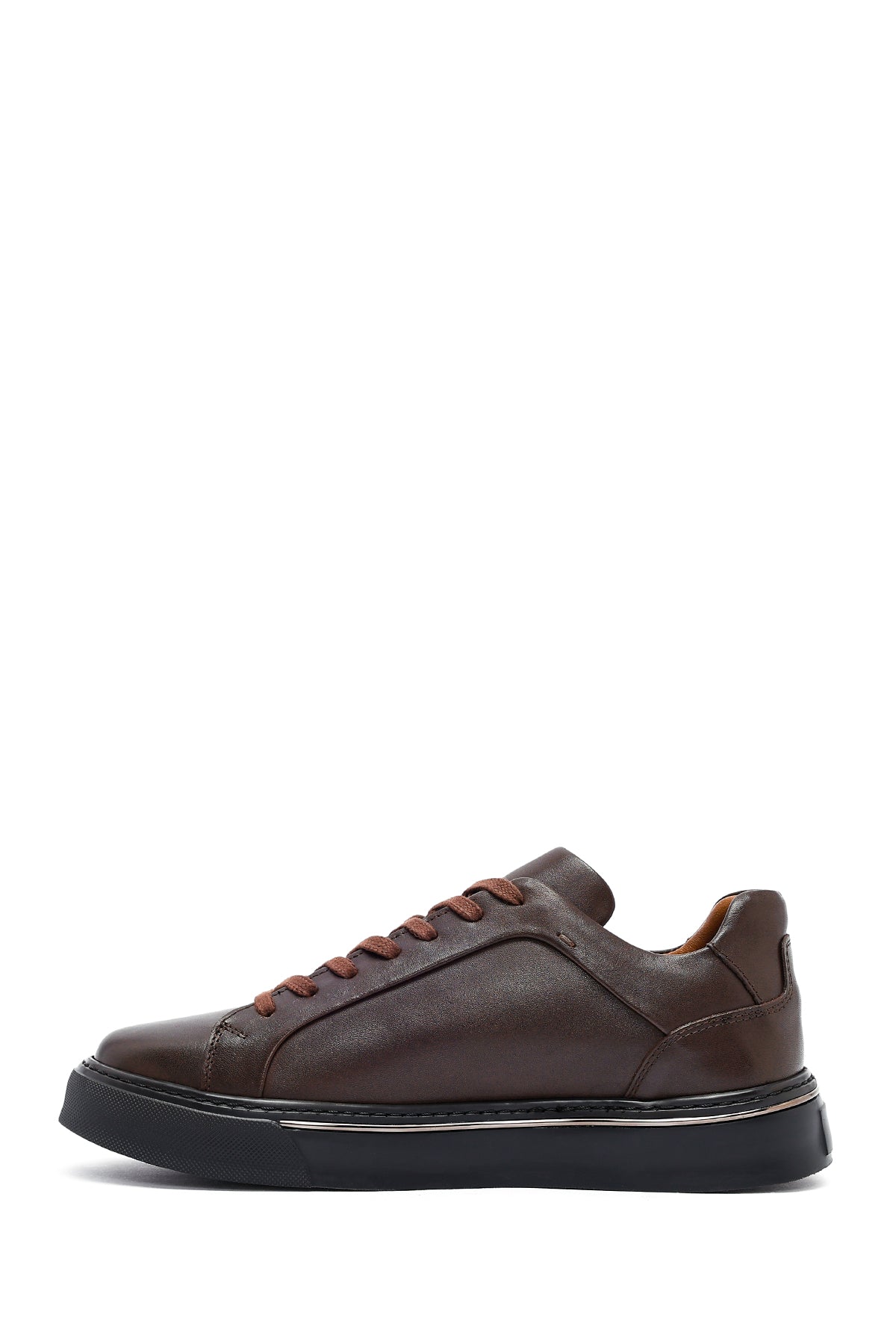 Erkek Kahverengi Bağcıklı Kalın Tabanlı Deri Sneaker