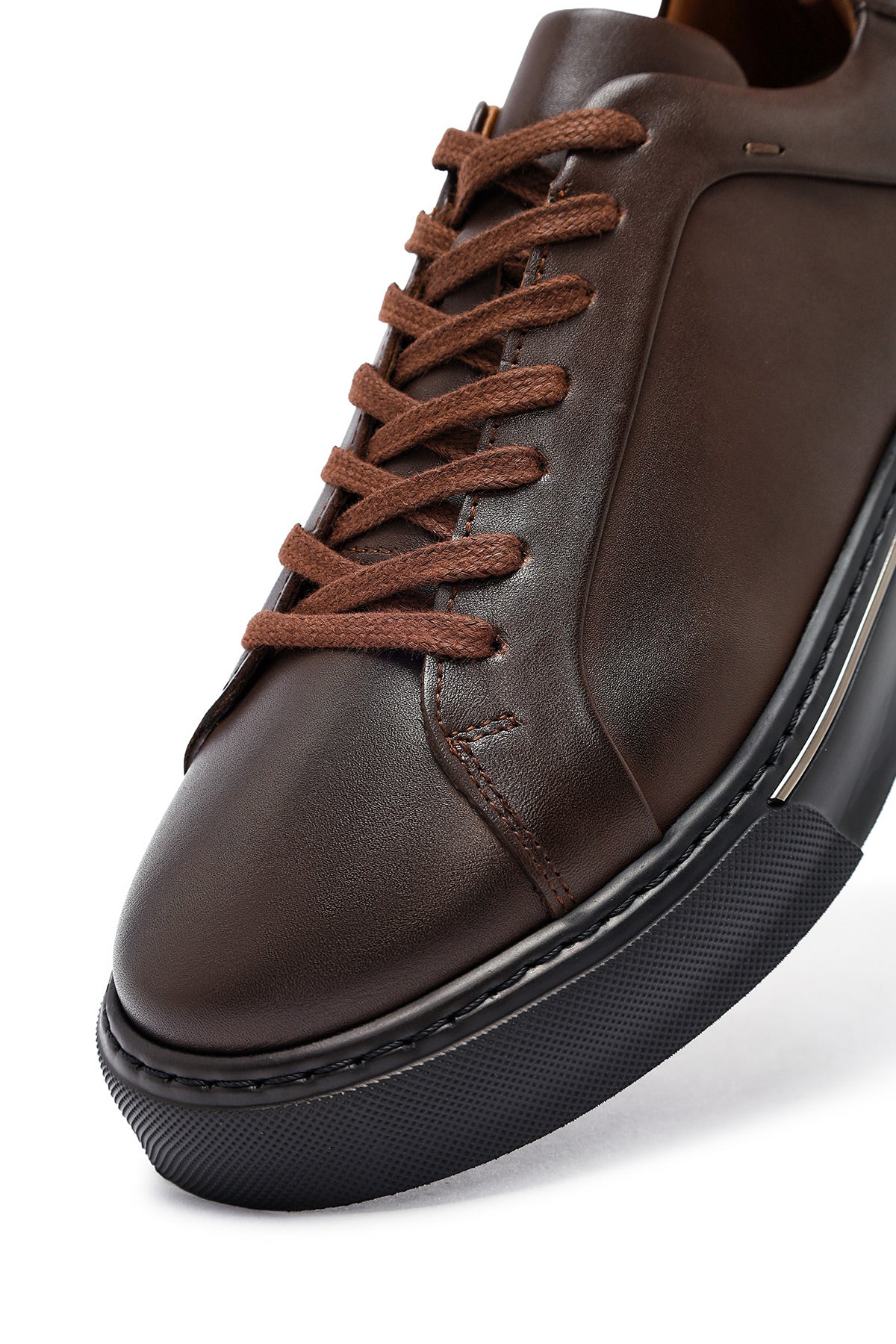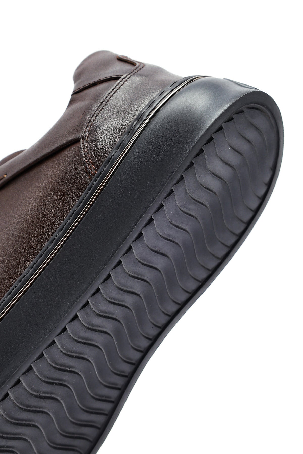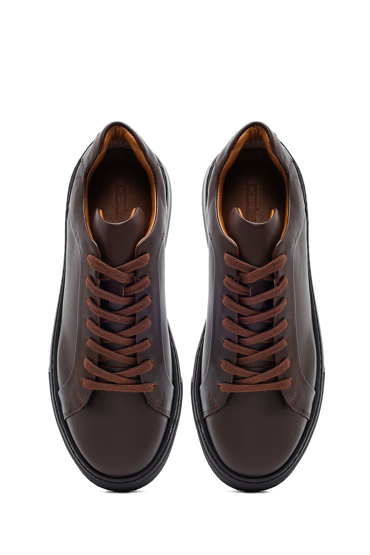 Erkek Kahverengi Bağcıklı Kalın Tabanlı Deri Sneaker