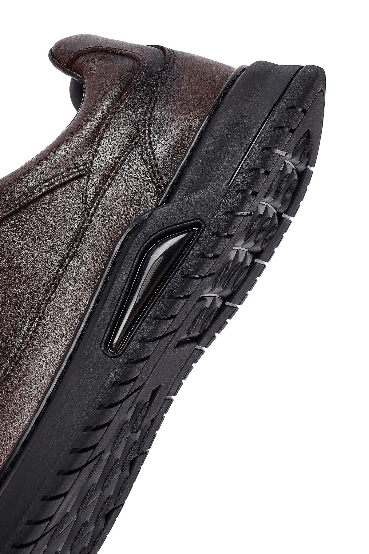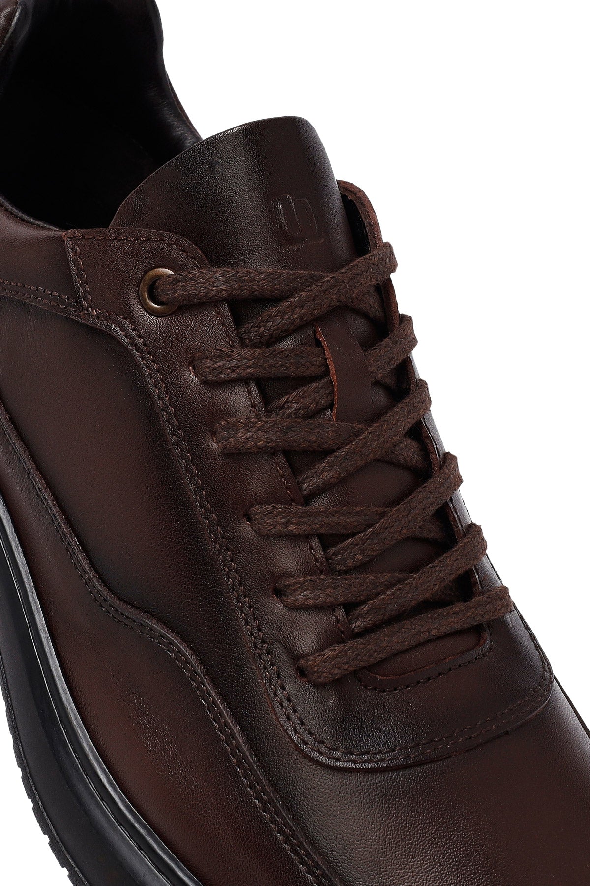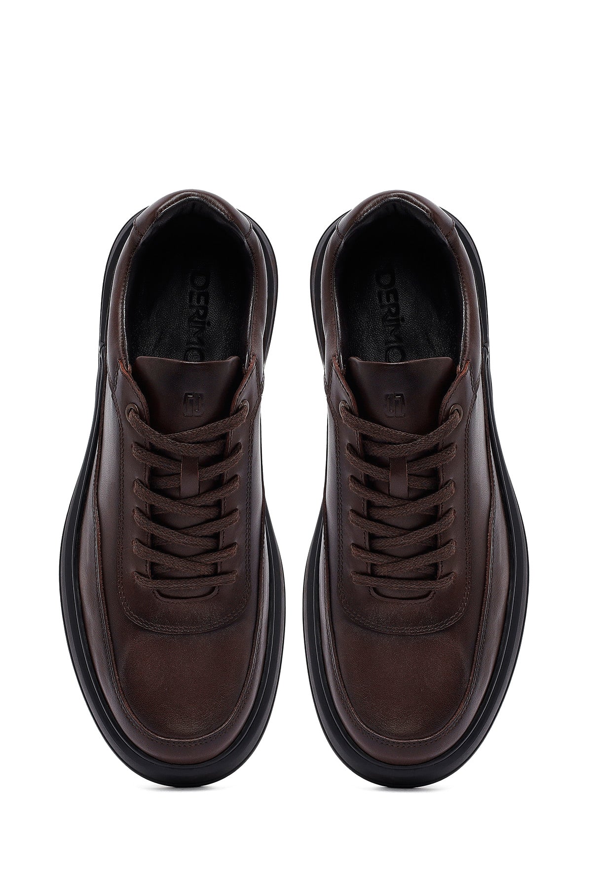 Erkek Kahverengi Bağcıklı Deri Casual Sneaker