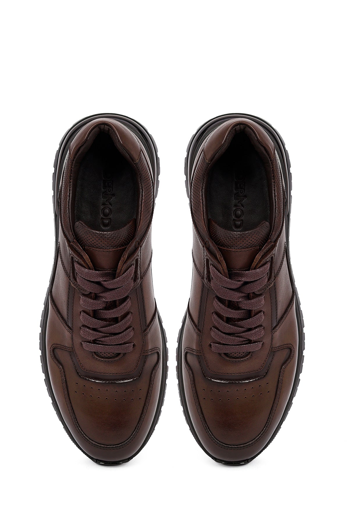 Erkek Kahverengi Bağcıklı Deri Casual Sneaker