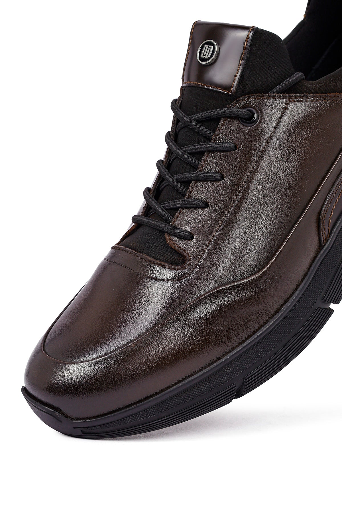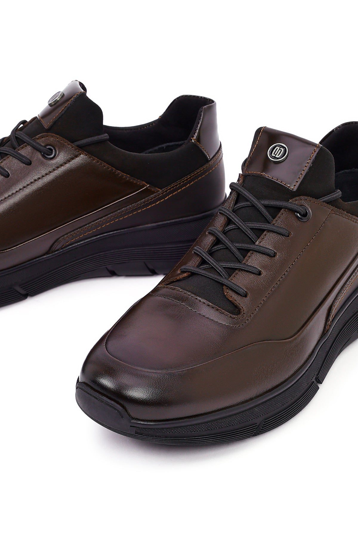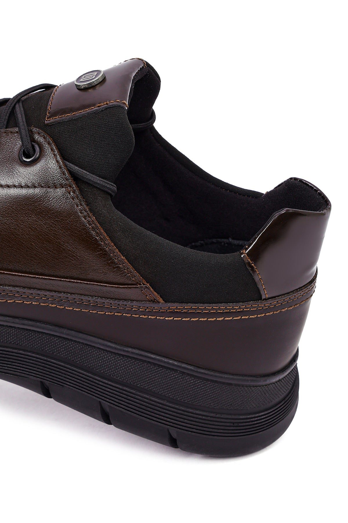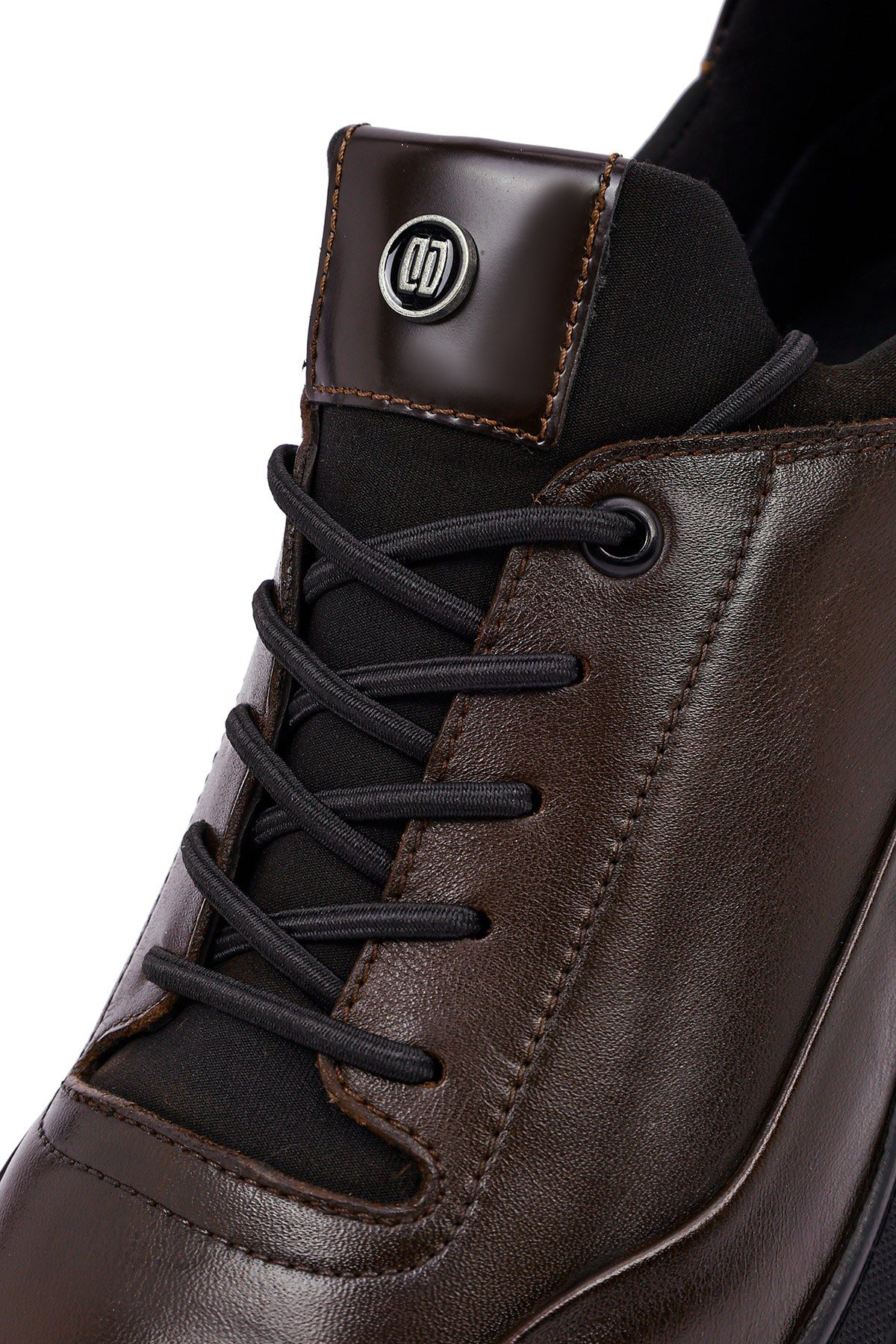 Erkek Kahverengi Bağcıklı Deri Casual Sneaker