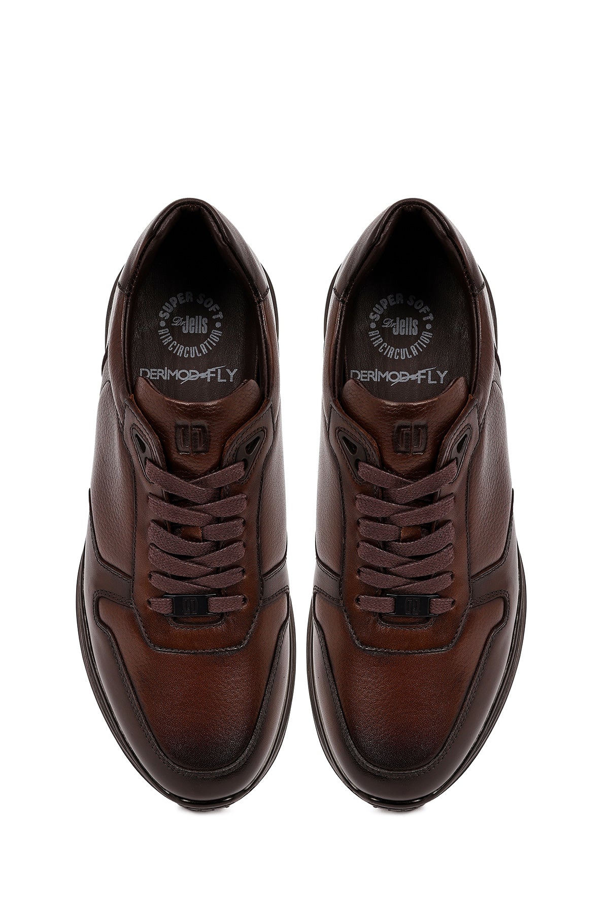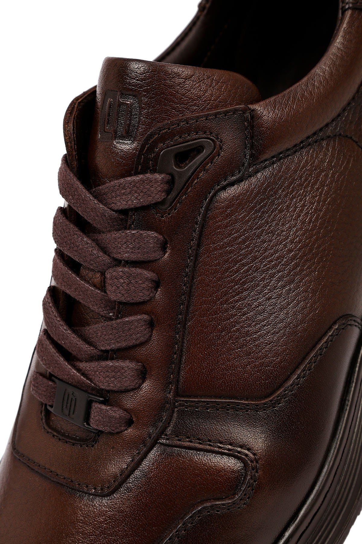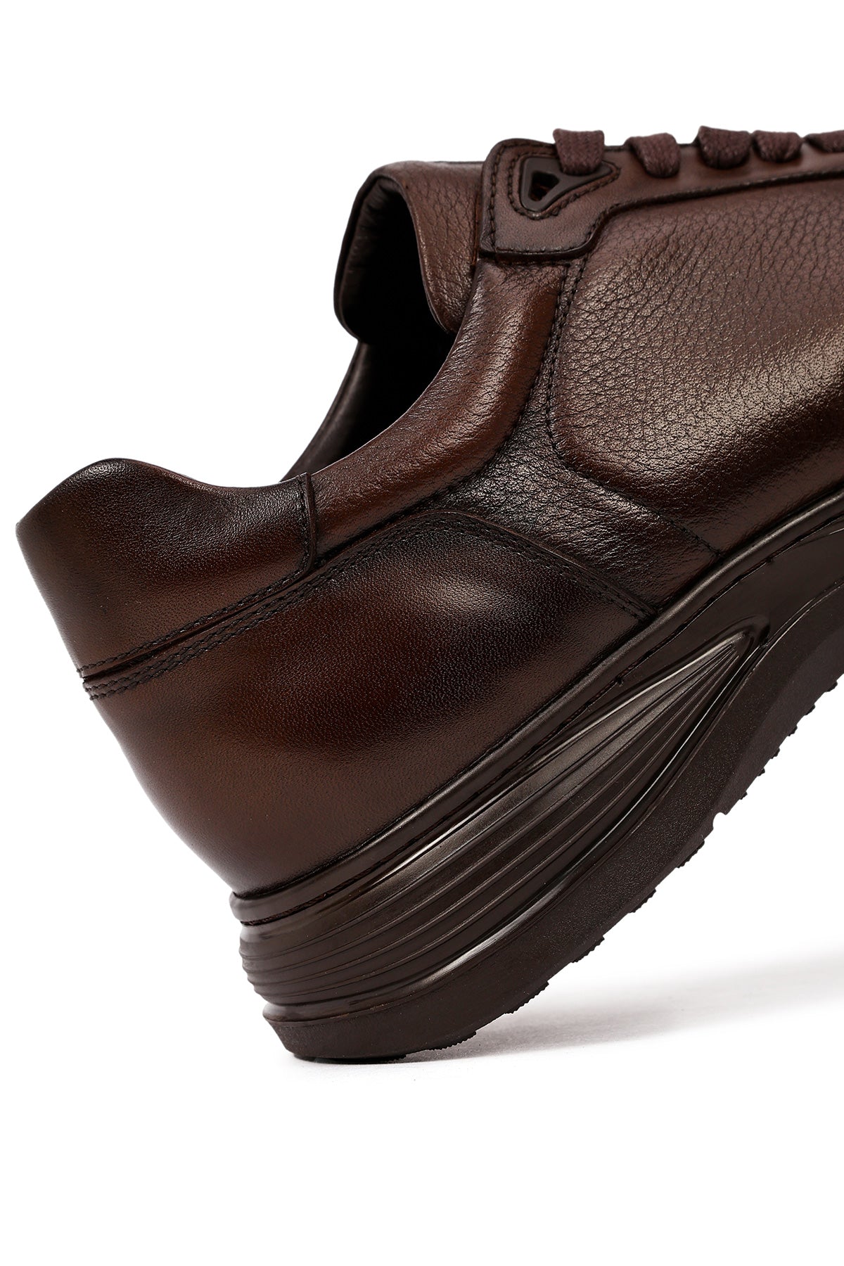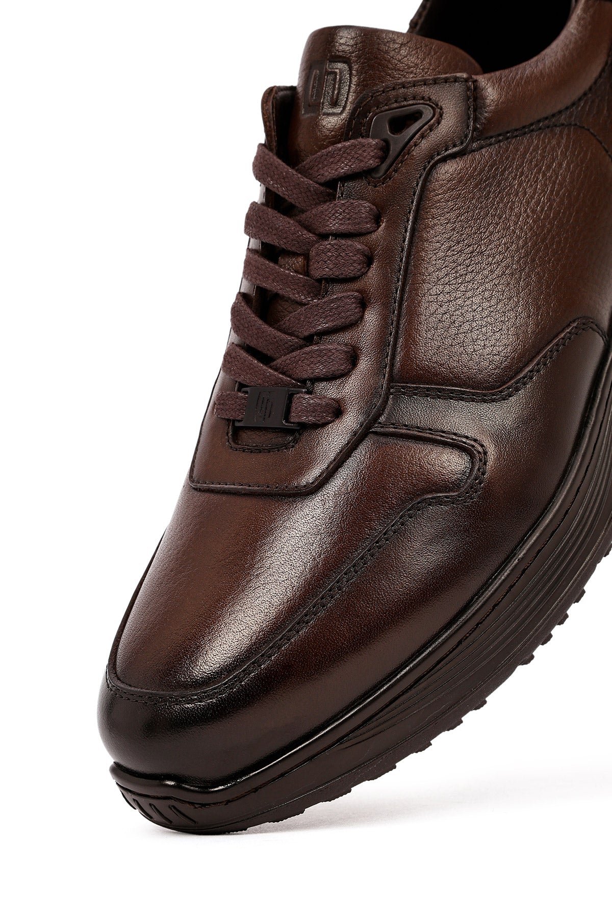 Erkek Kahverengi Bağcıklı Deri Casual Sneaker