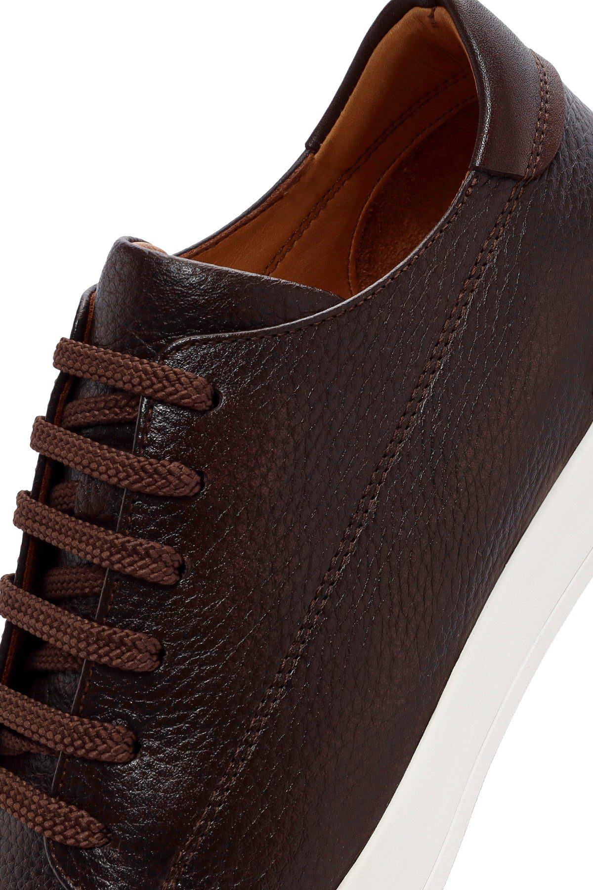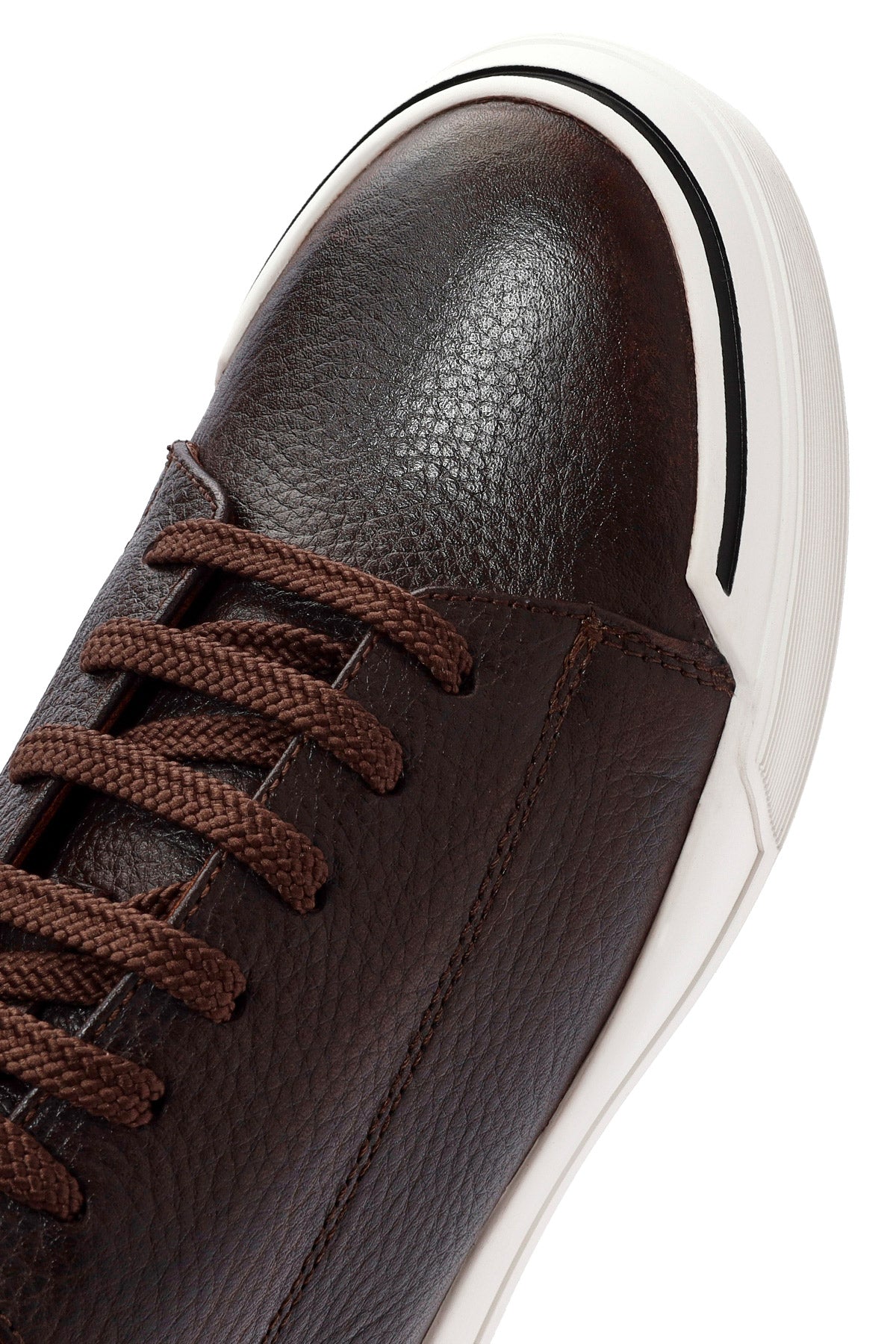 Erkek Kahverengi Bağcıklı Deri Sneaker