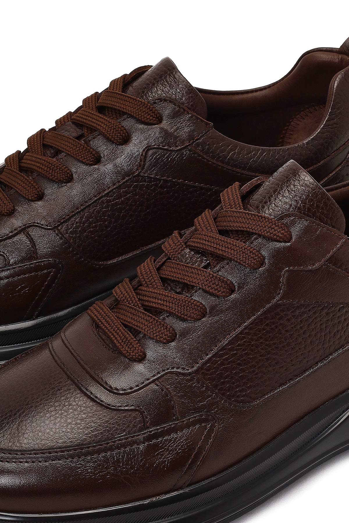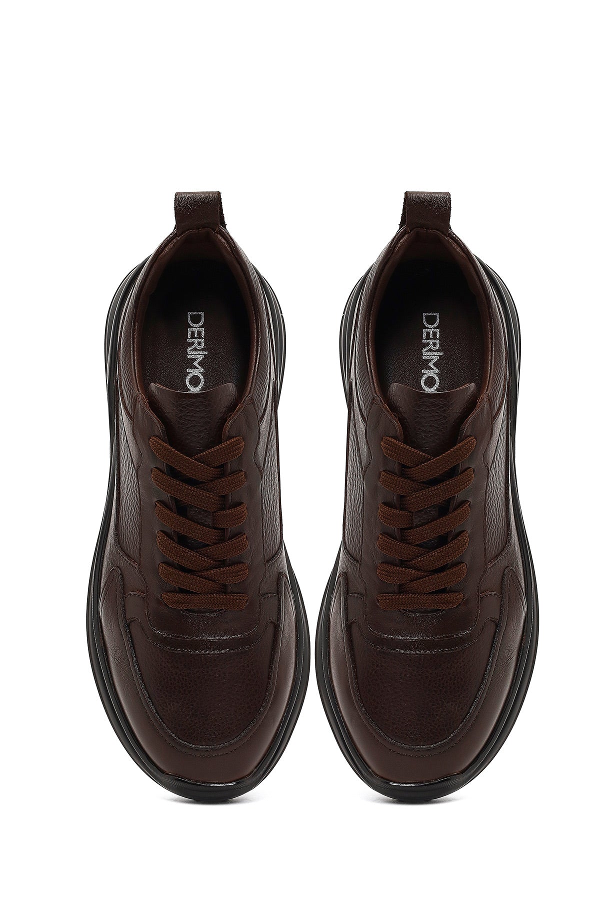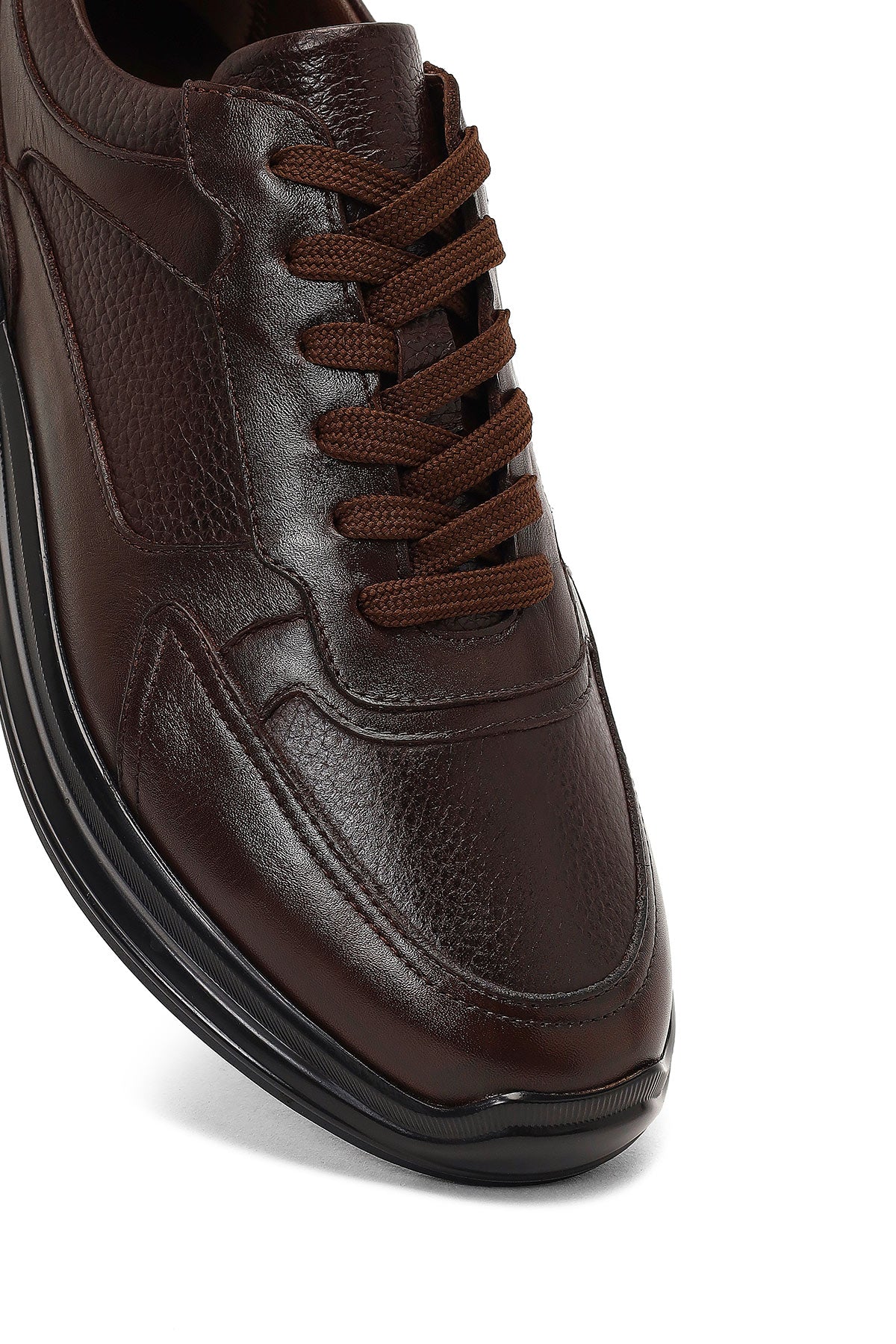 Erkek Kahverengi Bağcıklı Kalın Tabanlı Deri Casual Sneaker