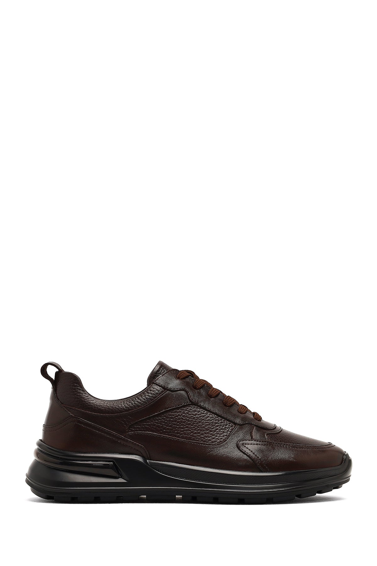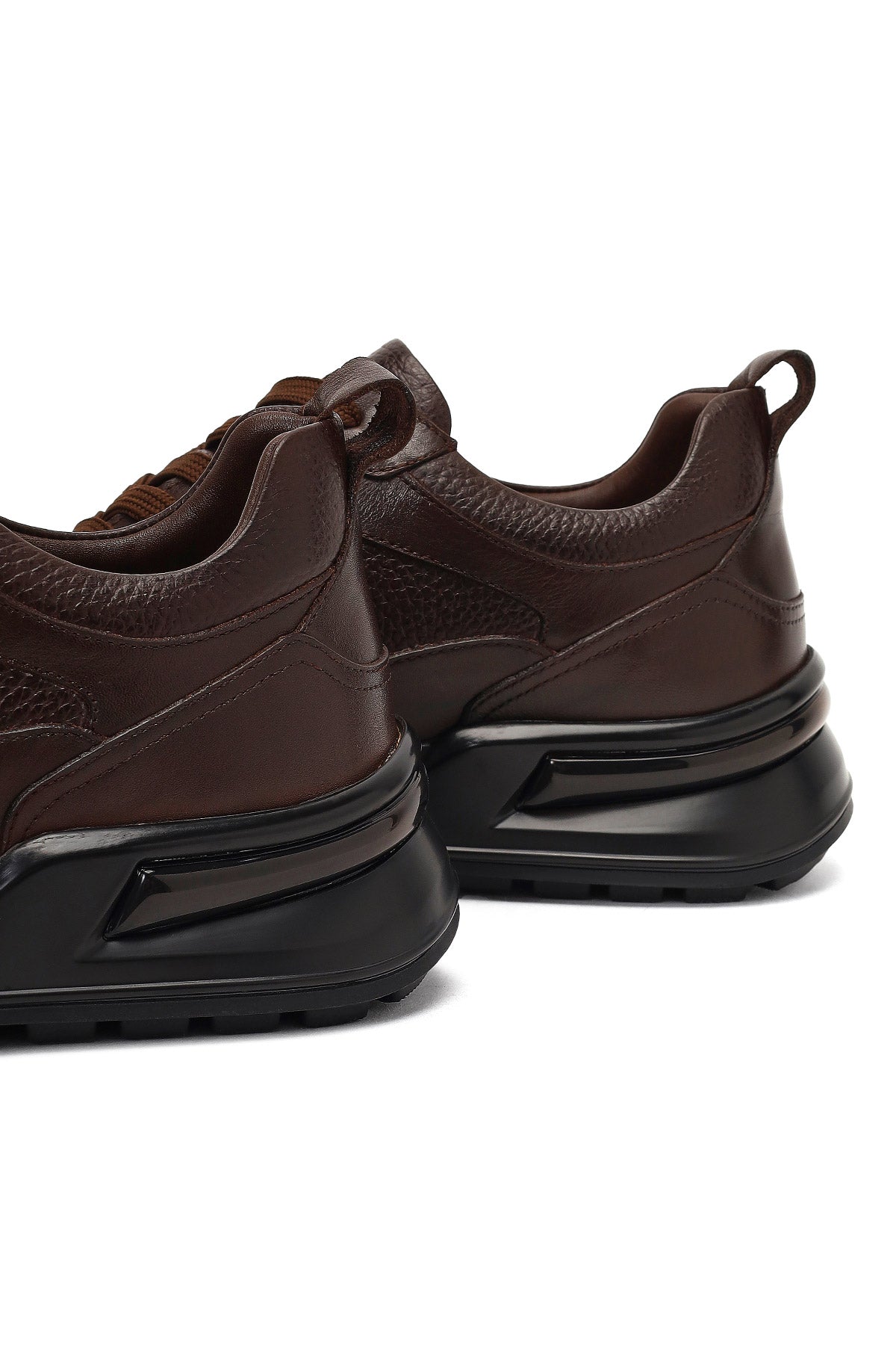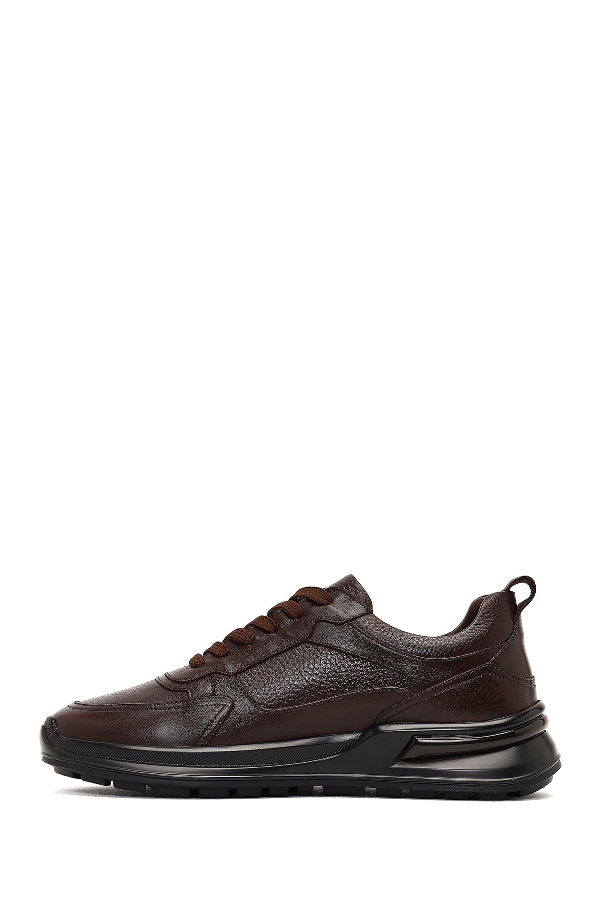 Erkek Kahverengi Bağcıklı Kalın Tabanlı Deri Casual Sneaker