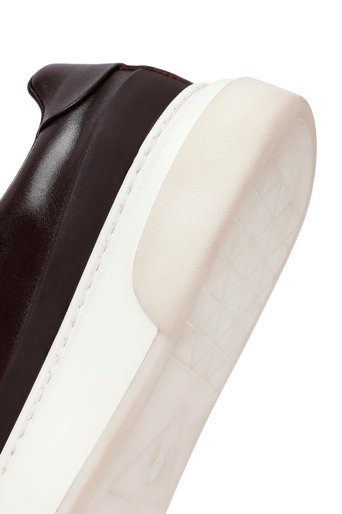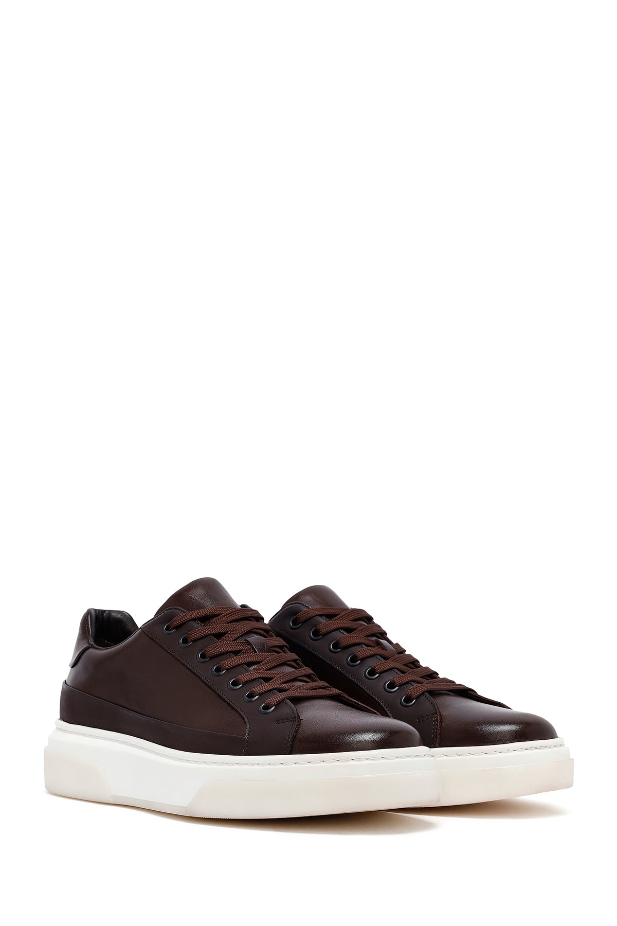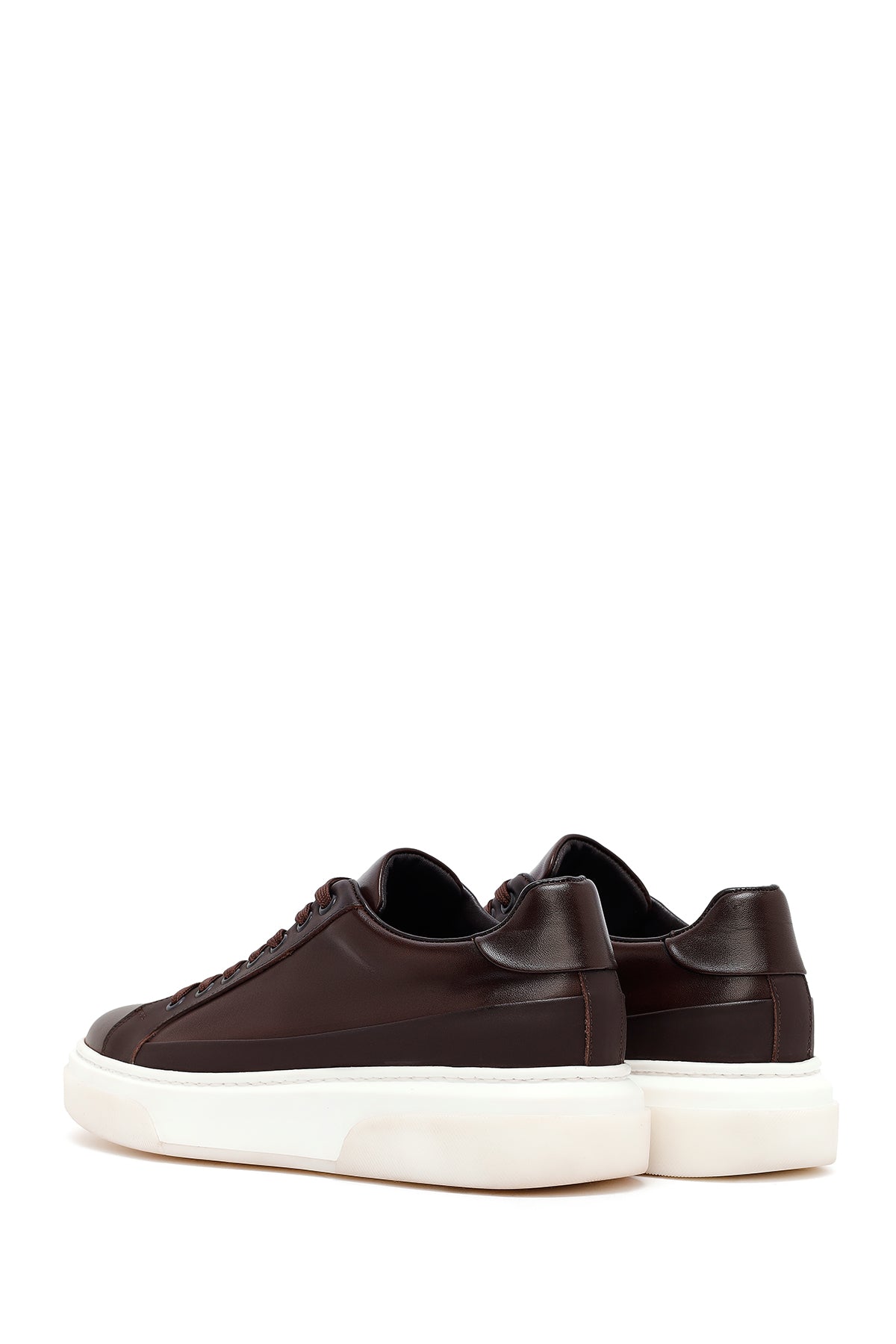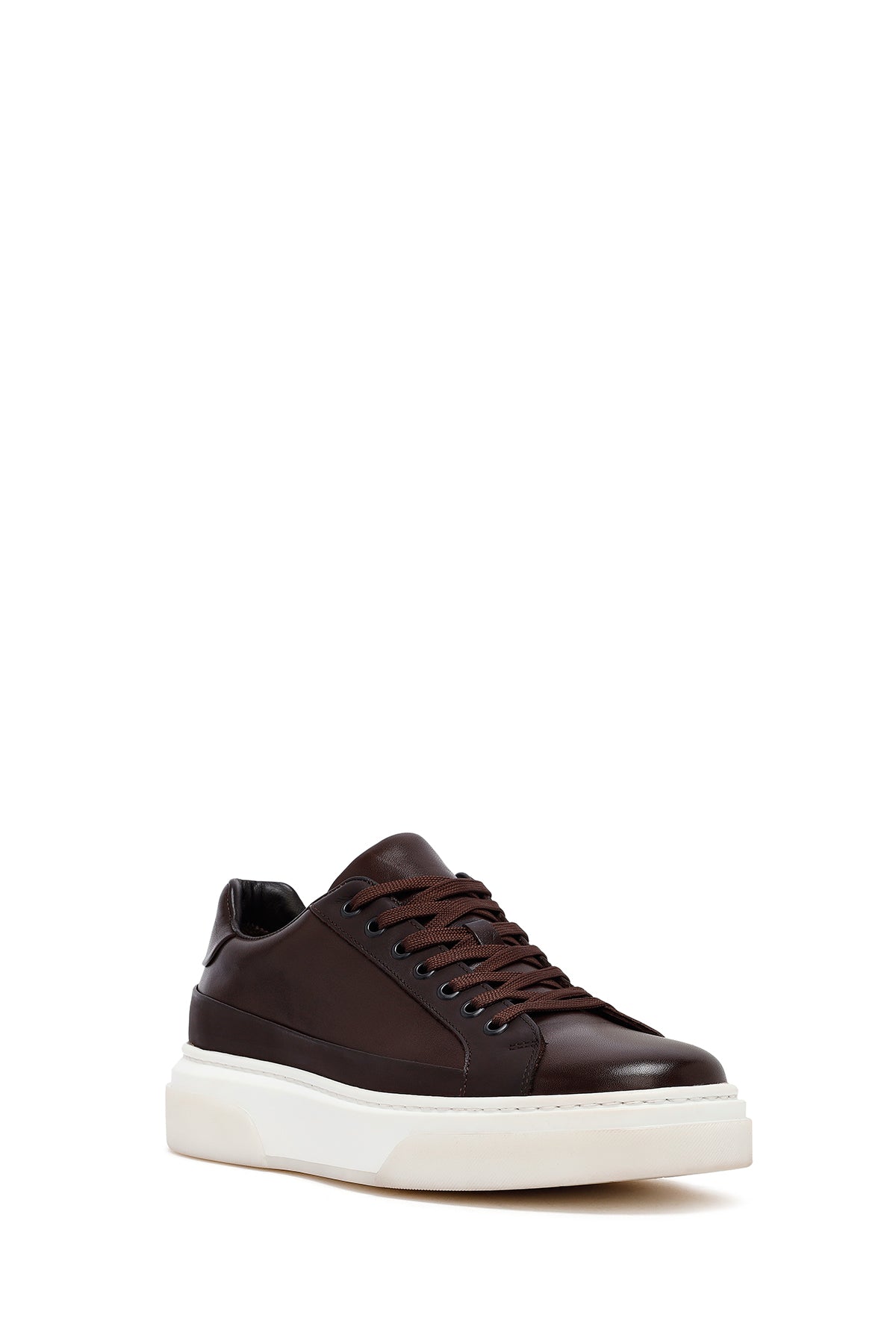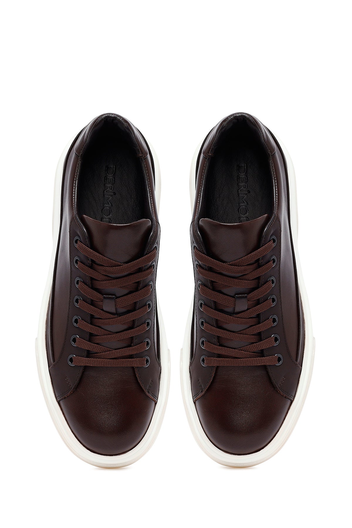 Erkek Kahverengi Bağcıklı Kalın Tabanlı Deri Sneaker